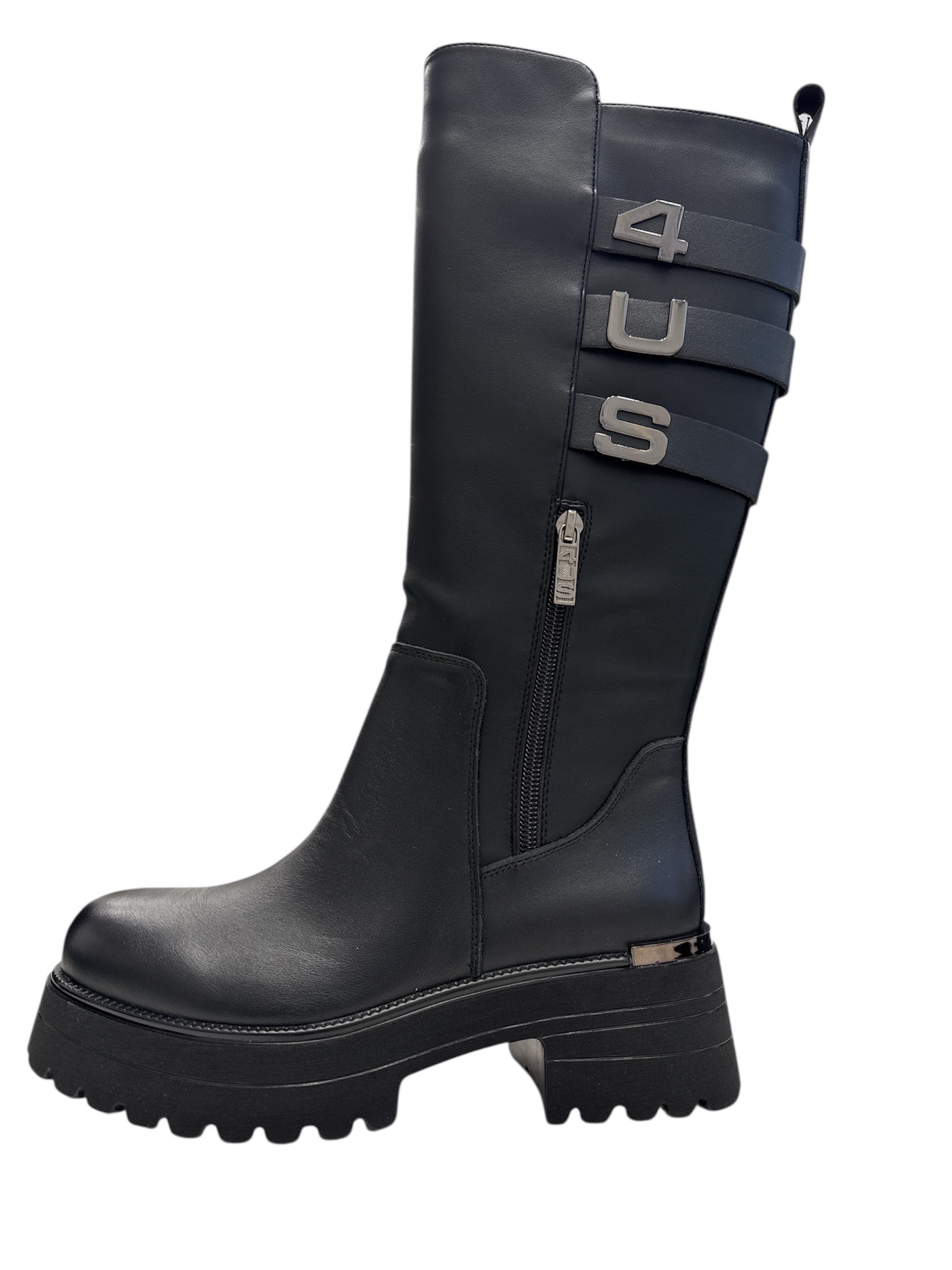 STIVALE ALTO 4US PACIOTTI in pelle nera con doppia zip laterale tacco alto 5,5 cm e gambale alto 33 cm.