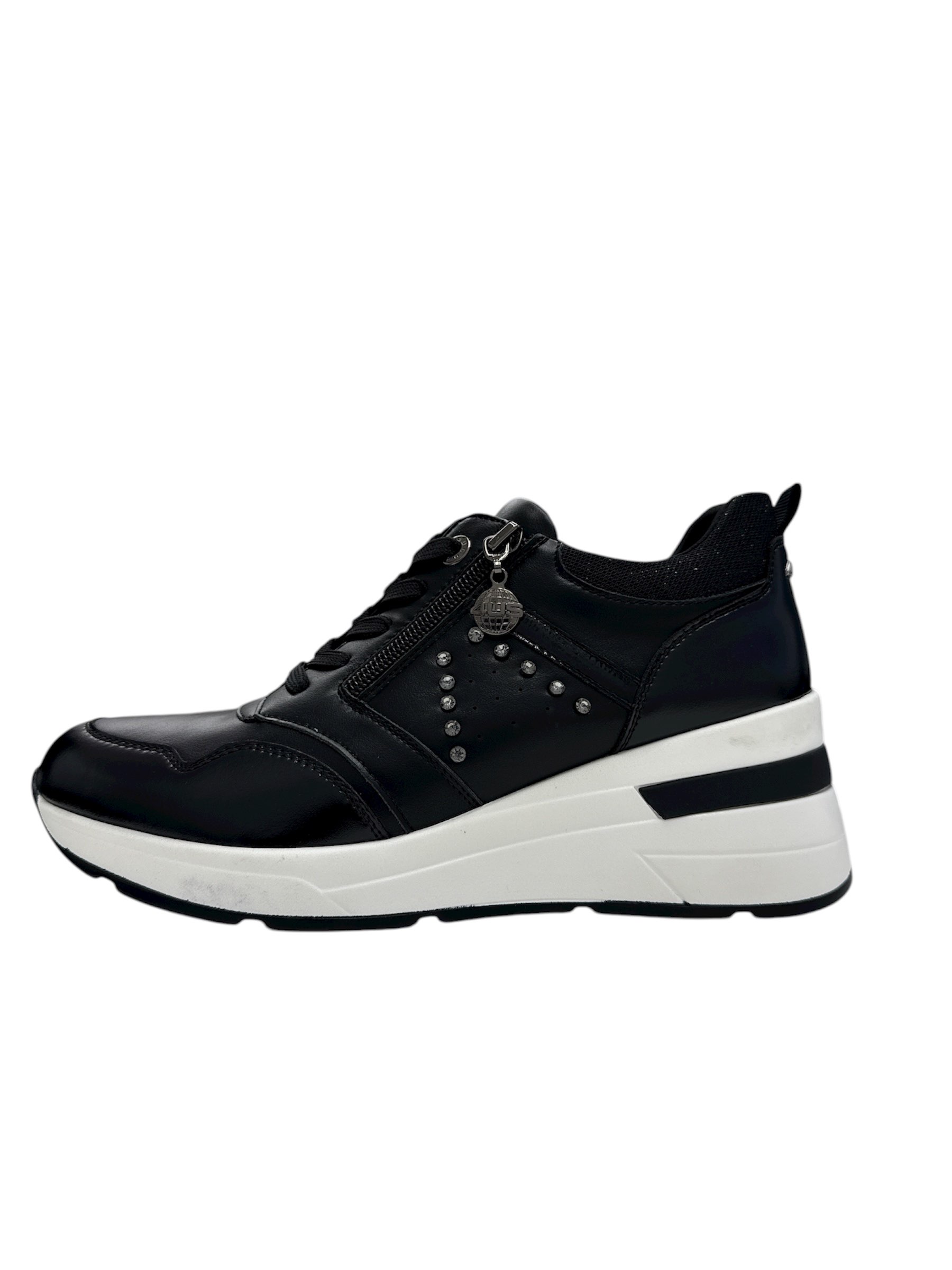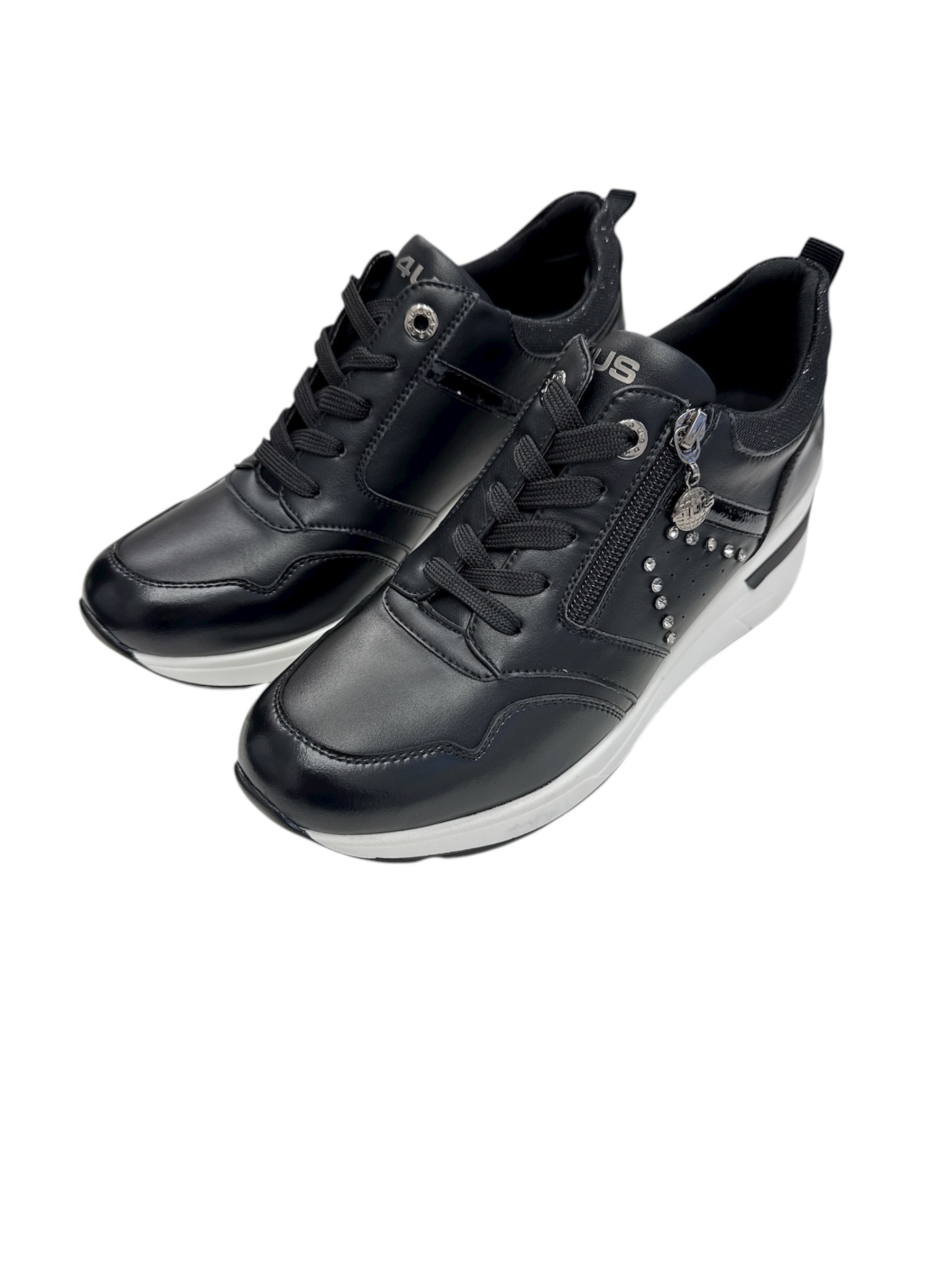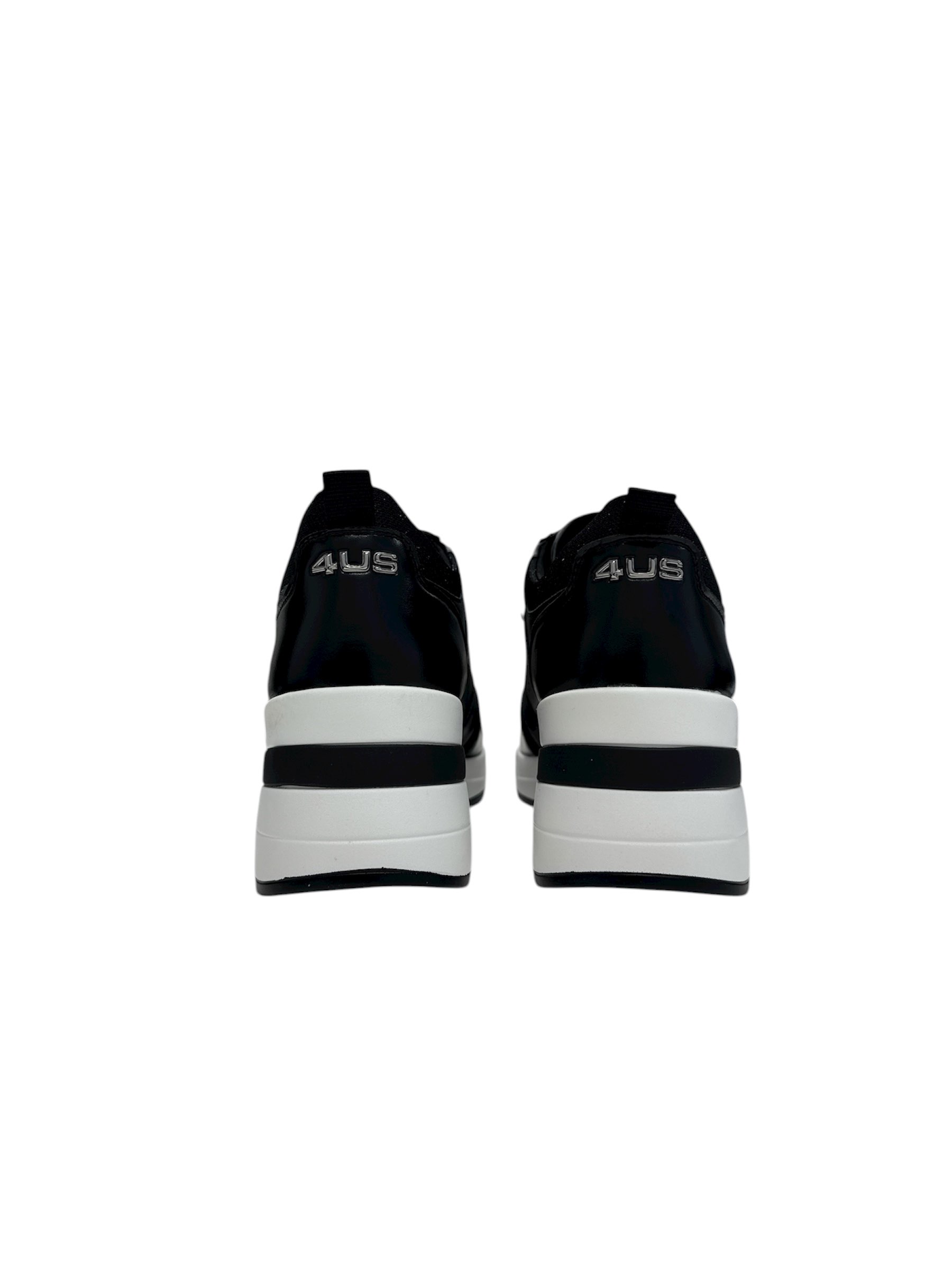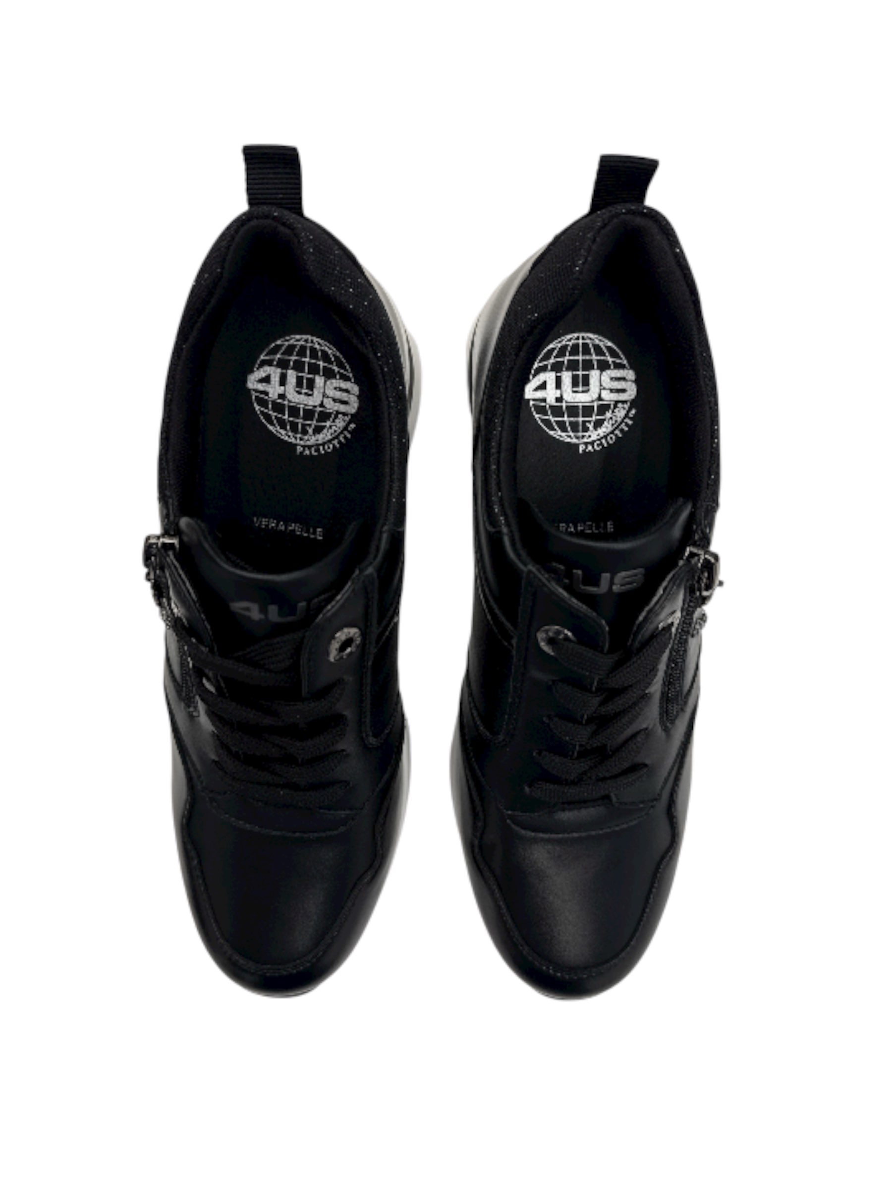 SNEAKER 4US PACIOTTI Con Zeppa Stringate Con Zip Laterale Nero, Plantare: Estraibile in Pelle
