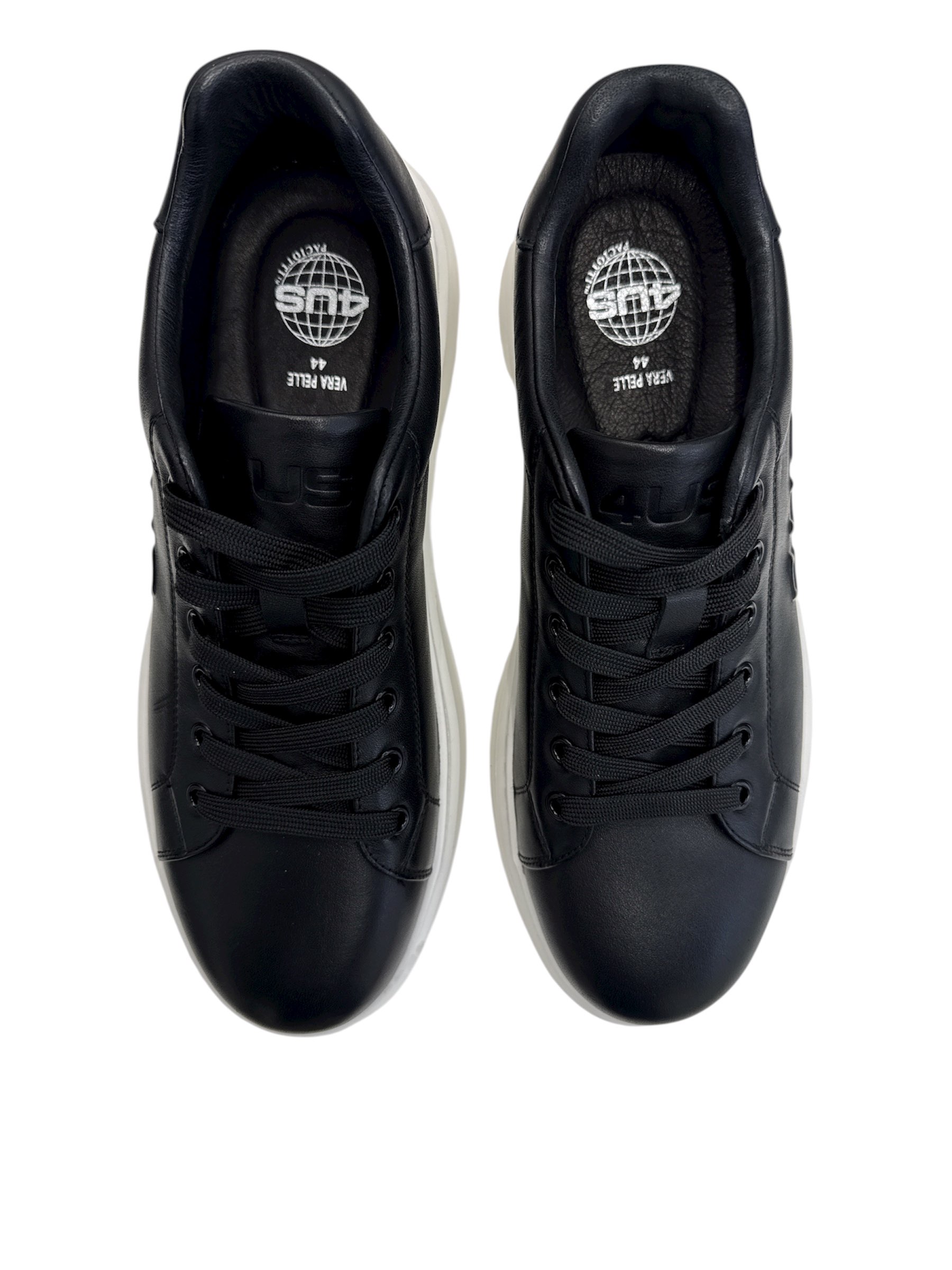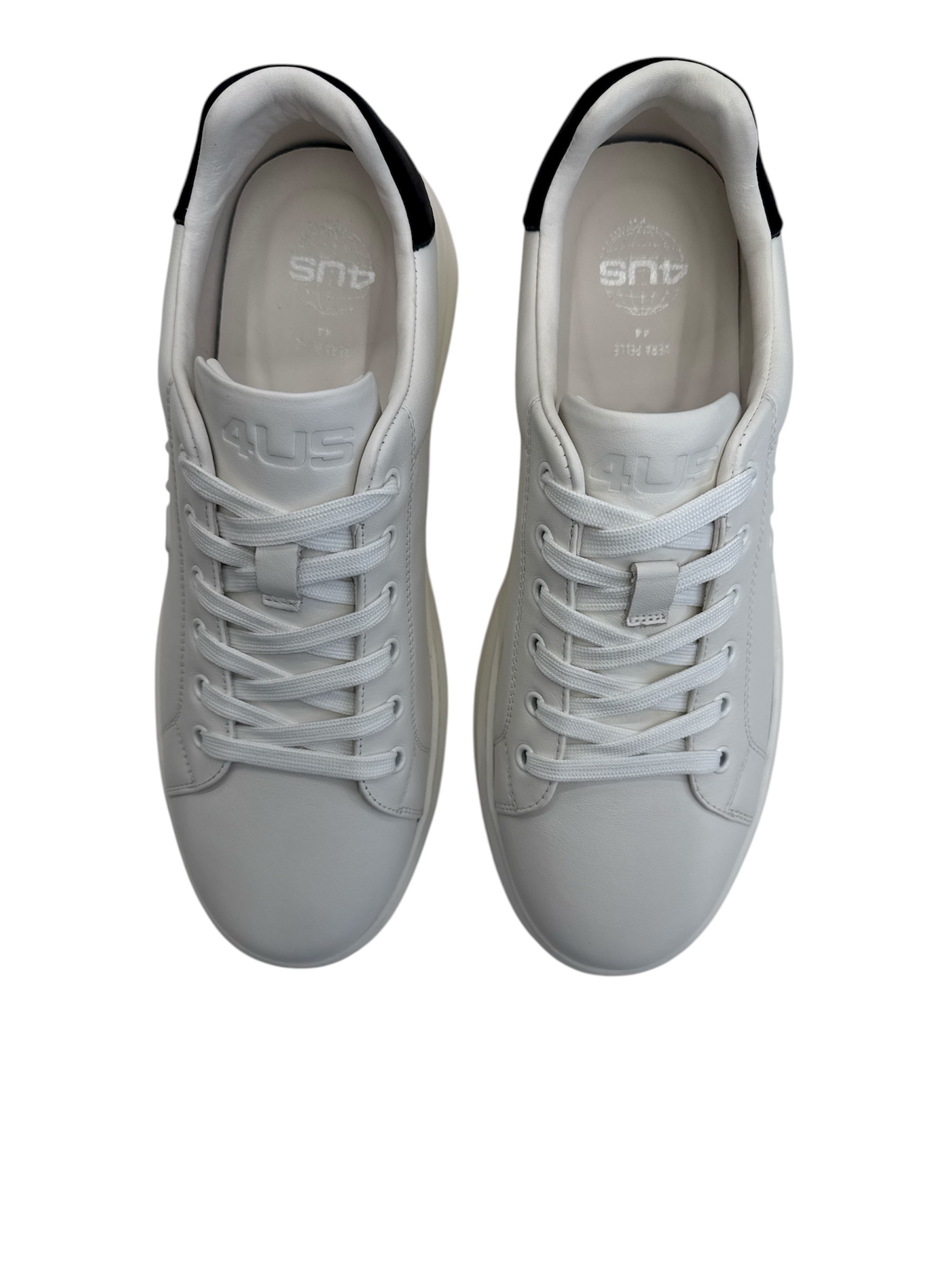 SNEAKERS 4US PACIOTTI dal design minimal e contemporaneo, realizzate in morbida pelle con logo 4US in rilievo sul lato e tallone in contrasto. Suola piatta e leggera per il massimo comfort quotidiano. Perfette per un look casual ed elegante, da abbinare facilmente a jeans o outfit sportivi.