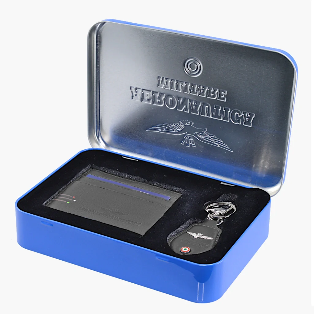 Aeronautica Militare Set regalo PORTACARTE DI CREDITO PIU' PORTACHIAVI IN PELLE.