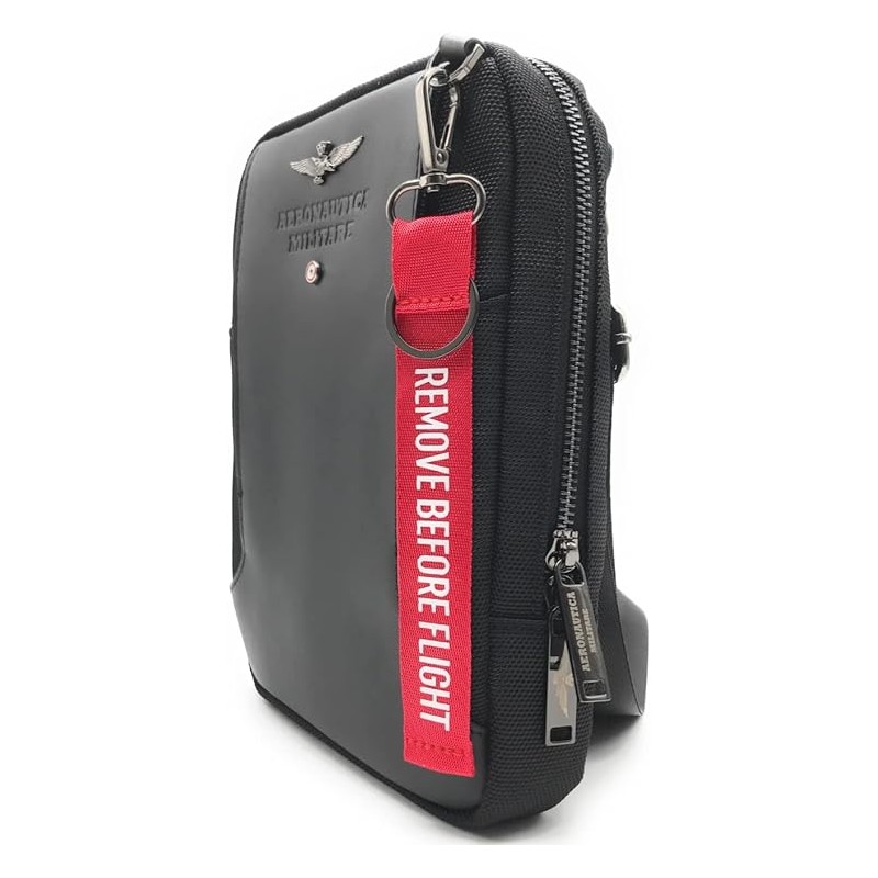 TRACOLLA AERONAUTICA MILITARE, DIMENSIONI 22 x 27 x 6 Cm. in tessuto tecnico con organizer interno e tasca porta tablet, portachiavi removibile “Remove before flight”, tasca esterna sul retro.