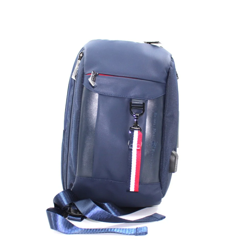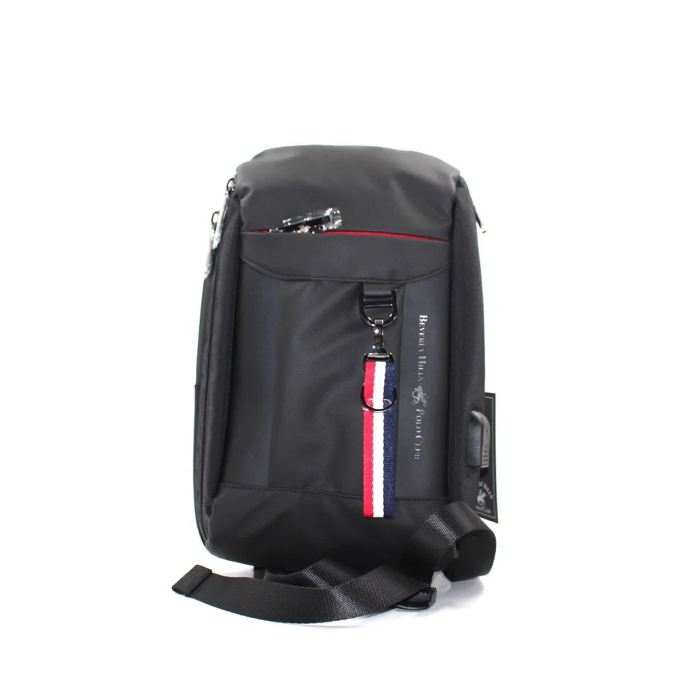 BORSELLO BEVERLY HILLS POLO CLUB, DA PORTARE ANCHE A ZAINETTO, DUE COMPARTI CON ZIP, UNA TASCA ANTERIORE, CON CHARM PORTACHIAVI, TRACOLLA E SPALLACCI REGOLABILI, LOGO ANTERIORE, (DIMENSIONI 32 x 20 x 10 Cm)