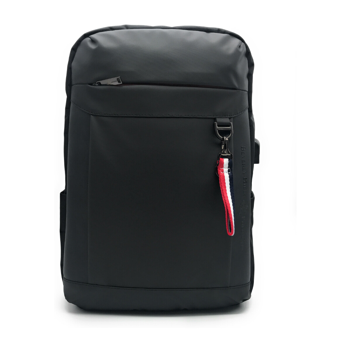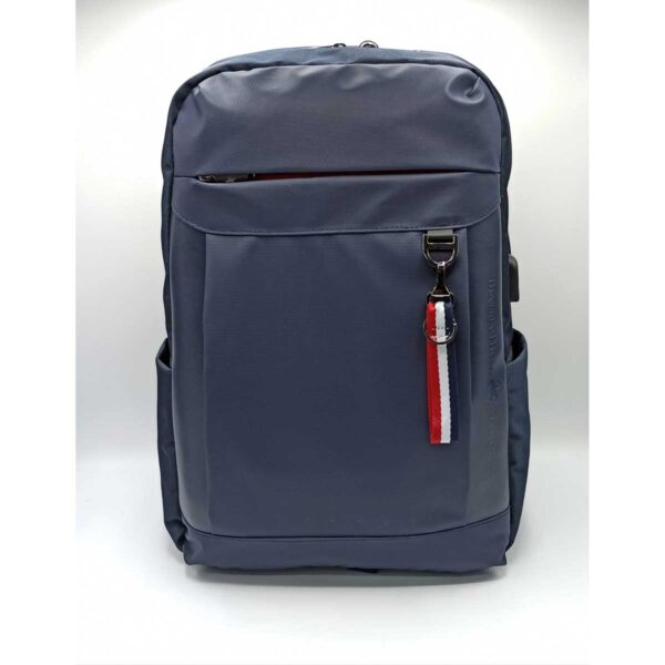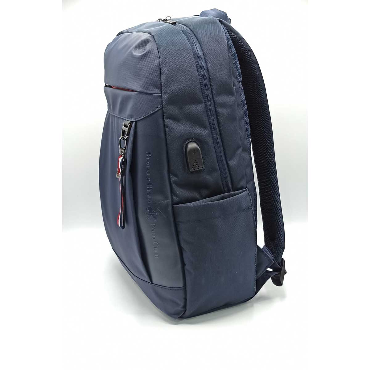 ZAINO BEVERLY HILLS POLO CLUB, MODELLO PORTLAND, PROFONDA TASCA FRONTALE E DUE TASCHE LATERALI, SCOMPARTO PORTA PC, PORTA DI RICARICA USB, SISTEMA DI AGGANCIO AL TROLLEY, TESSUTO TECNICO.