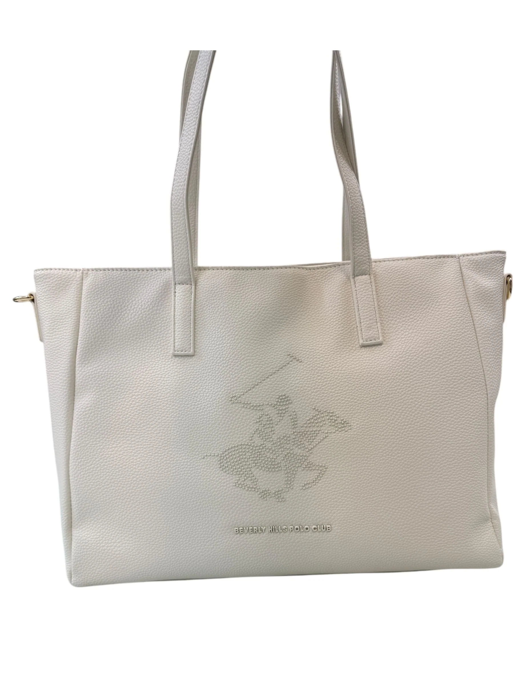 BORSA BEVERLY HILLS POLO CLUB, LOGO ANTERIORE CON BORCHIETTE IN RILIEVO, UN COMPARTO, DOPPIO MANICO A SPALLA, UNA TRACOLLA LUNGA REGOLABILE E AMOVIBILE (DIMENSIONI: 37 x 31 x 12)