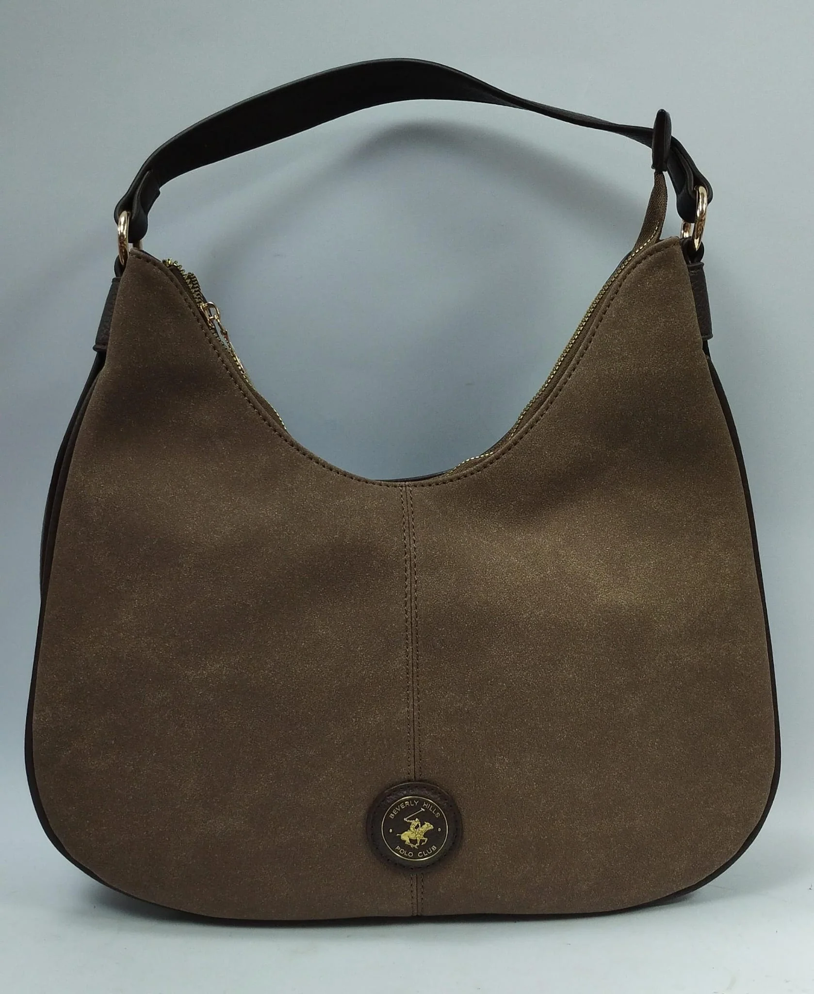 BORSA BEVERLY HILLS presenta una forma mezza luna elegante e versatile. Il manico removibile, agganciabile tramite due anelli dorati, consente di indossarla anche a tracolla in modo pratico e confortevole. Dotata di un’unica apertura con zip, offre uno scomparto interno spazioso