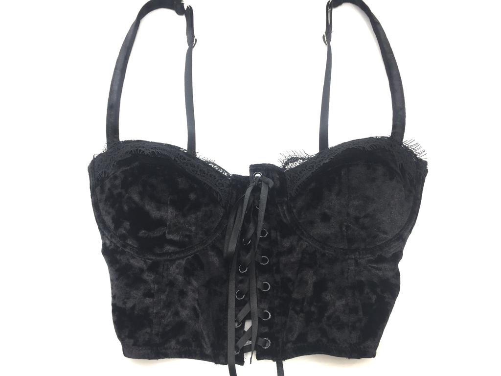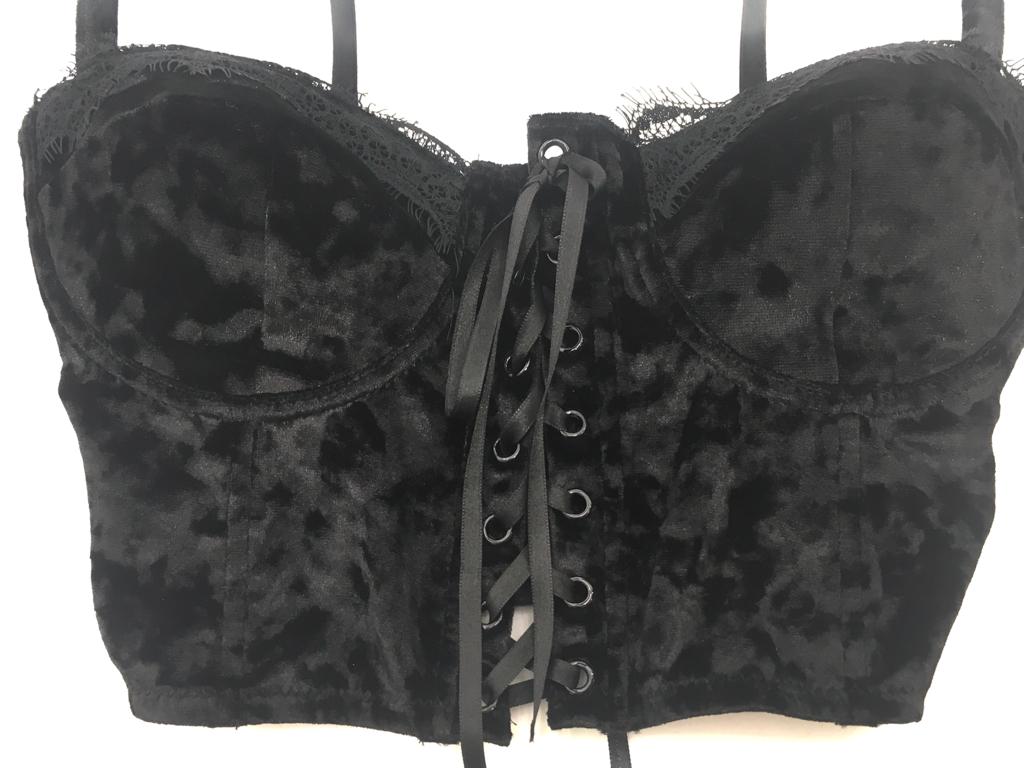 BUSTINO DONNA VELLUTO TINTA UNITA LACCI SUL DAVANTI.