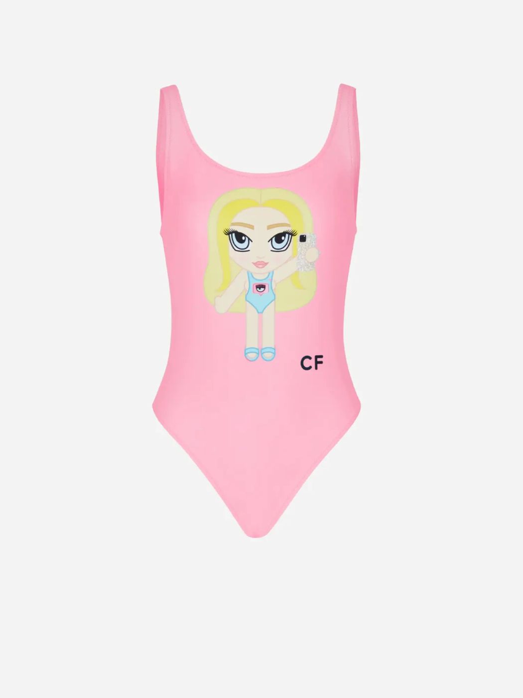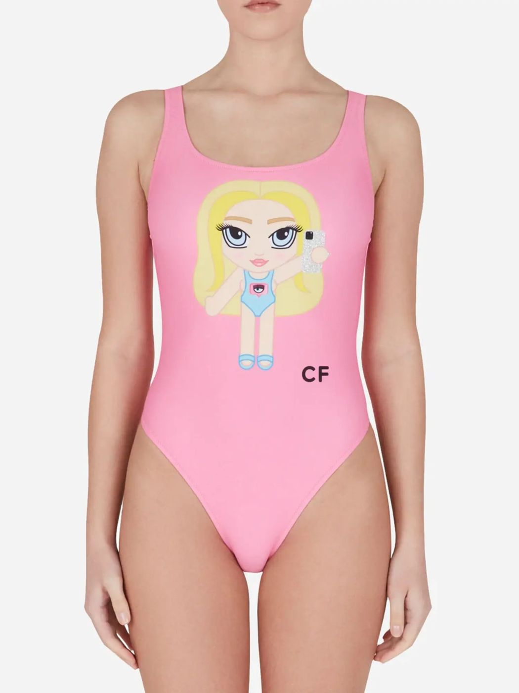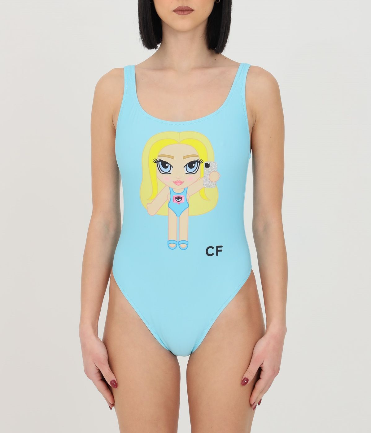 COSTUME DONNA INTERO TINTA UNITA STAMPA LOGO FRONTALE.