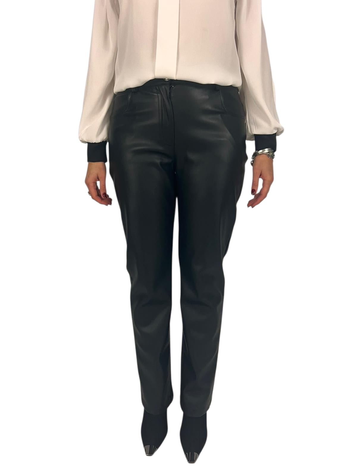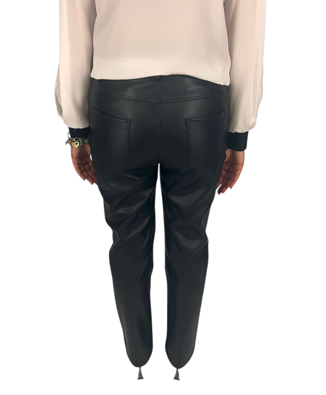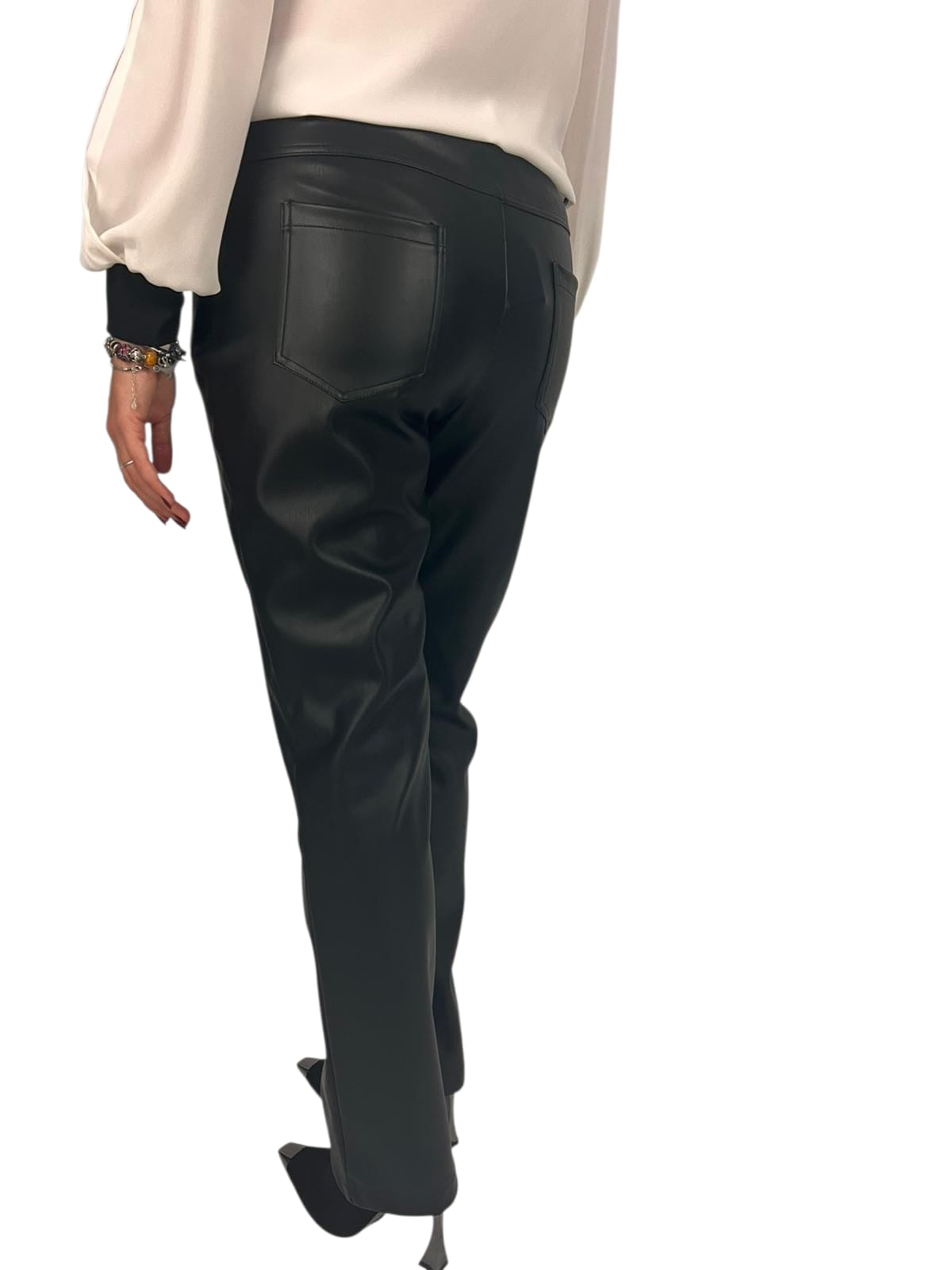 PANTALONE DAIRESY, IN ECOPELLE, CON TASCHE DAVANTI E DIETRO, PASSANTI AL GIROVITA E CHIUSURA CON CERNIERA E BOTTONE.