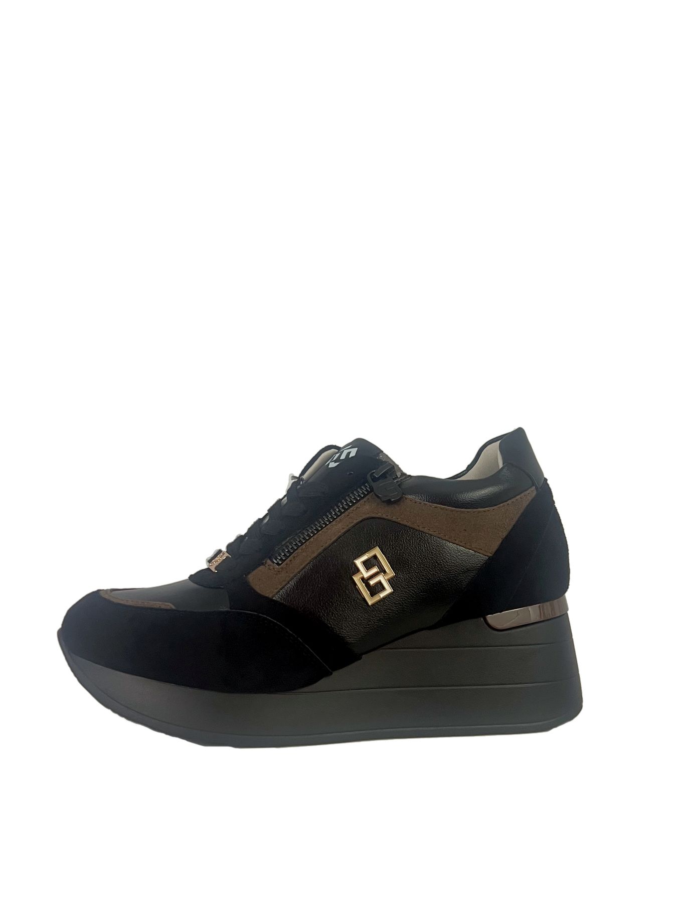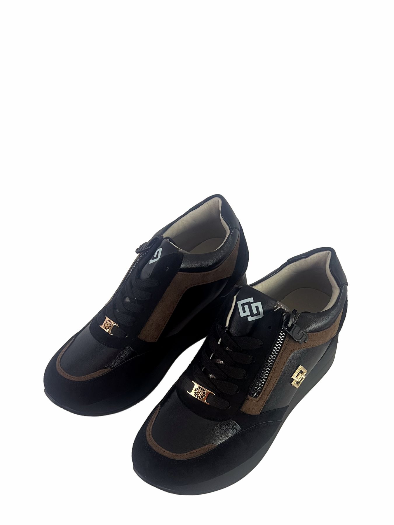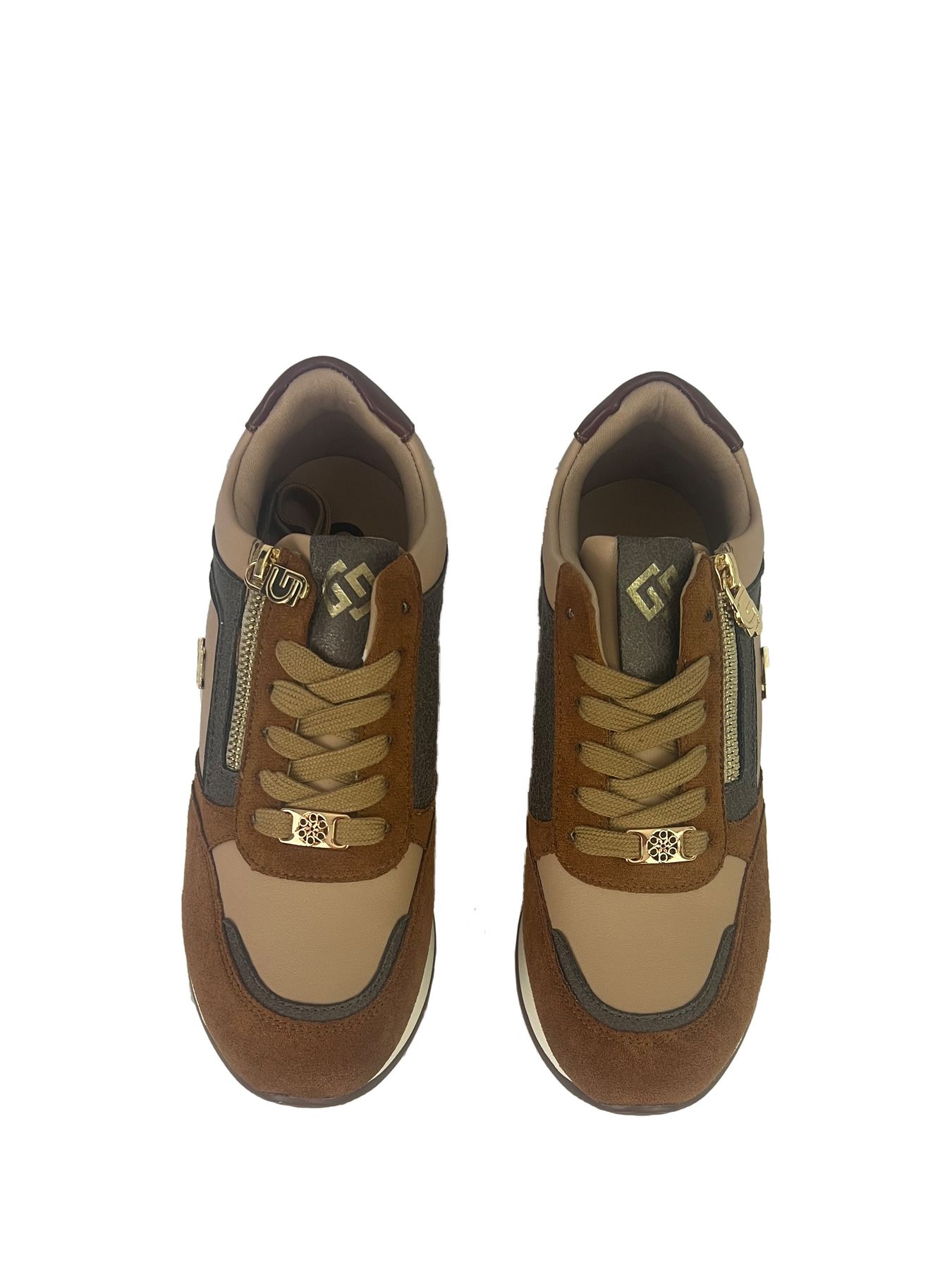 SNEAKERS GOLD & GOLD, CON ZEPPA, ZIP LATERALE E LACCI