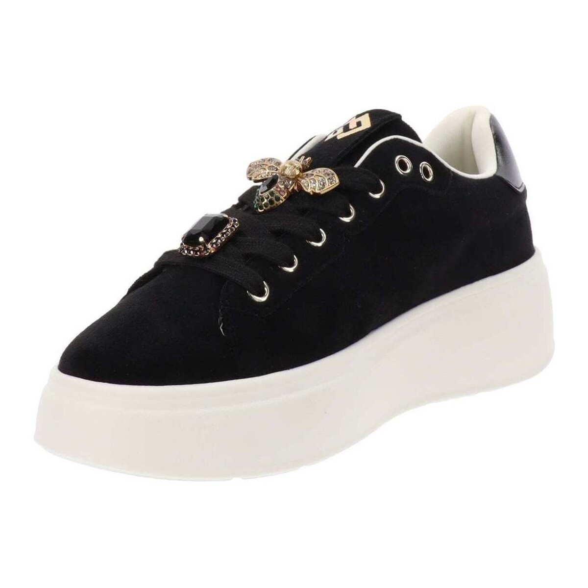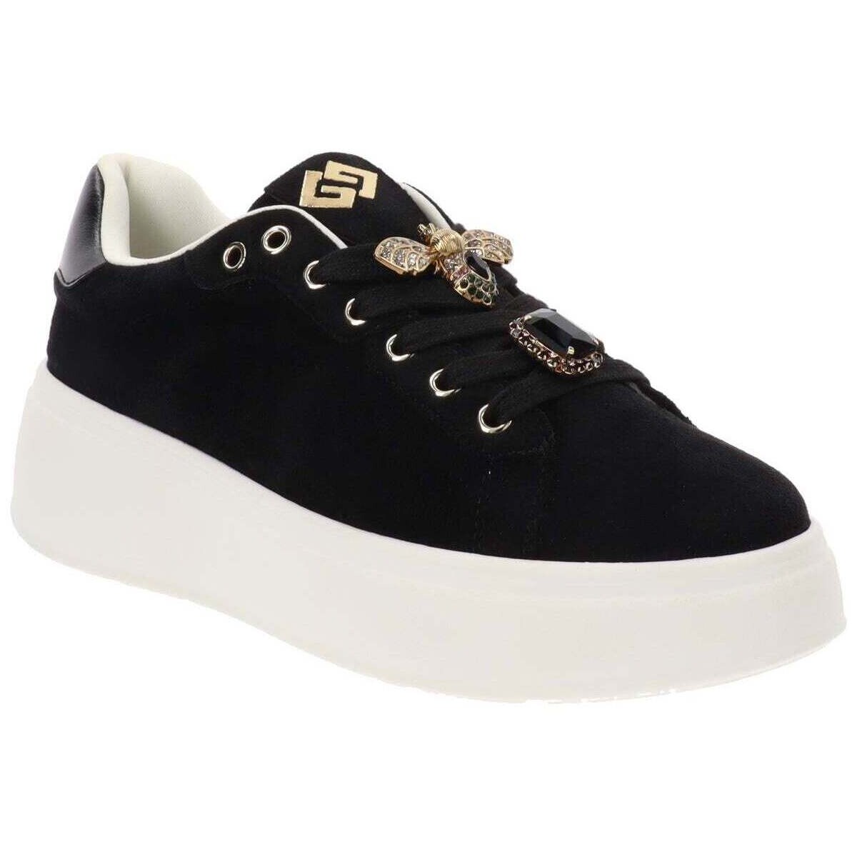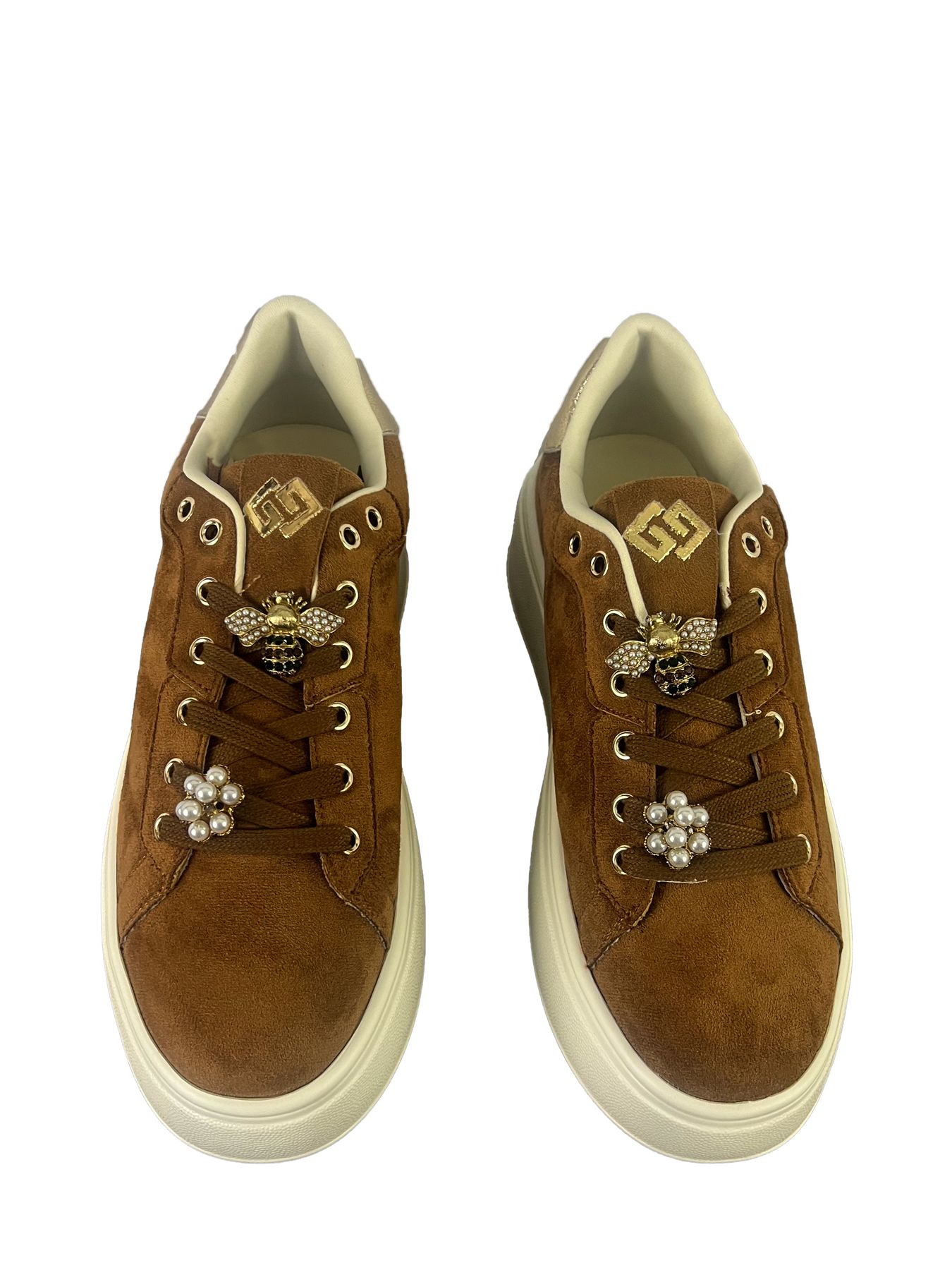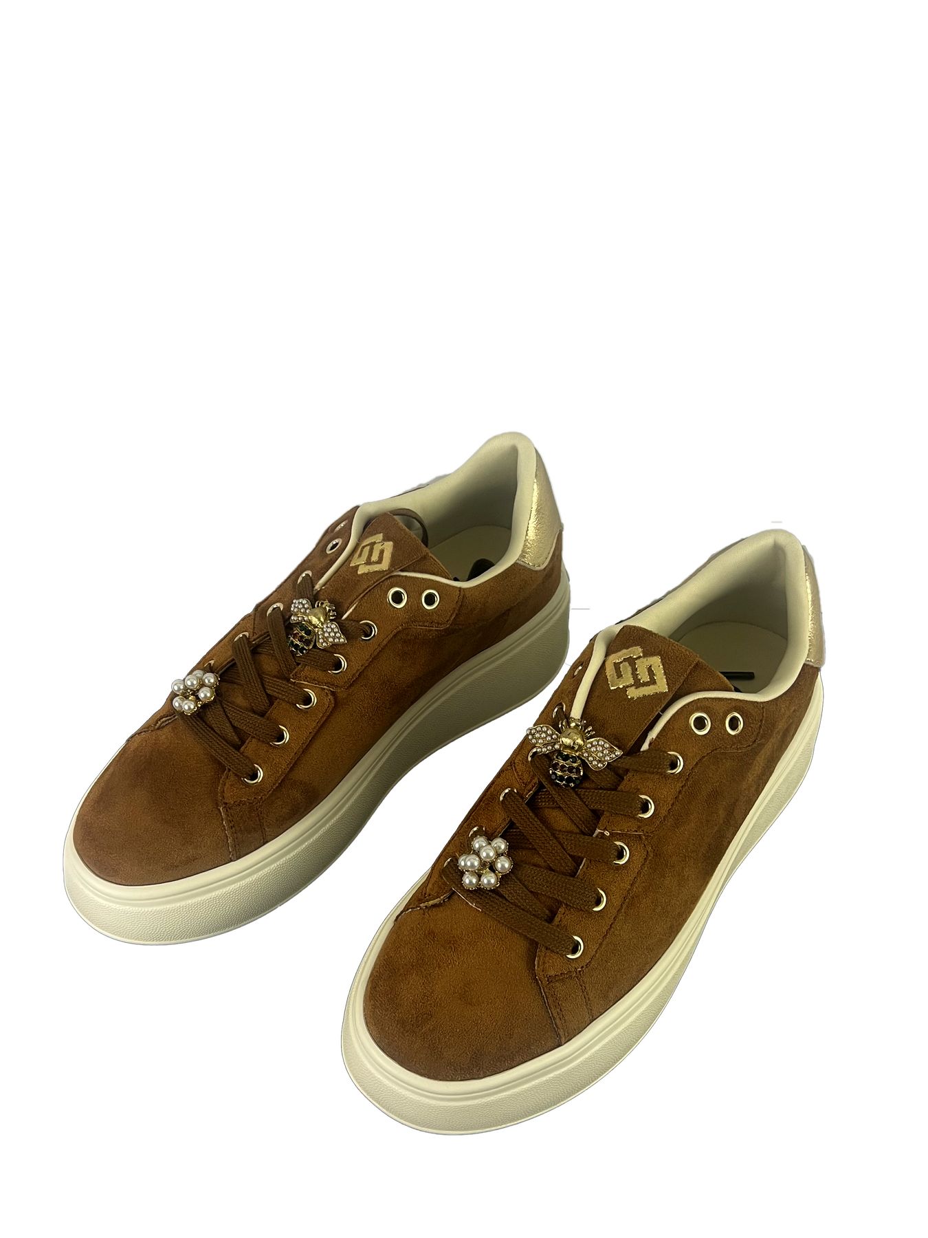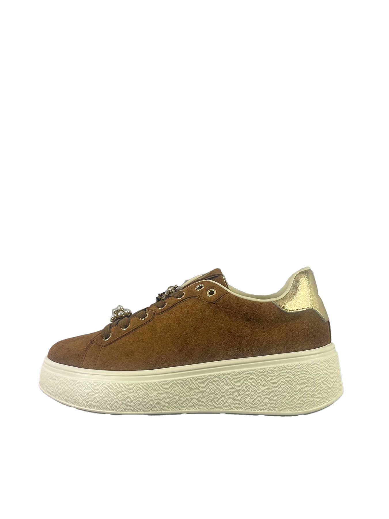 SNEAKERS GOLD & GOLD, PLATFORM, IN CAMOSCIO CON ACCESSORI SUI LACCI