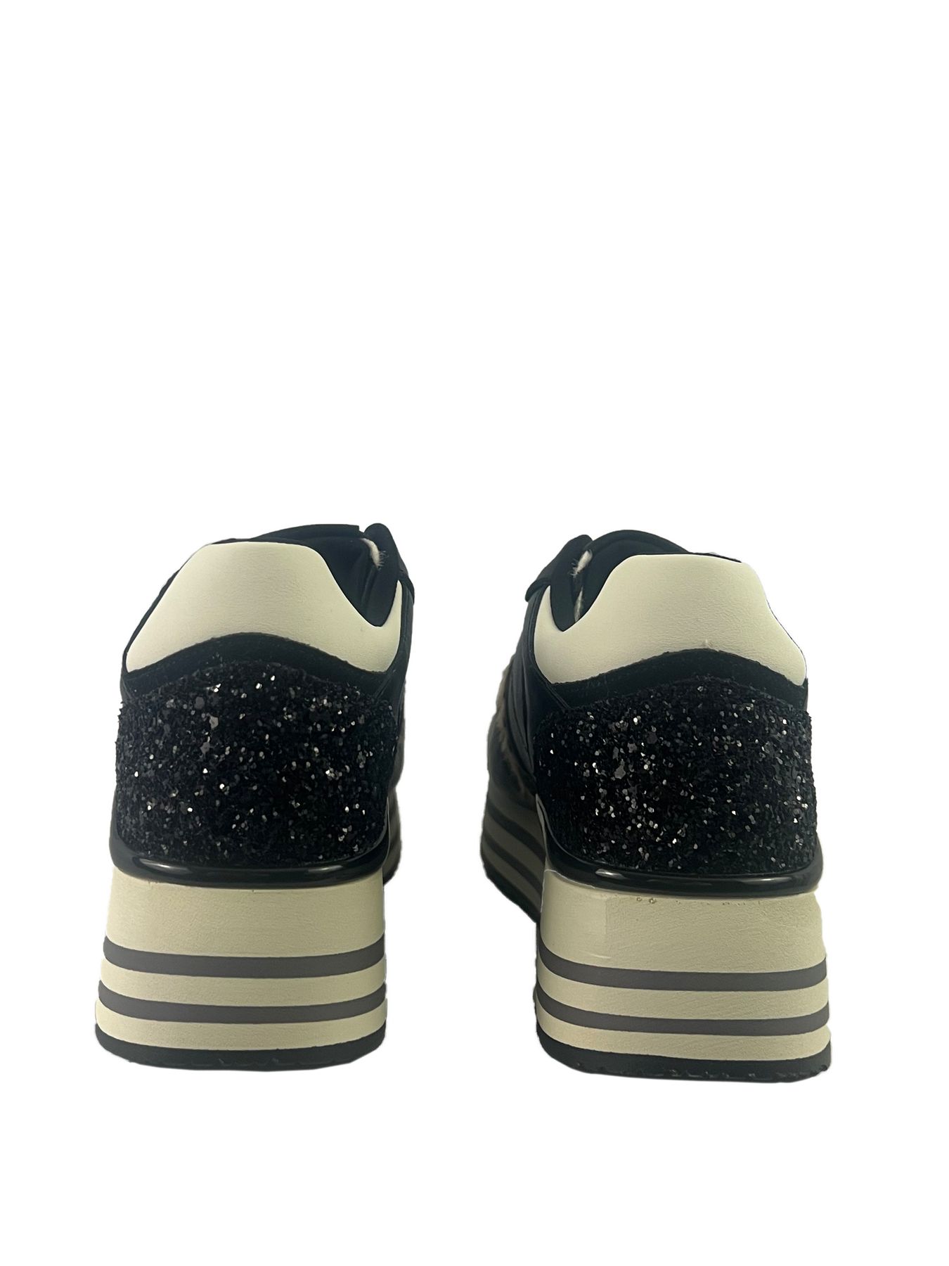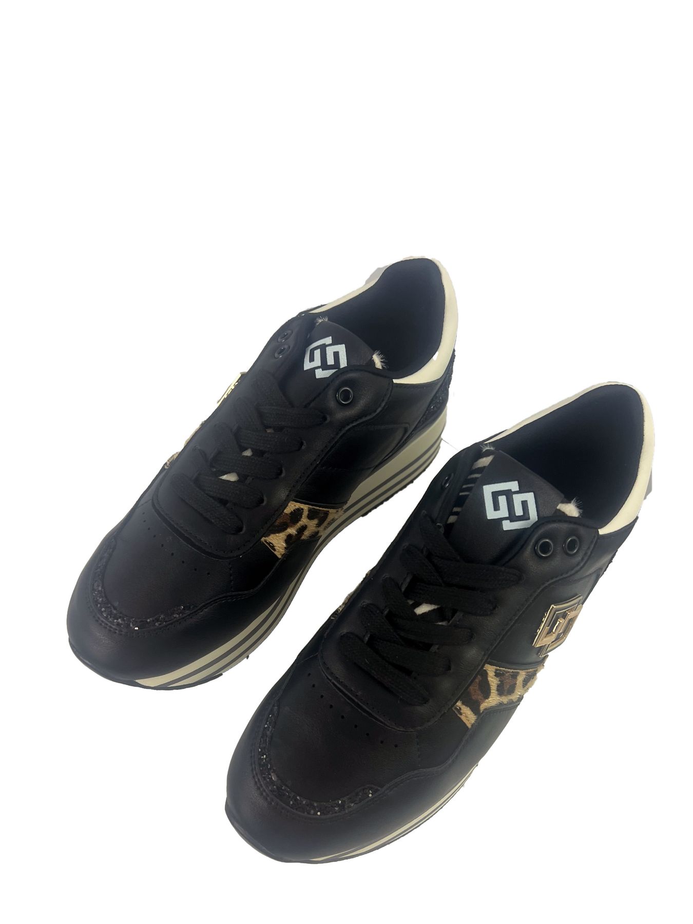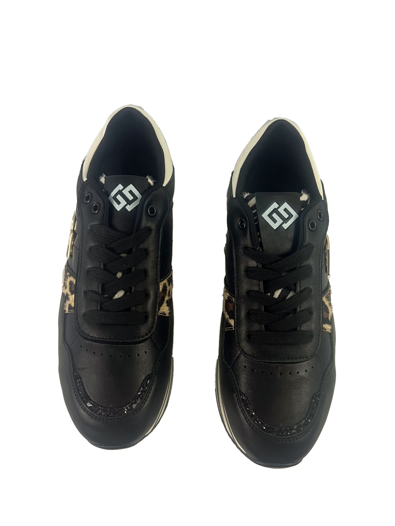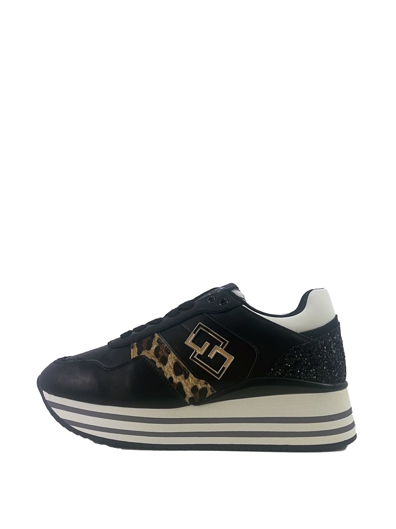 SNEAKERS GOLD & GOLD, PLATFORM, IN ECOPELLE CON INSERTI MACULATI E PAILLETTES.