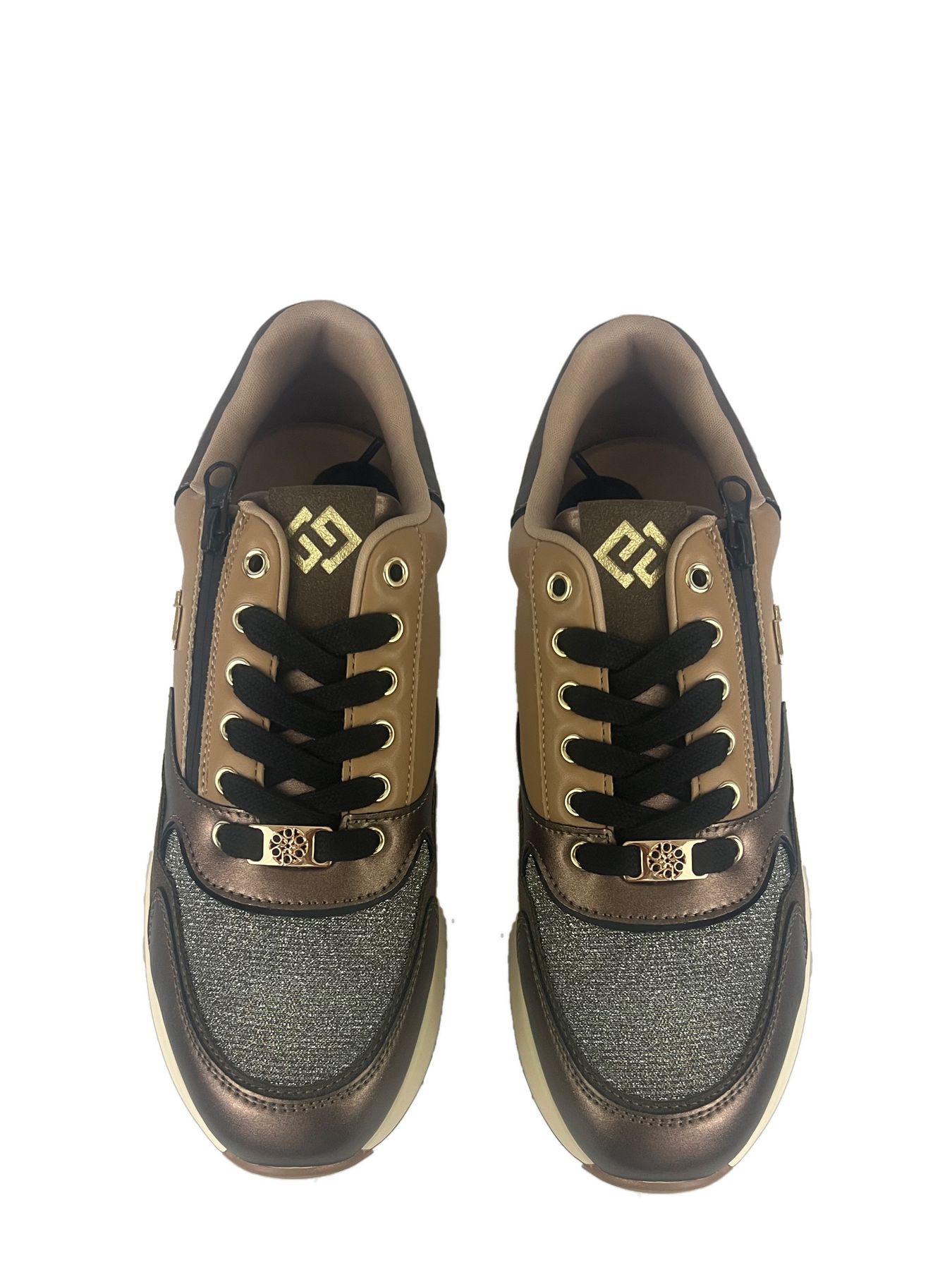 SNEAKERS GOLD & GOLD, CON ZEPPA, ZIP LATERALE E LACCI