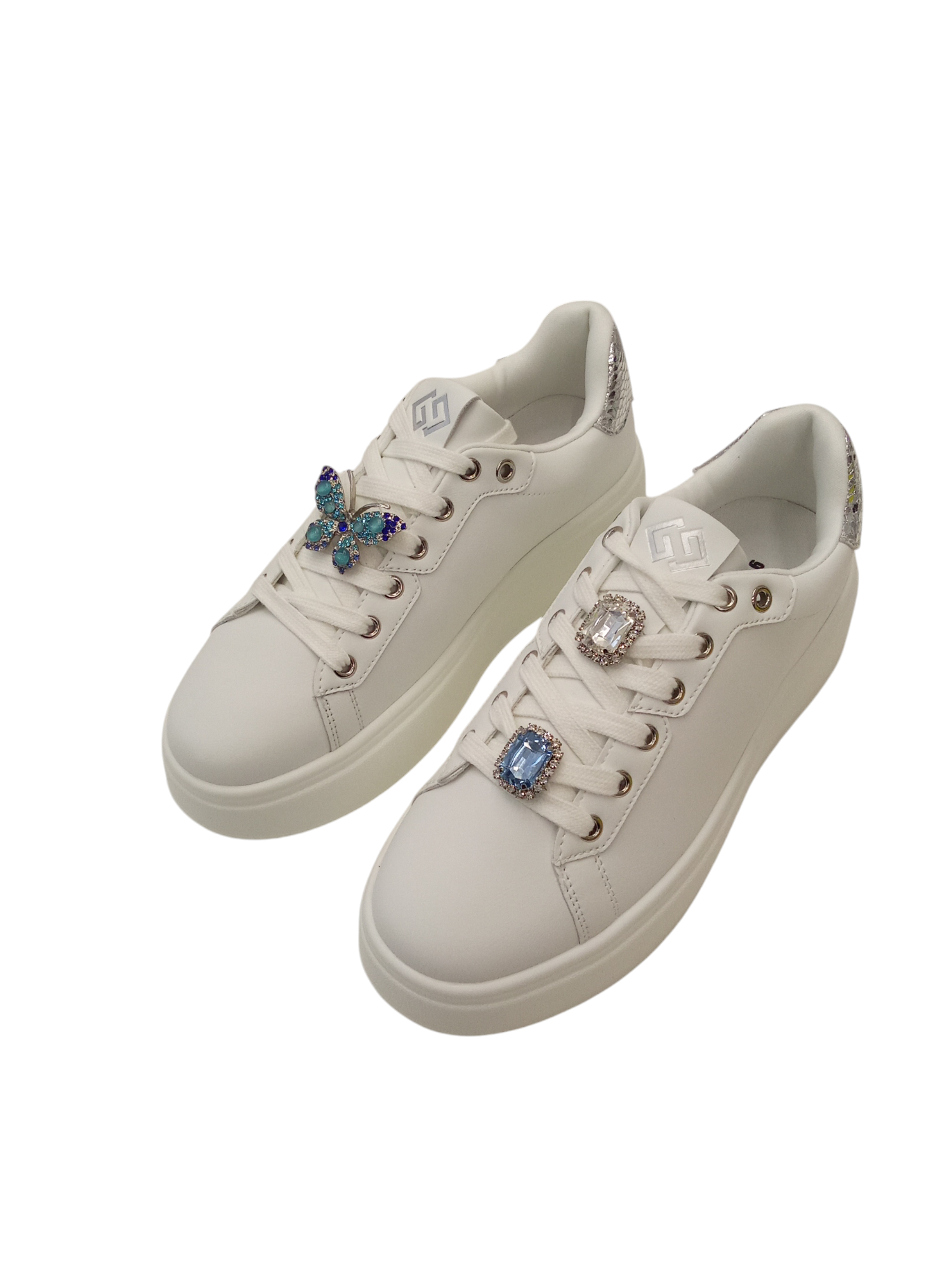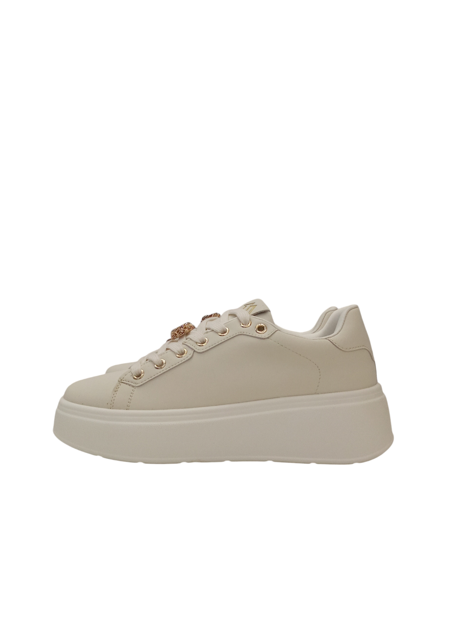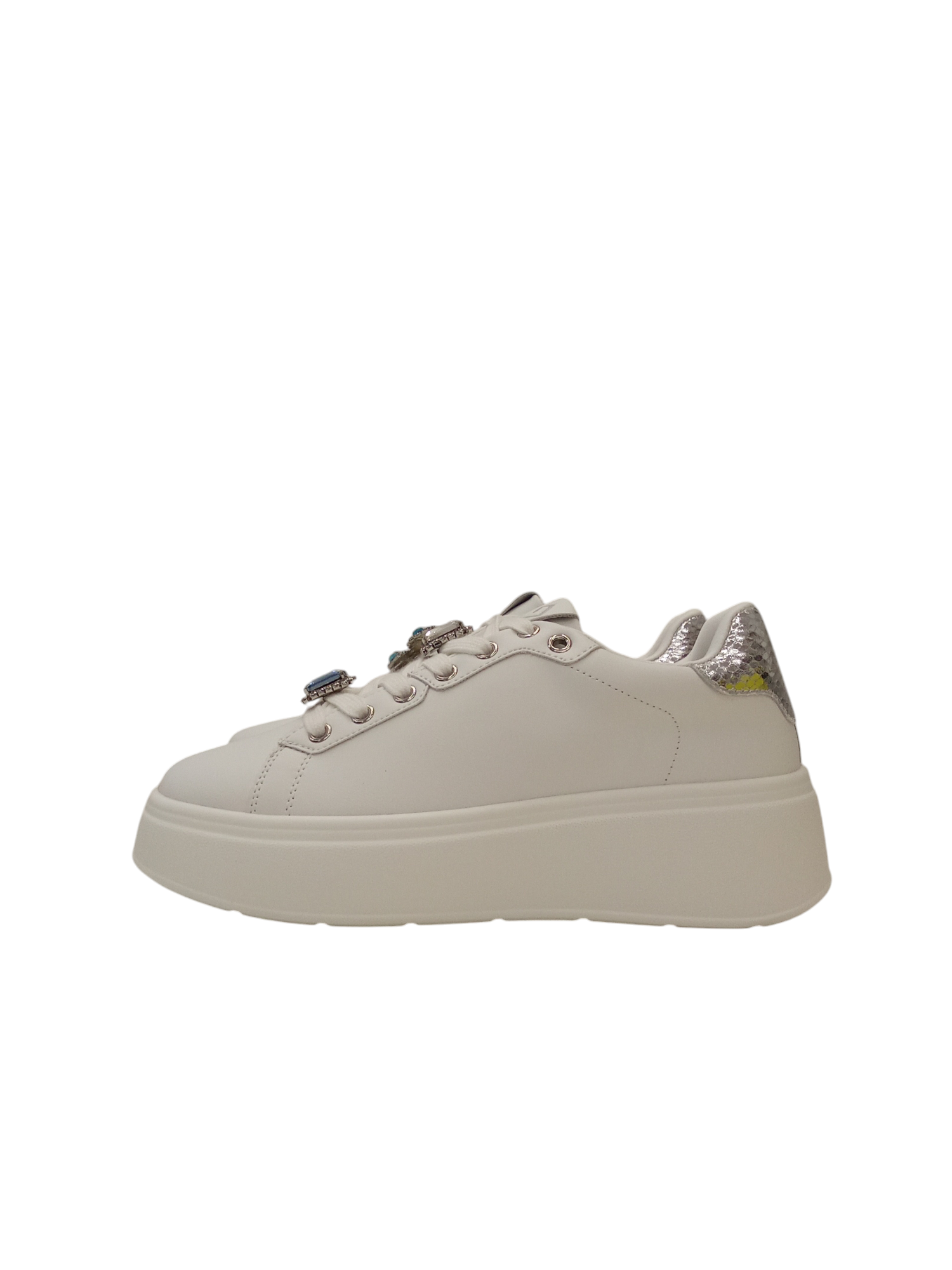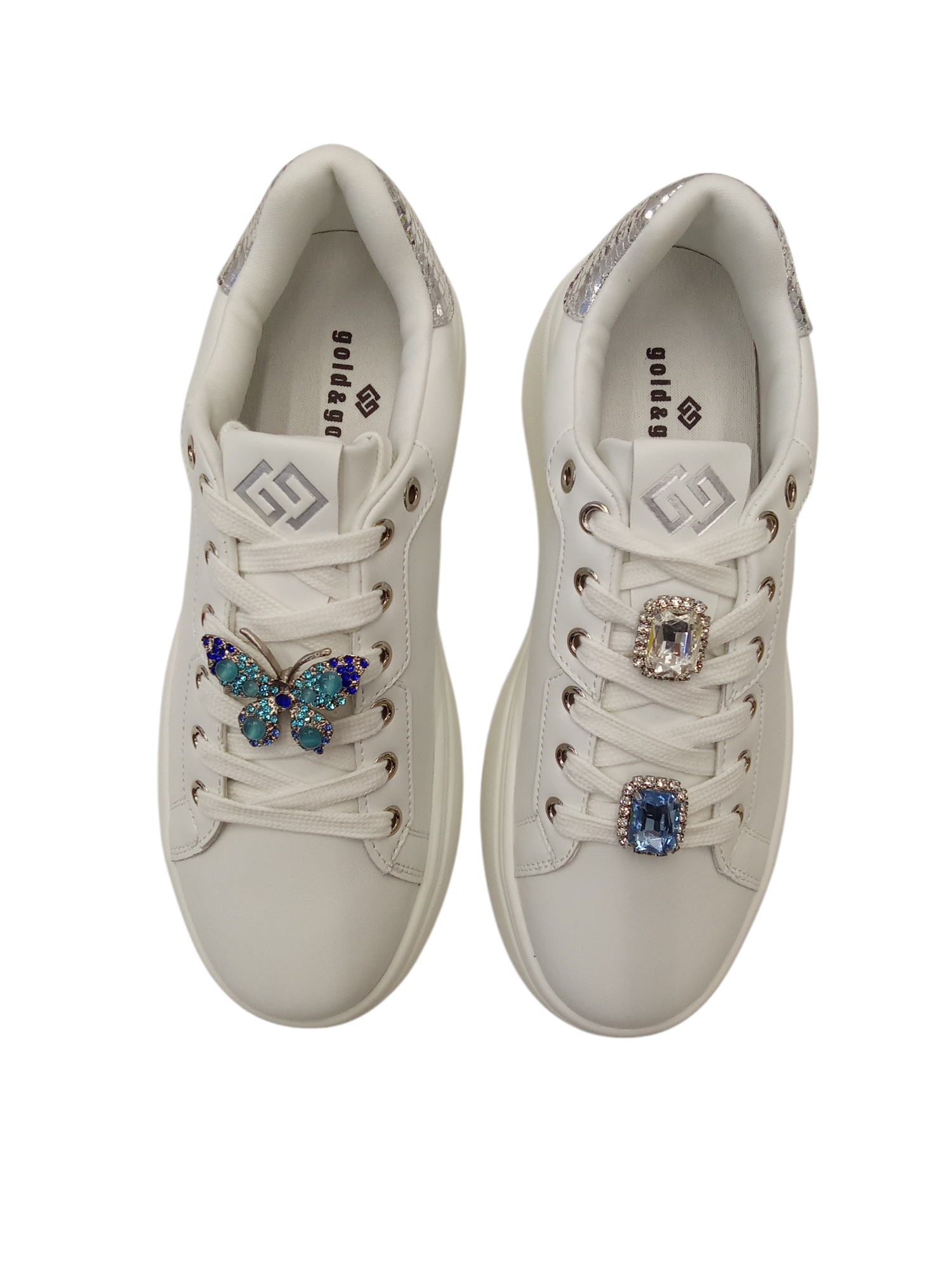 SNEAKERS GOLD & GOLD, PLATFORM CON DETTAGLI GIOIELLO SUI LACCI.