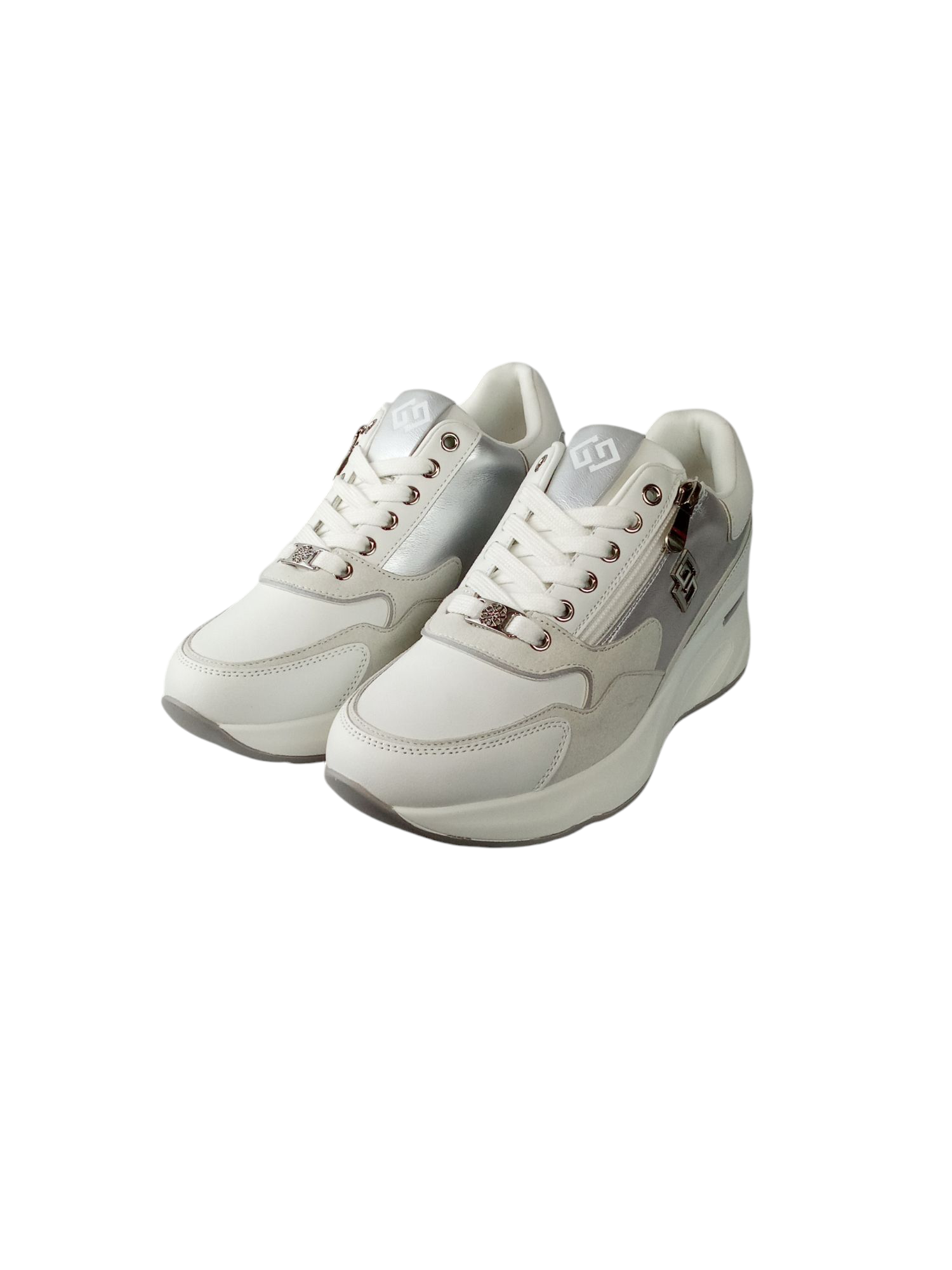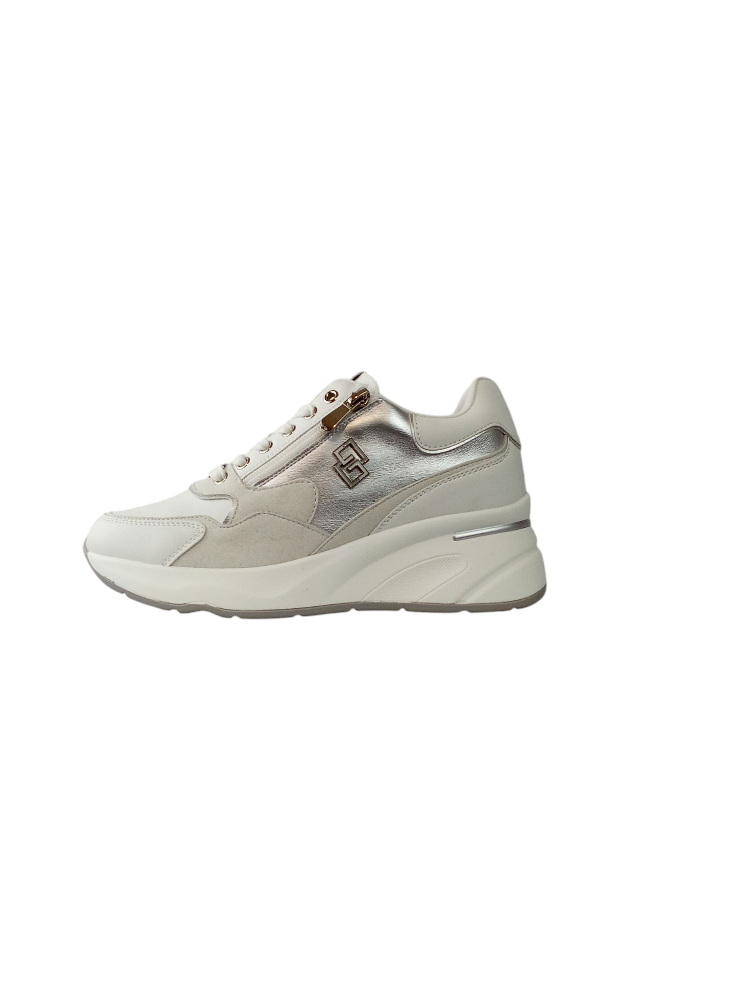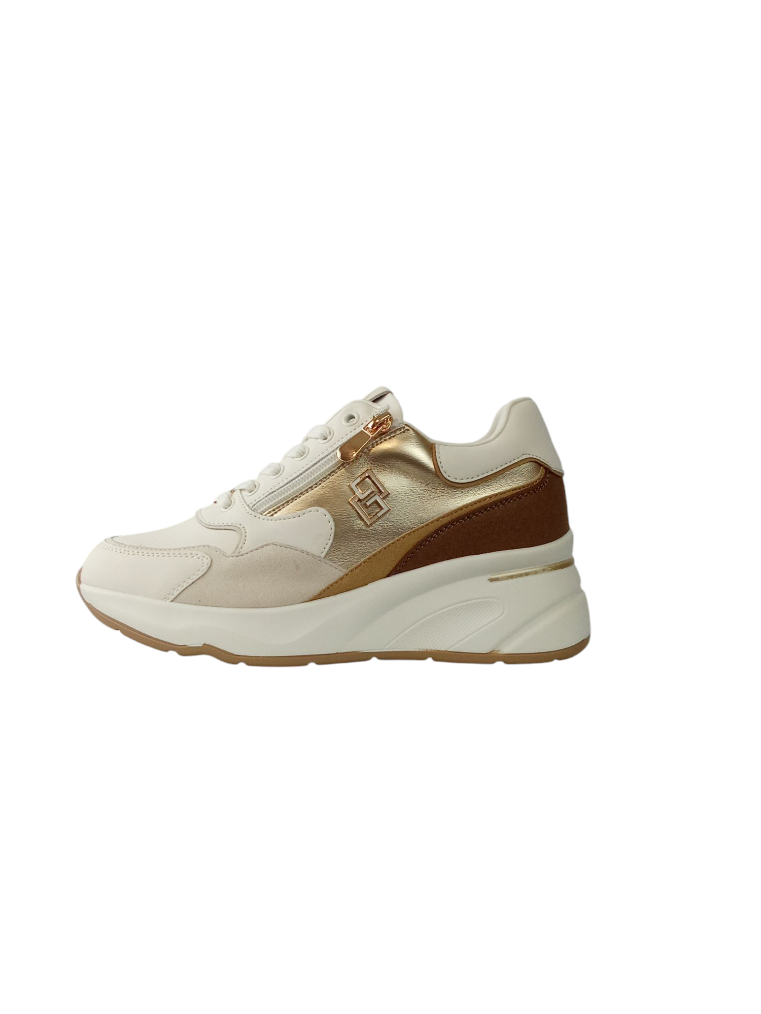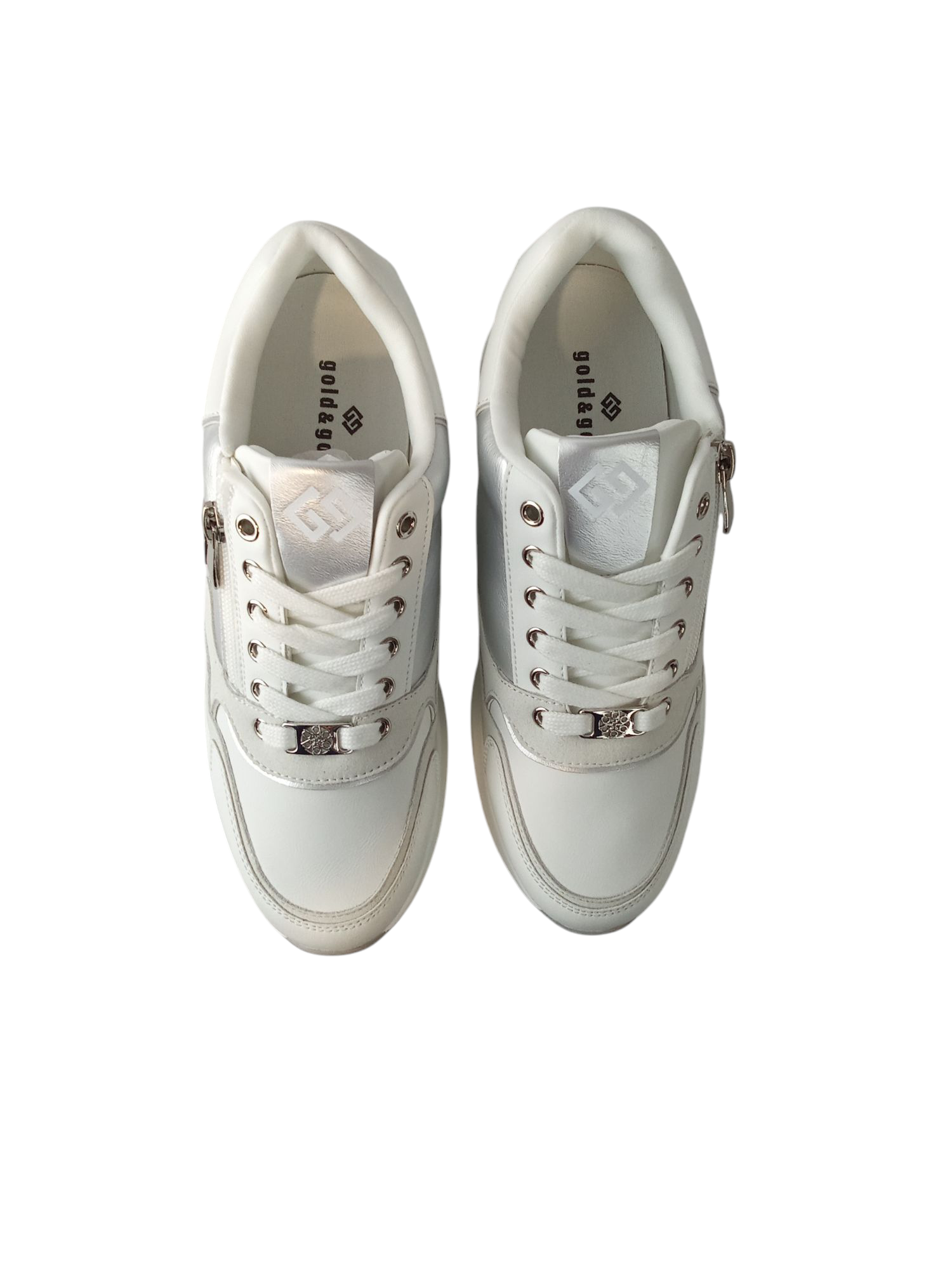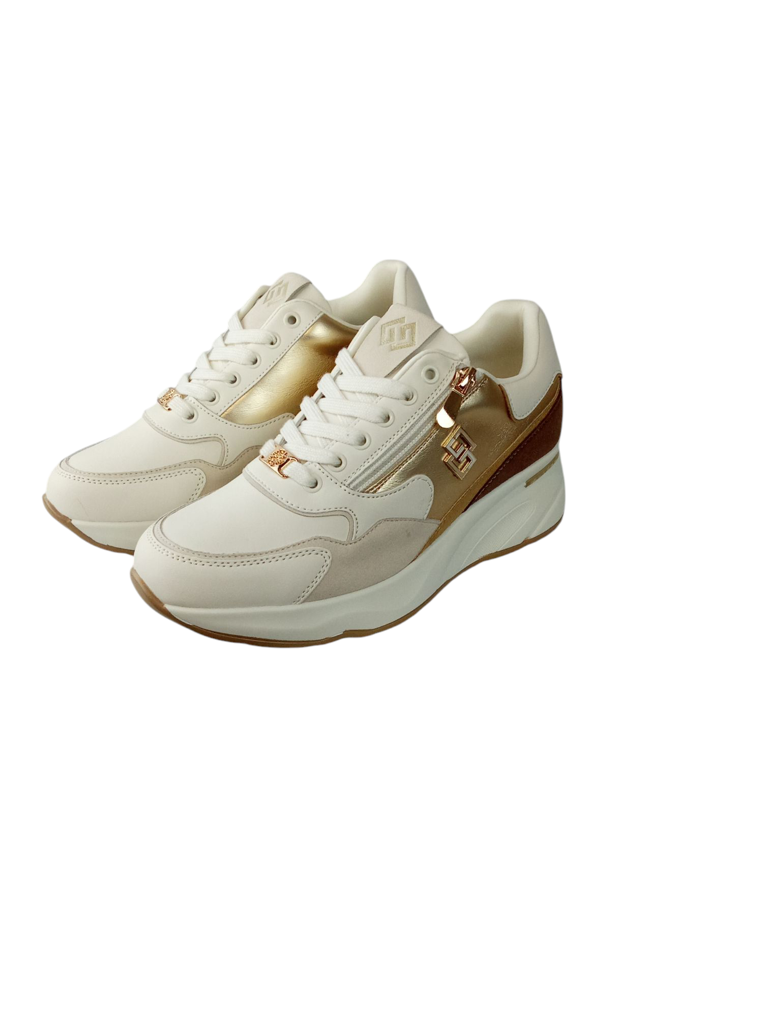 SNEAKERS GOLD & GOLD, ZIP SUL LATO DESTRO E LOGO IN RILIEVO, CON ZEPPA.