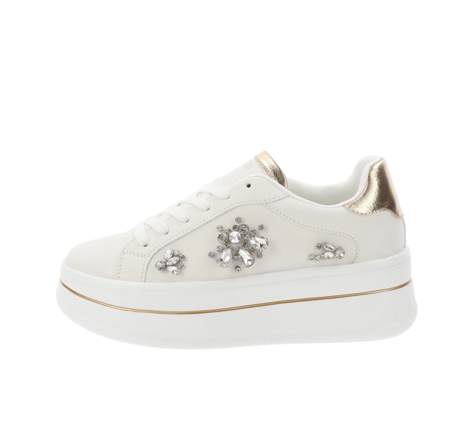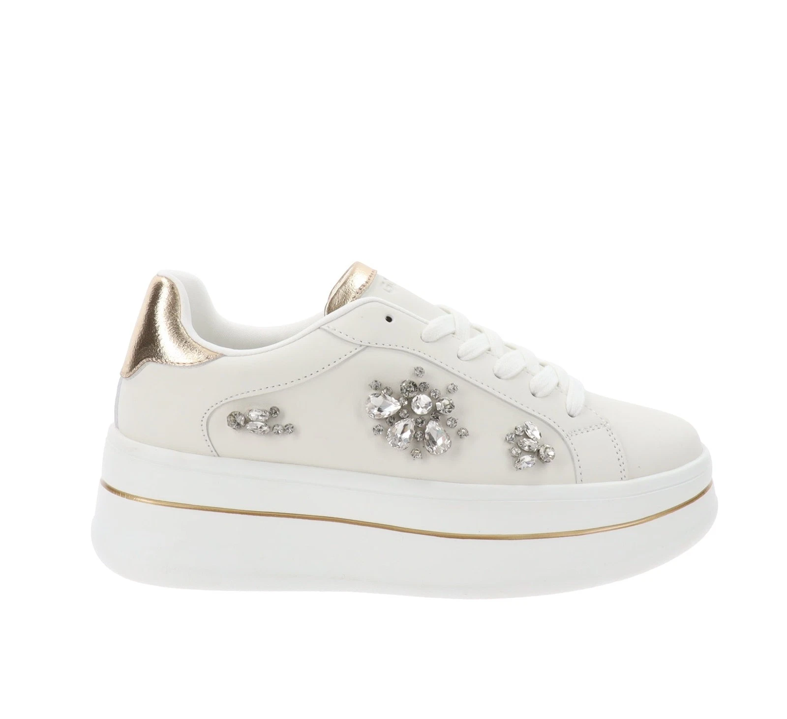 SNEAKERS GOLD & GOLD, STRINGATA, MODELLO PLATFORM CON ACCESSORI LATERALI.