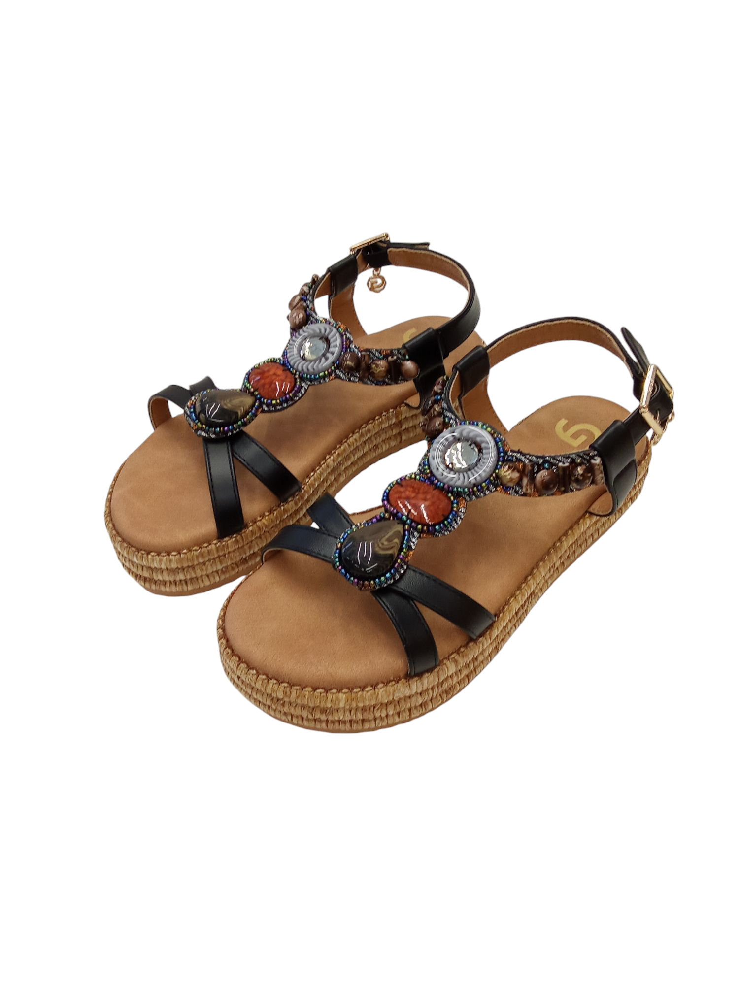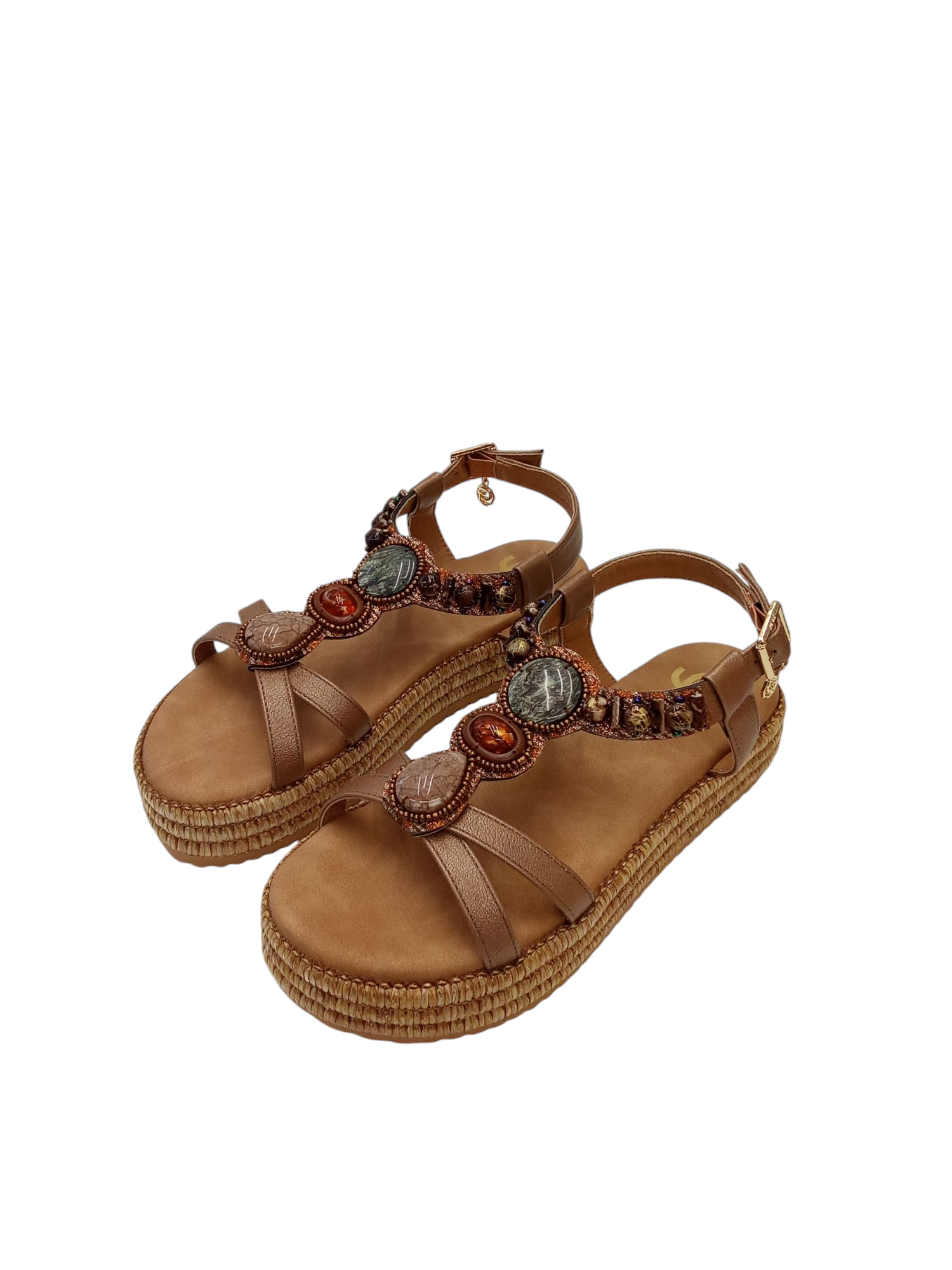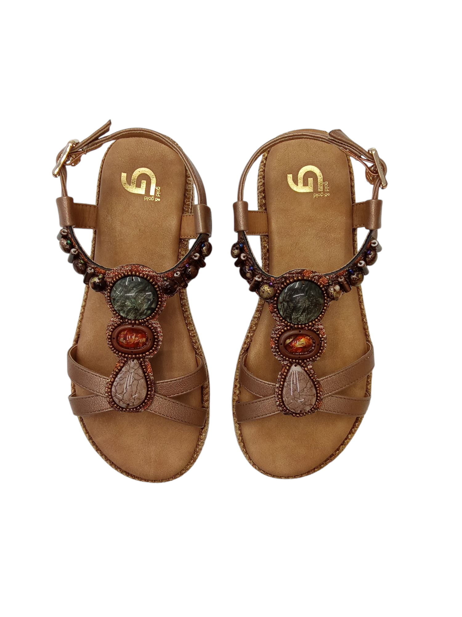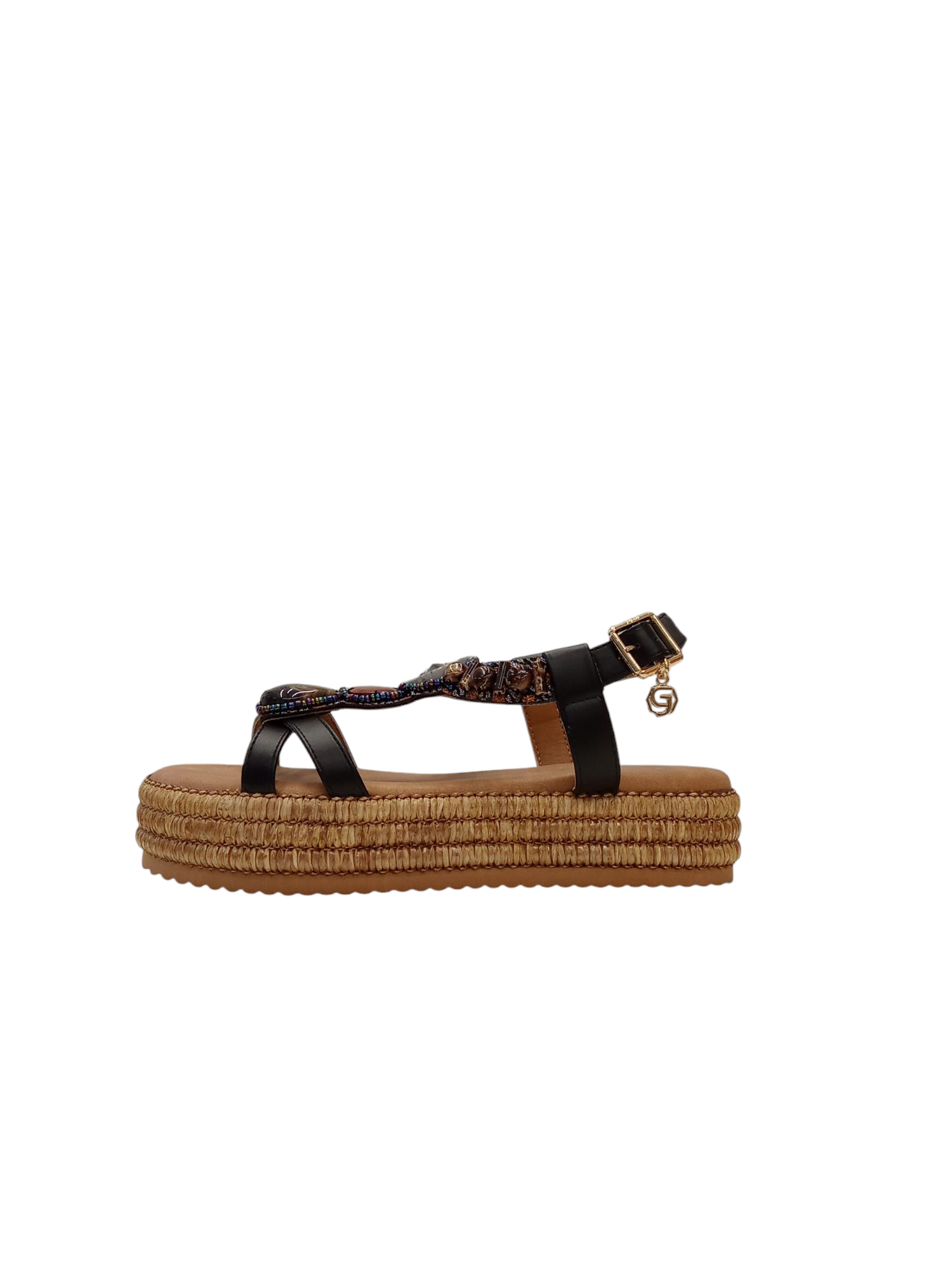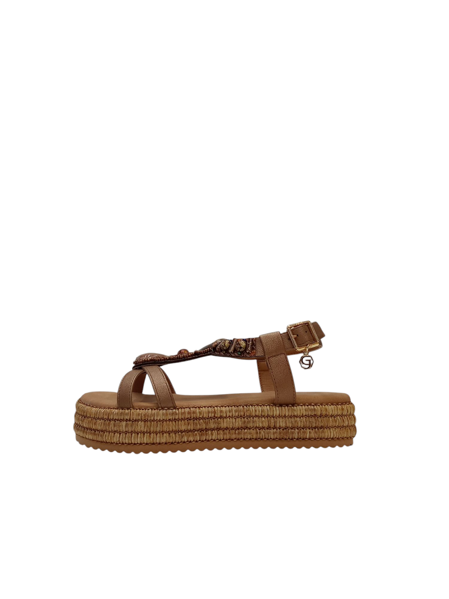 SANDALO GOLD & GOLD, CON ZEPPA PLATFORM, CINTURINO REGOLABILE CON ACCESSORIO.