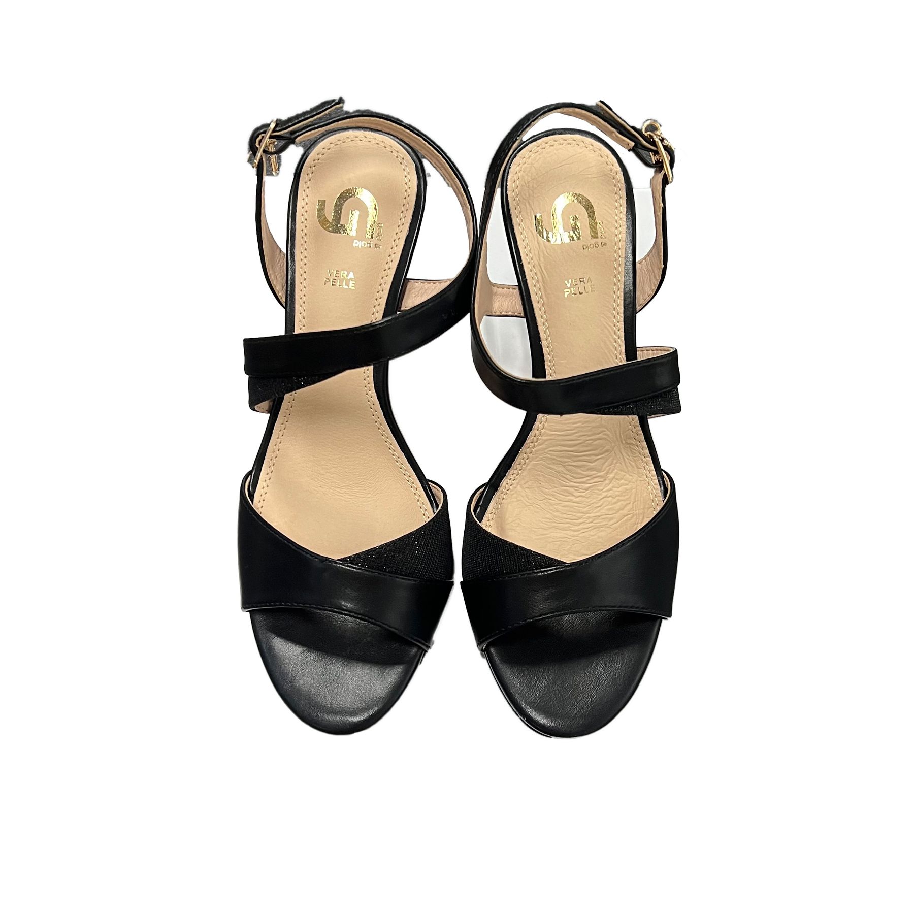 SANDALO GOLD & GOLD, CON TACCO ALTO, CHIUSURA REGOLABILE , CON FASCIA LAMINATA, SOTTOPIEDE IN PELLE
