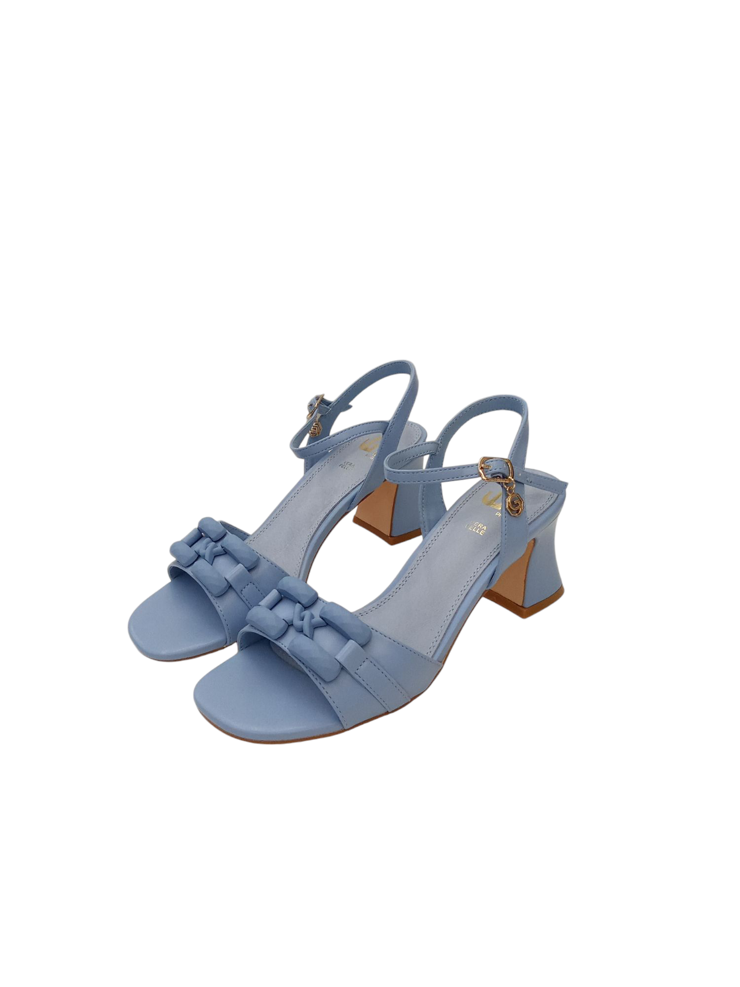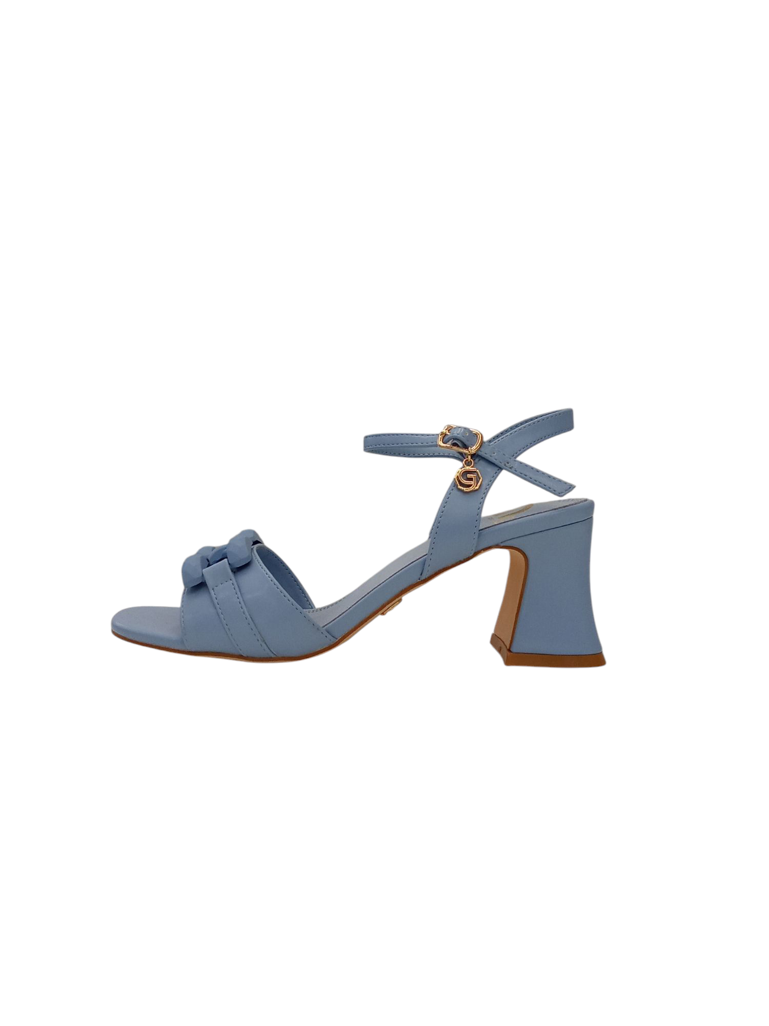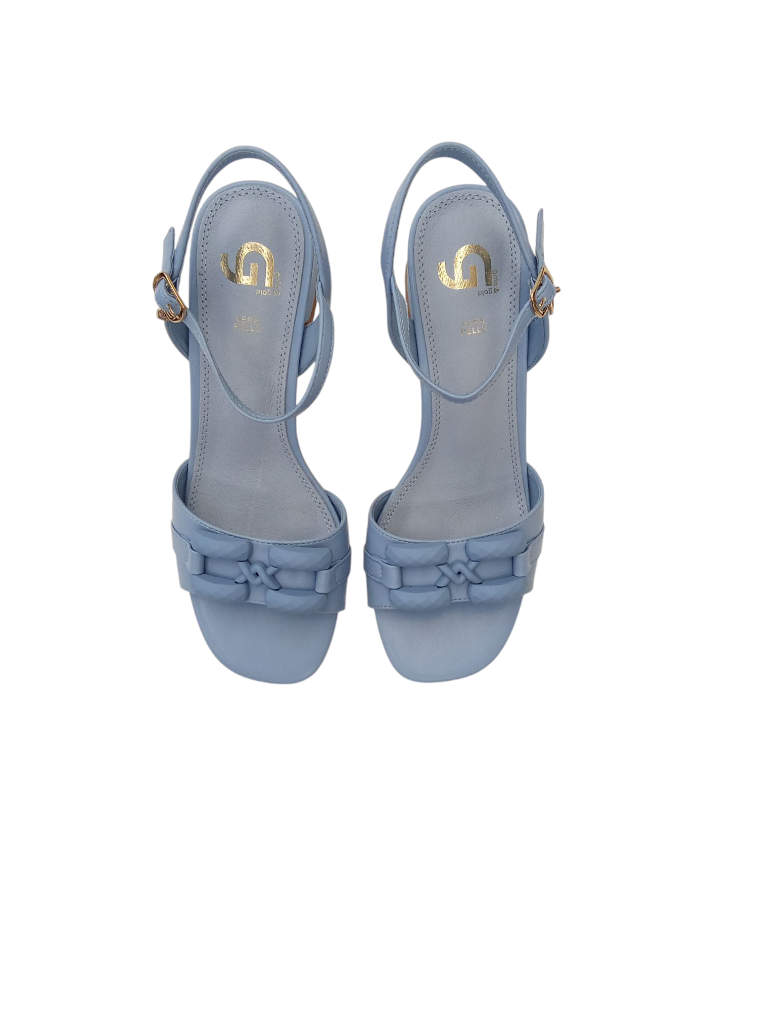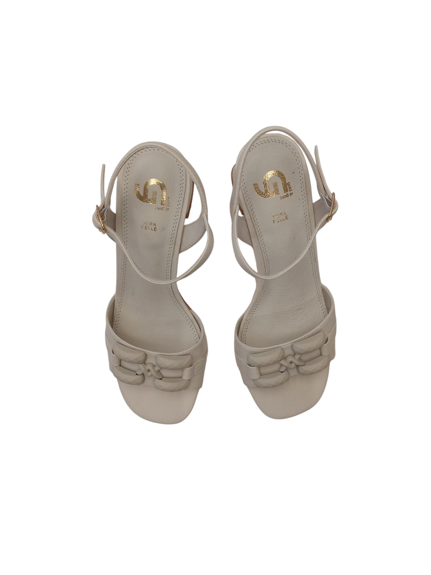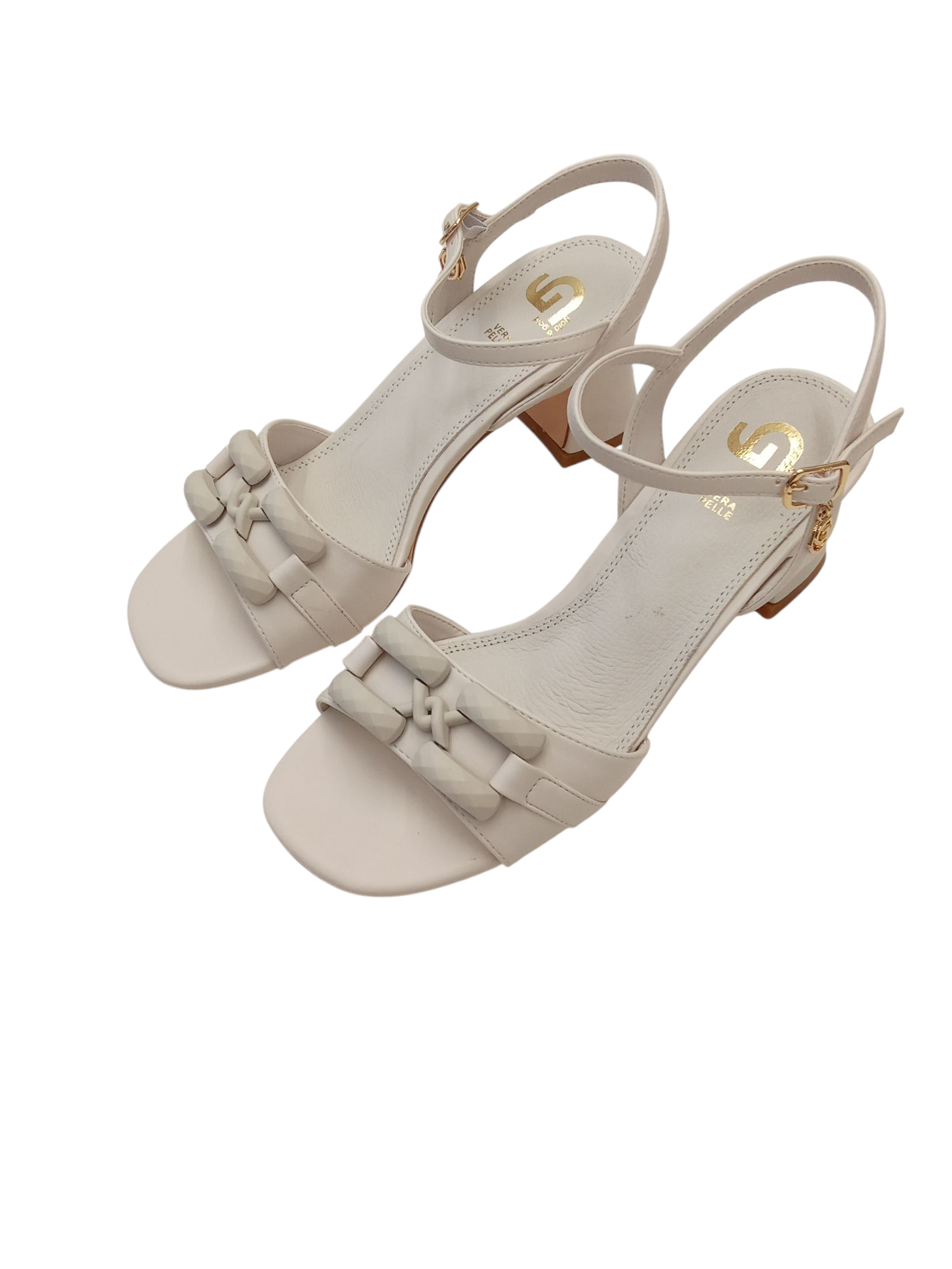 SANDALO GOLD & GOLD, CON TACCO E ACCESSORIO SULLA FASCIA, CINTURINO REGOLABILE E SOTTOPIEDE IN PELLE