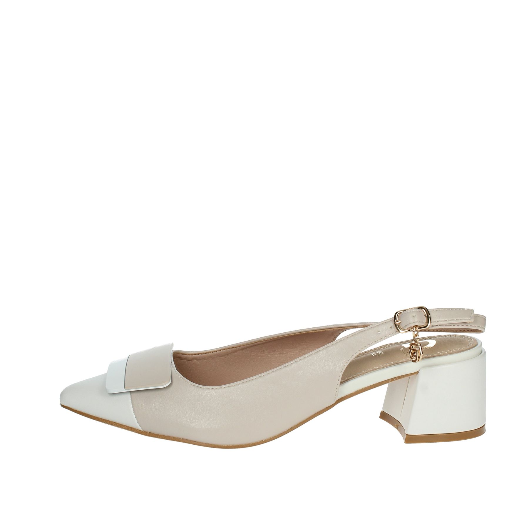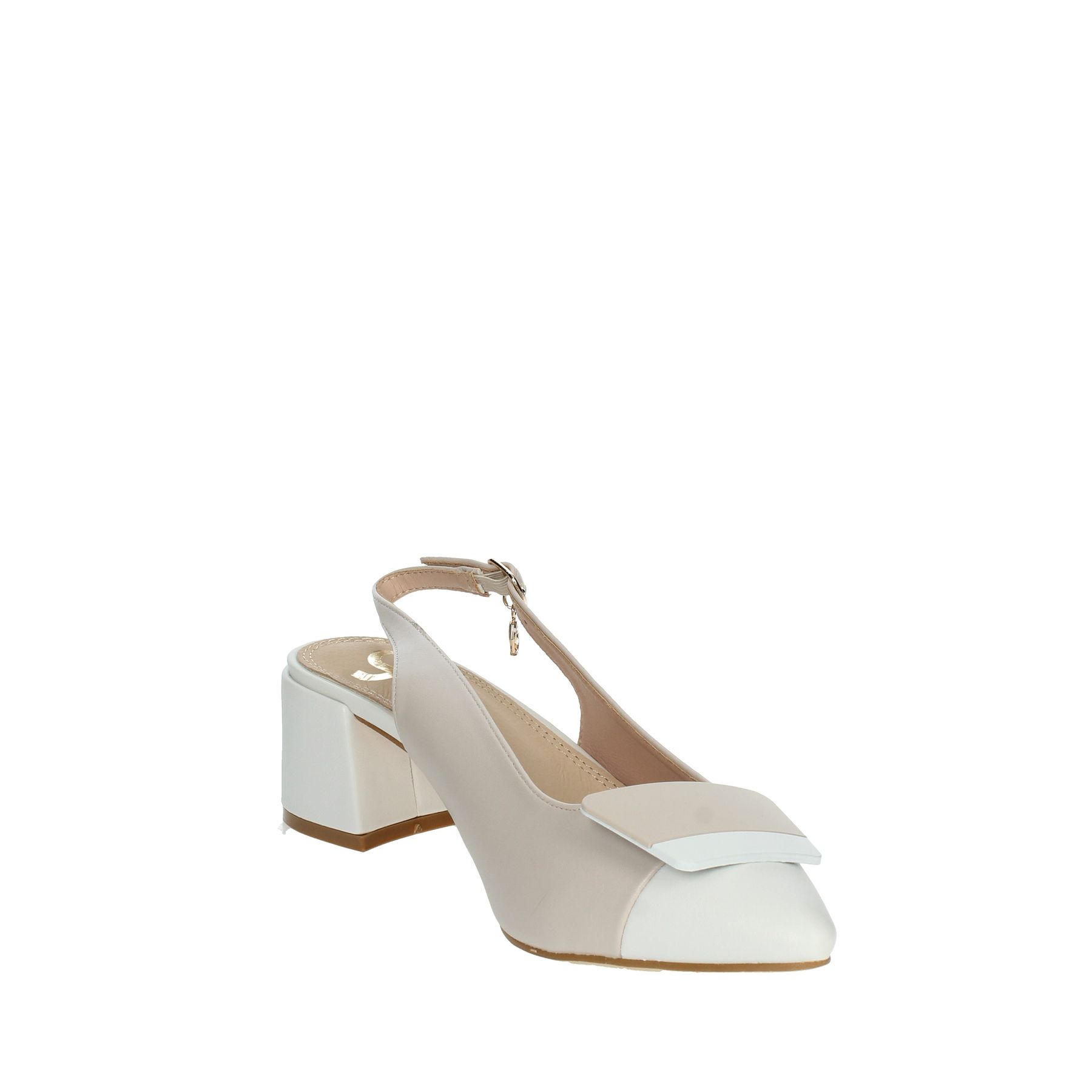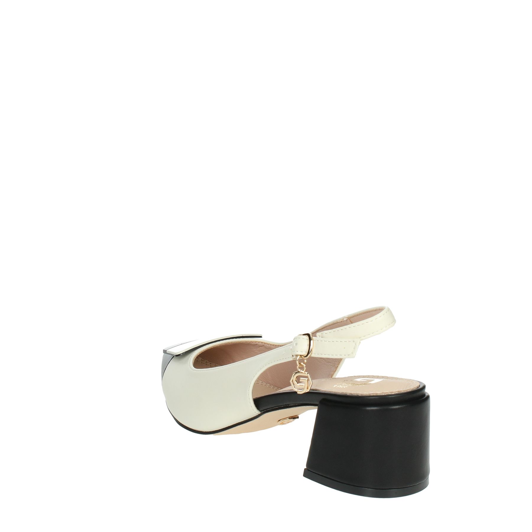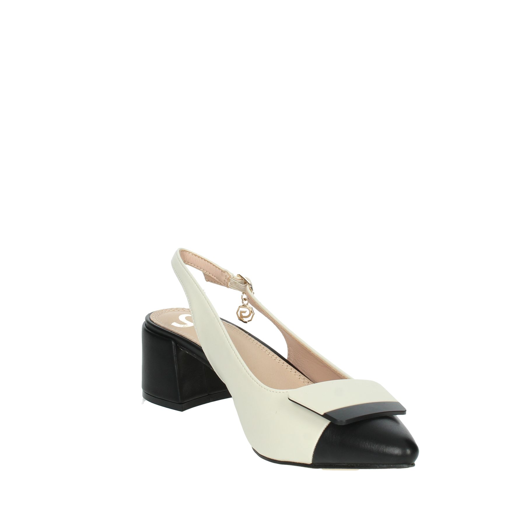 CHANEL GOLD & GOLD, TACCO QUADRATO, DETTAGLIO SULLA PUNTA BICOLORE, CINTURINO REGOLABILE, LOGO PENDENTE AL CINTURINO, SOTTOPIEDE IN PELLE