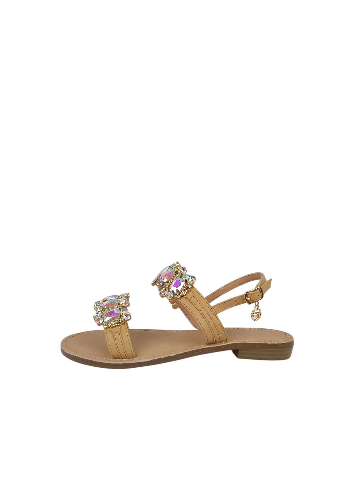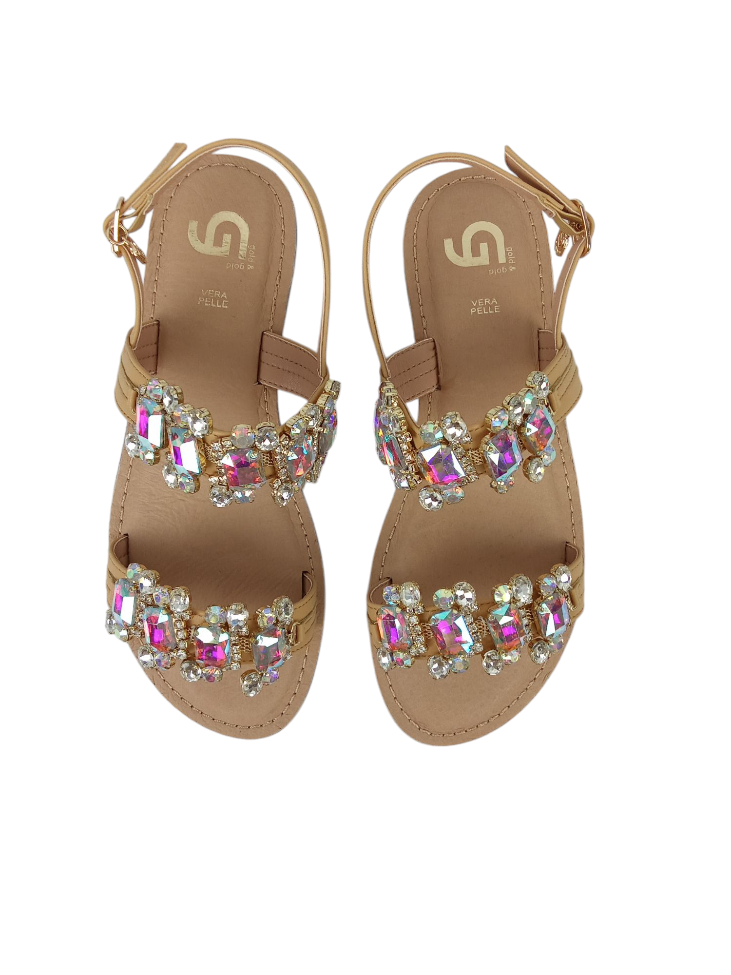 SANDALO GIOIELLO GOLD & GOLD, CHIUSURA CON CINTURINO ALLA CAVIGLIA CON FIBBIA REGOLABILE, CIONDOLO LOGO, SOTTOPIEDE MORBIDO IN PELLE E SUOLA ANTISCIVOLO