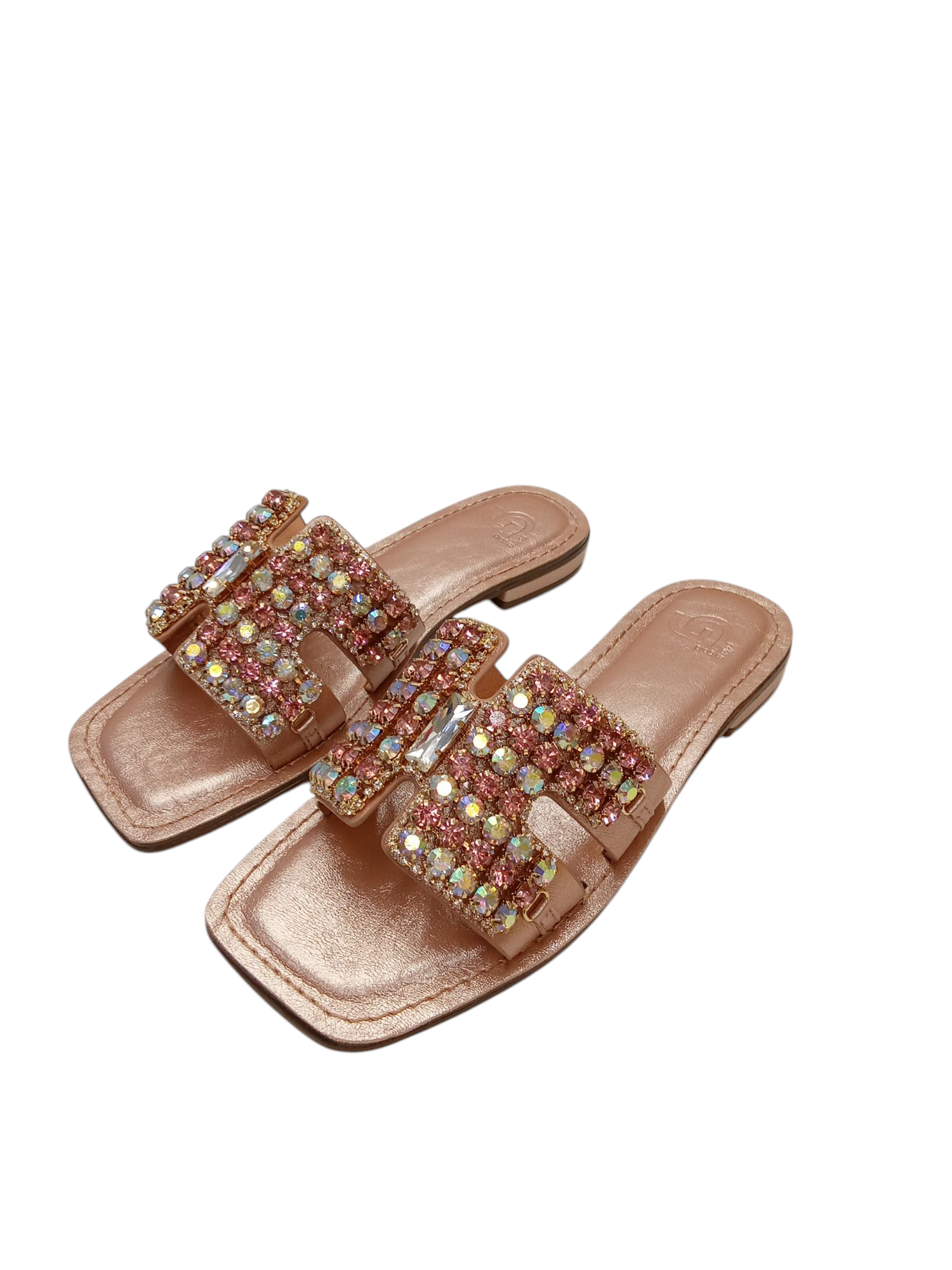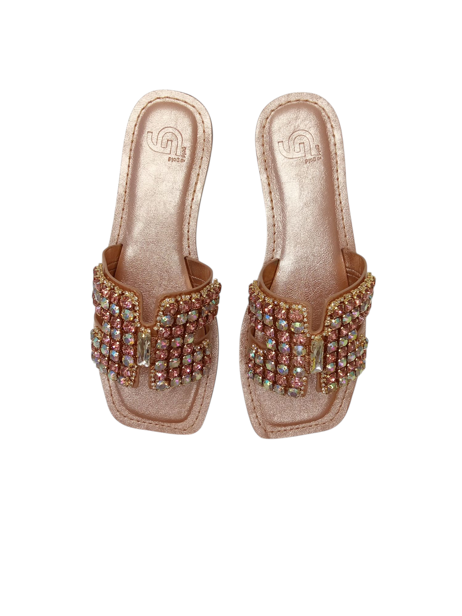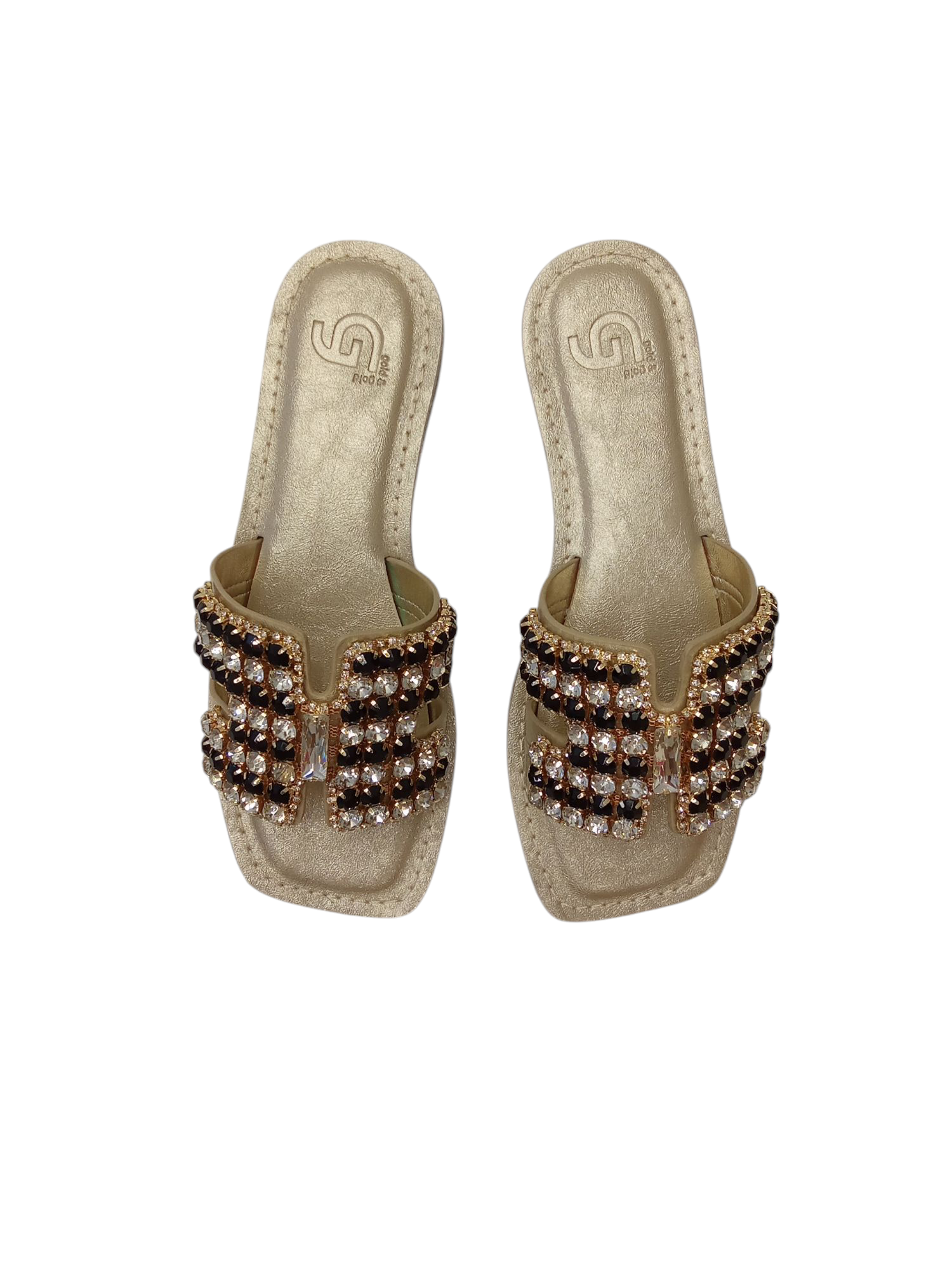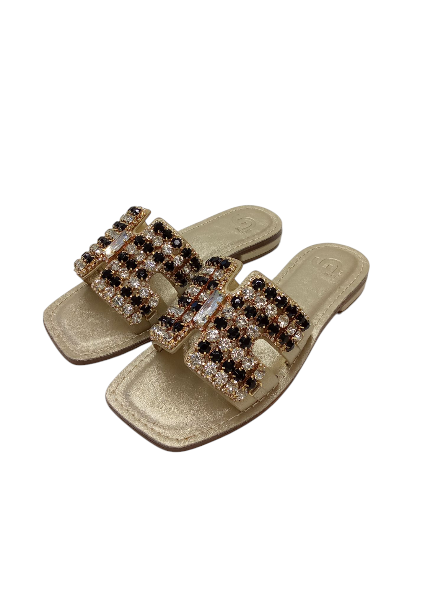 CIABATTA GOLD & GOLD, BASSA, DECORATA CON FASCIA LARGA DI PIETRE.