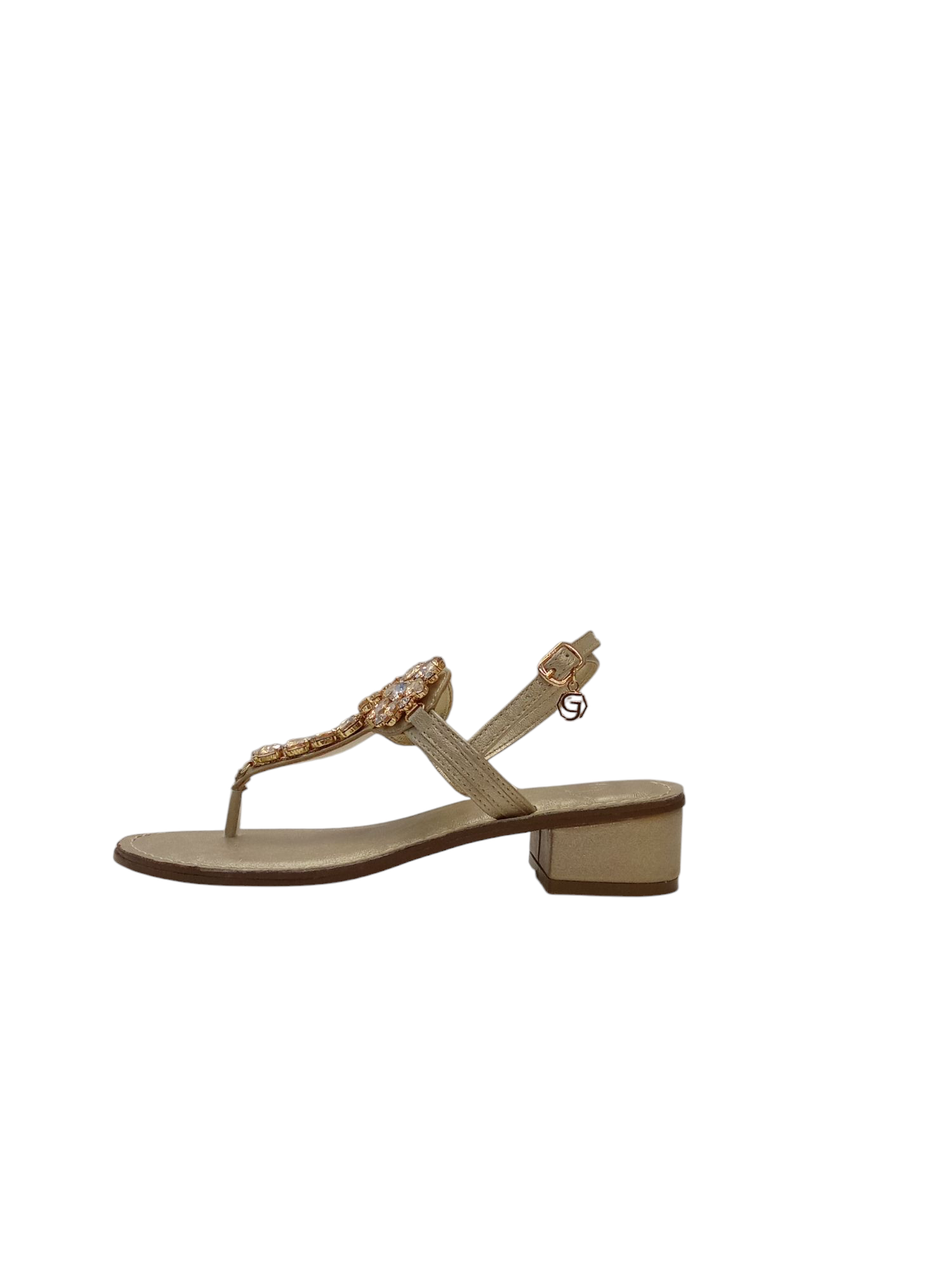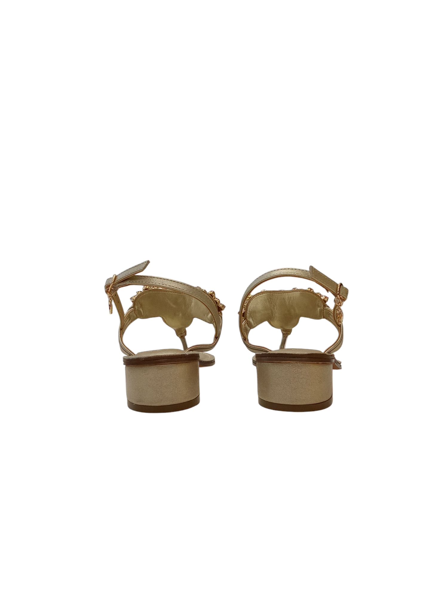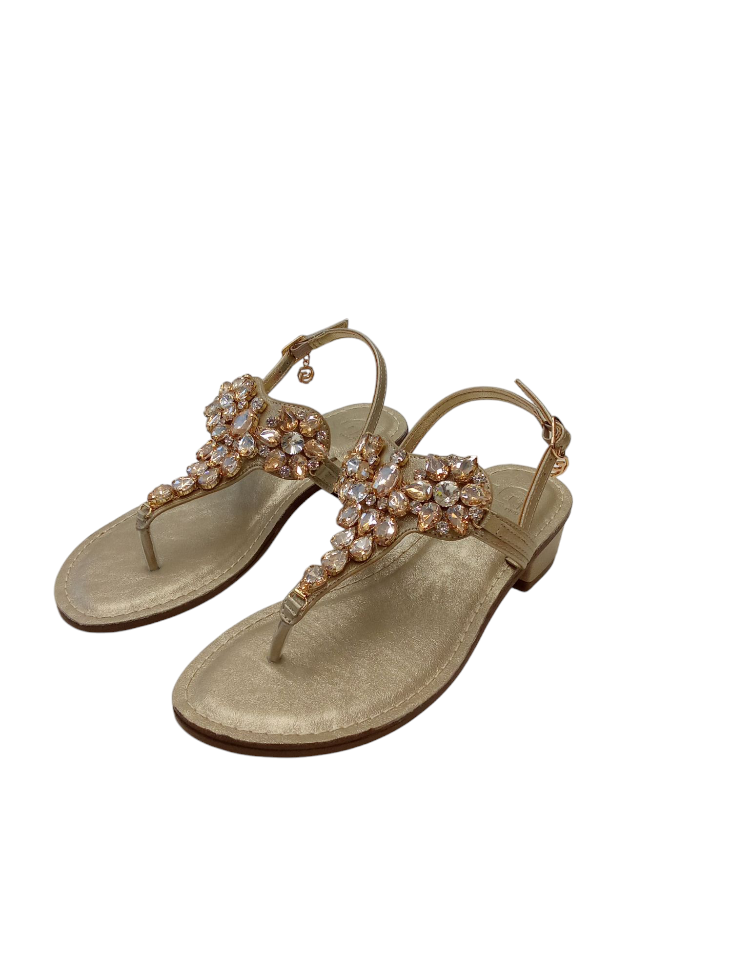 SANDALO INFRADITO GOLD & GOLD, DECORATO DA PIETRE, CINTURINO REGOLABILE SULLA CAVIGLIA.