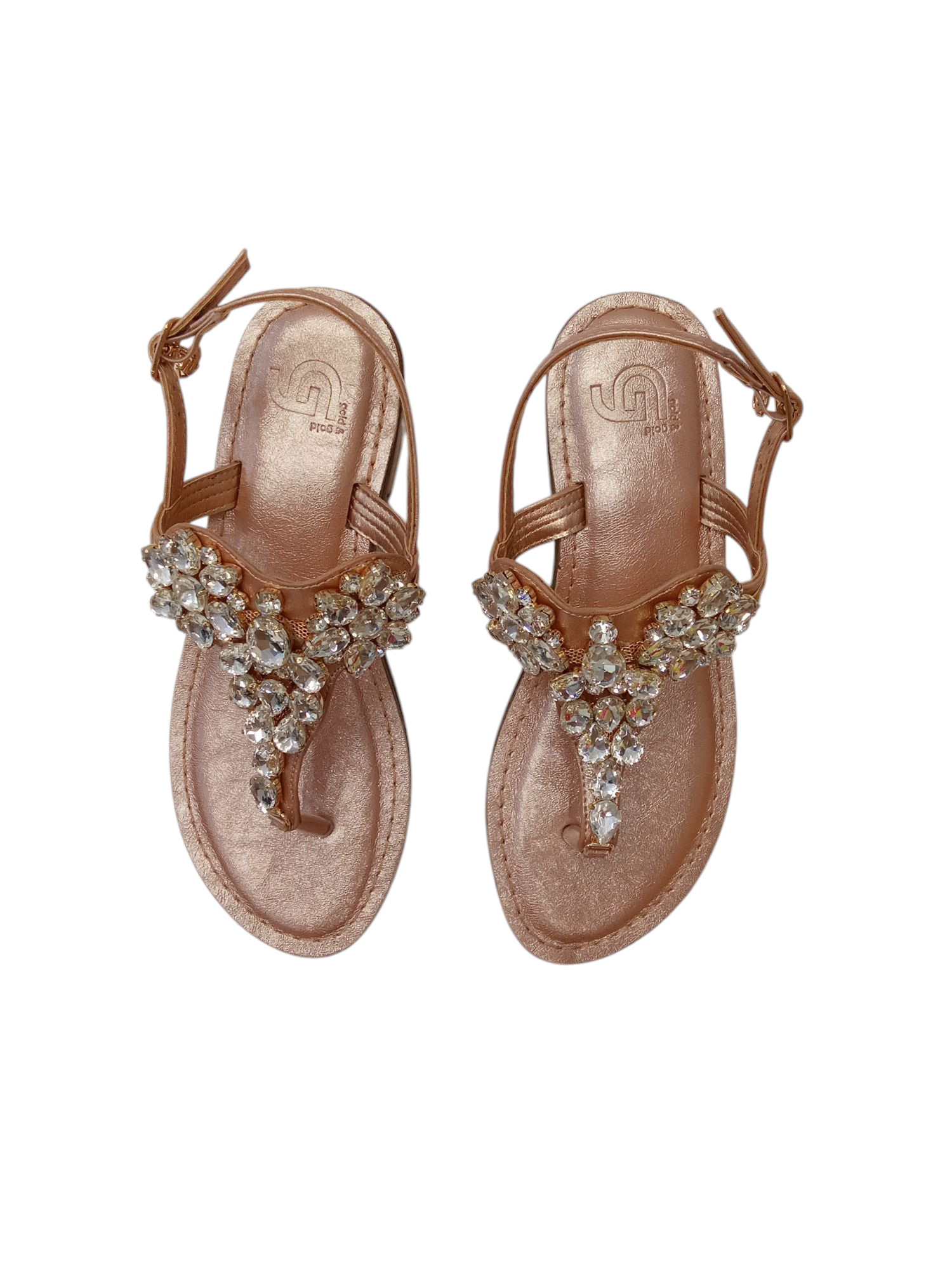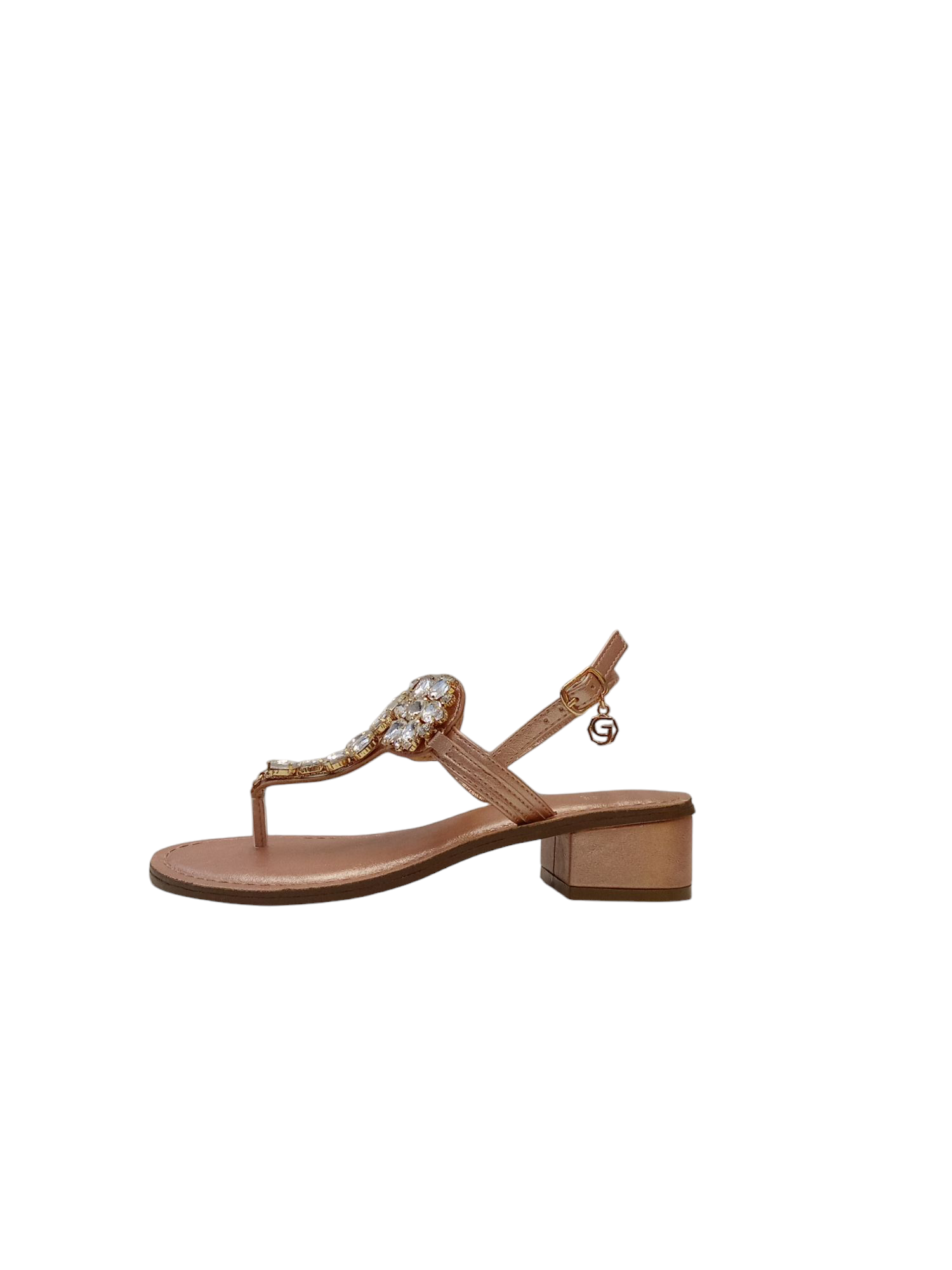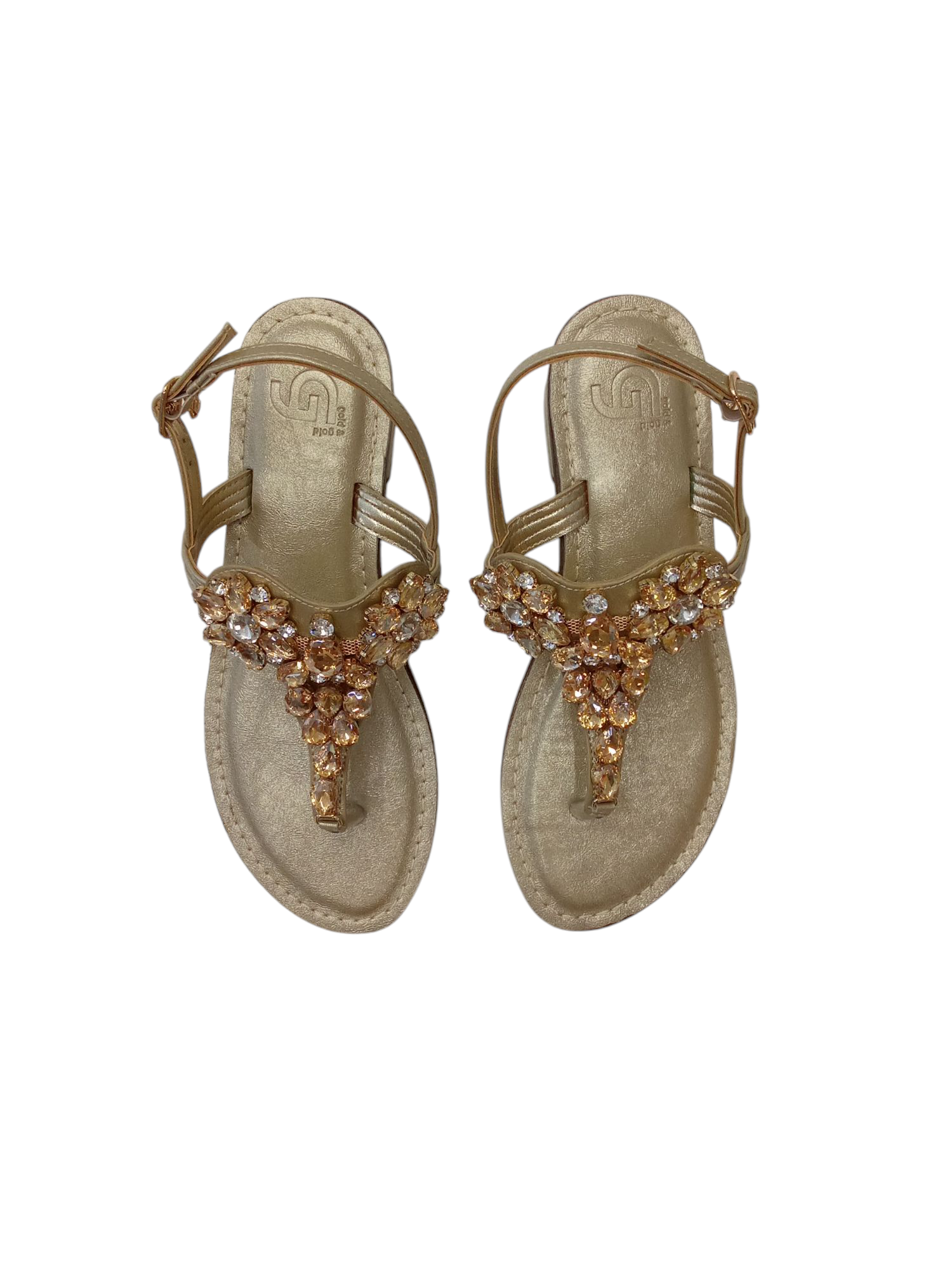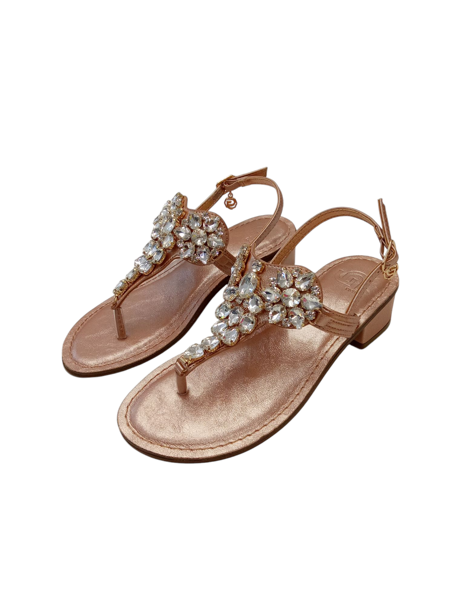 SANDALO INFRADITO GOLD & GOLD, DECORATO DA PIETRE, CINTURINO REGOLABILE SULLA CAVIGLIA.