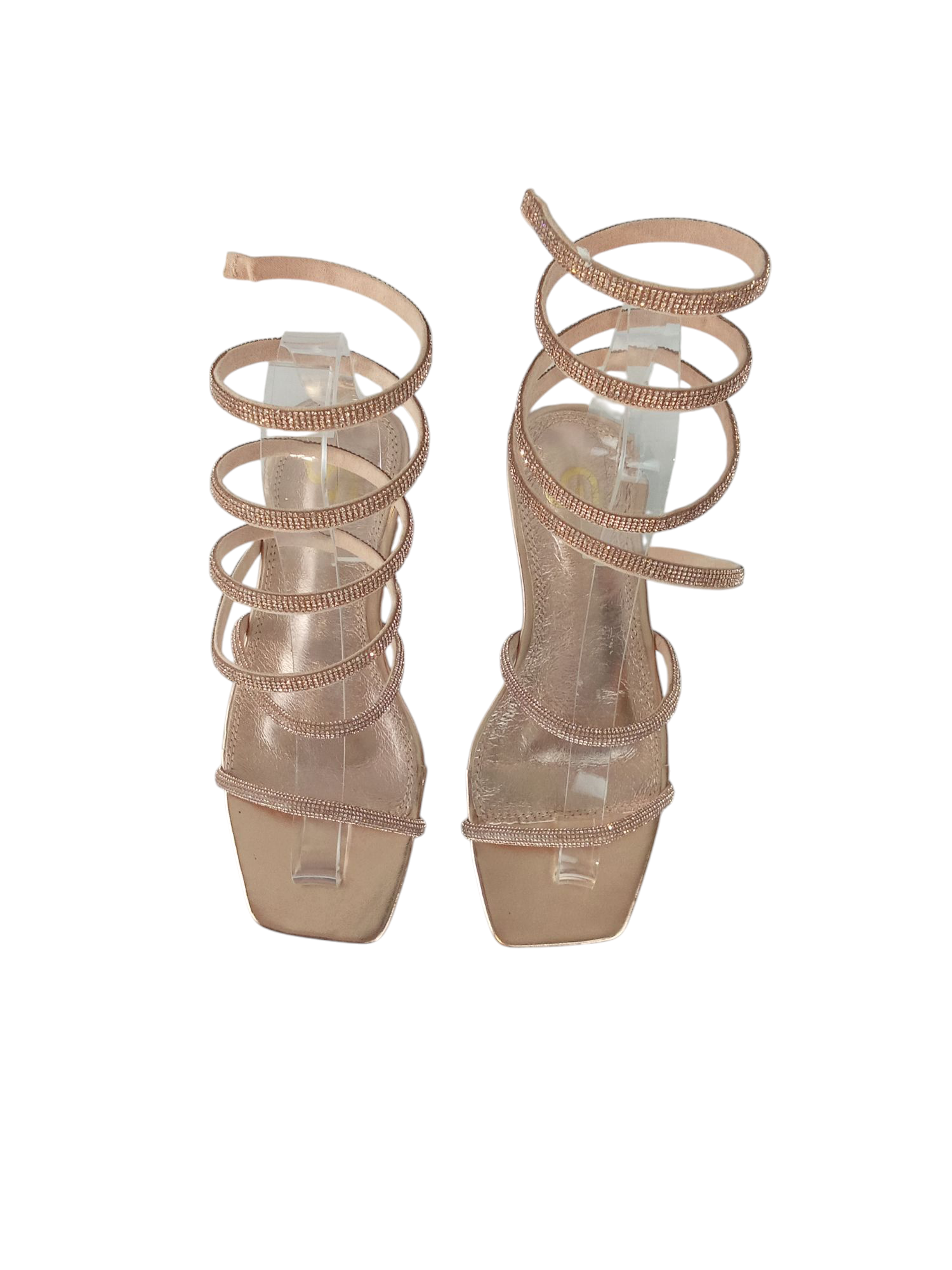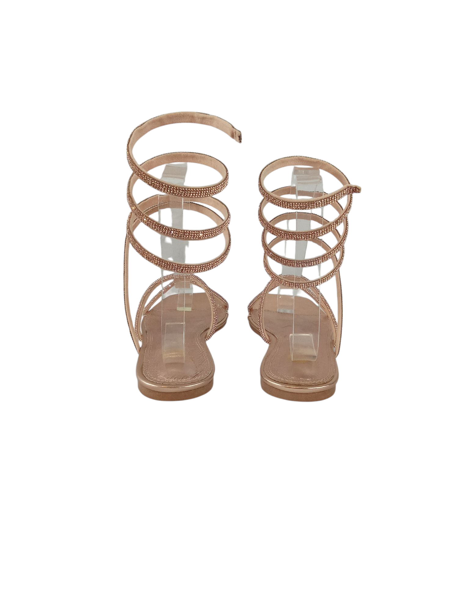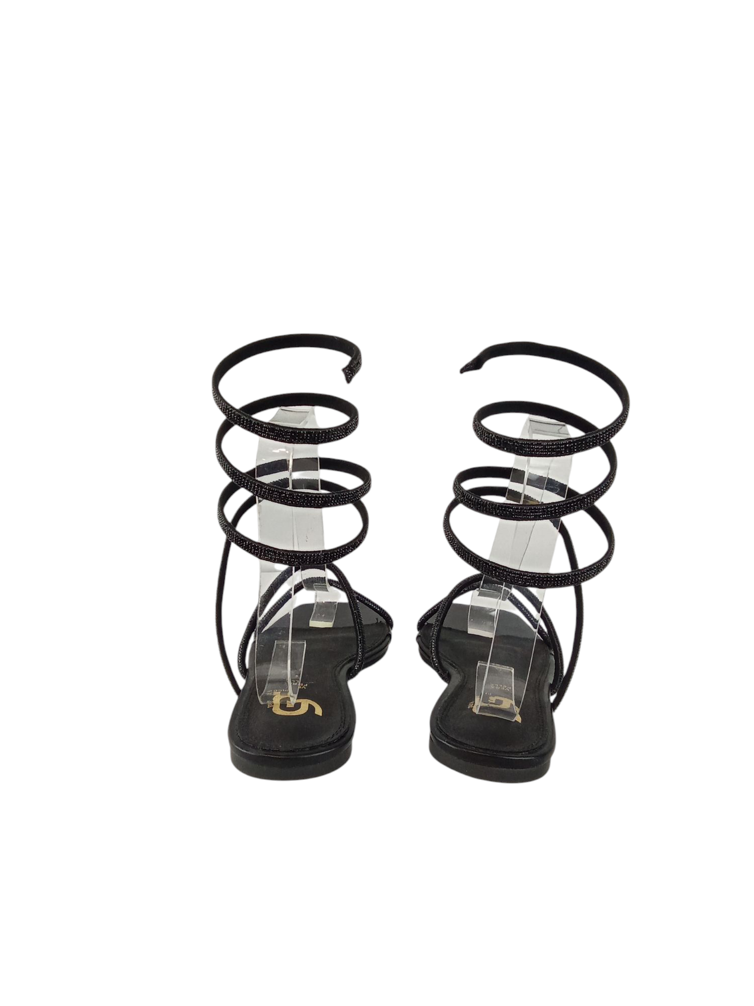 CIABATTA GOLD & GOLD, CON MOLLA, STRASS LUNGO IL POLPACCIO E DUE STRINGHE SUL PIEDE