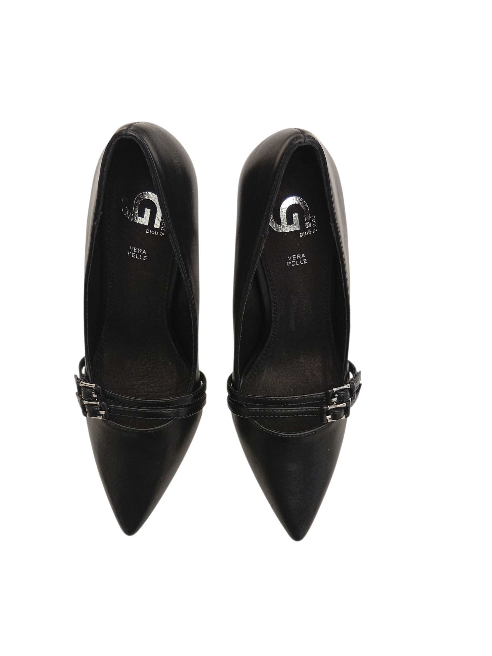 DECOLLETE' GOLD & GOLD con tacco alto e dettaglio doppia fascia frontale. Realizzata in ecopelle, con sottopiede in pelle che le conferisce la giusta confortevolezza.