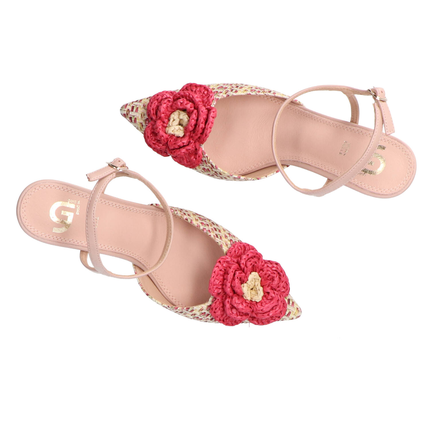 DECOLLETE' SLINGBACK GOLD & GOLD, impreziosito da un delicato dettaglio floreale applicato sulla tomaia che dona stile e originalità. , DOTATO DI CINTURINO REGOLABILE, TACCO 6 Cm.
