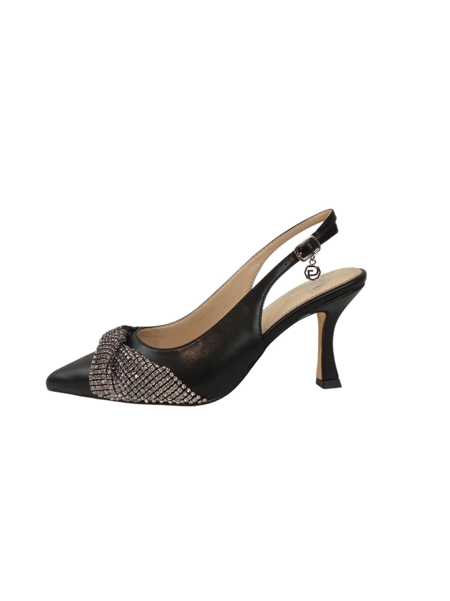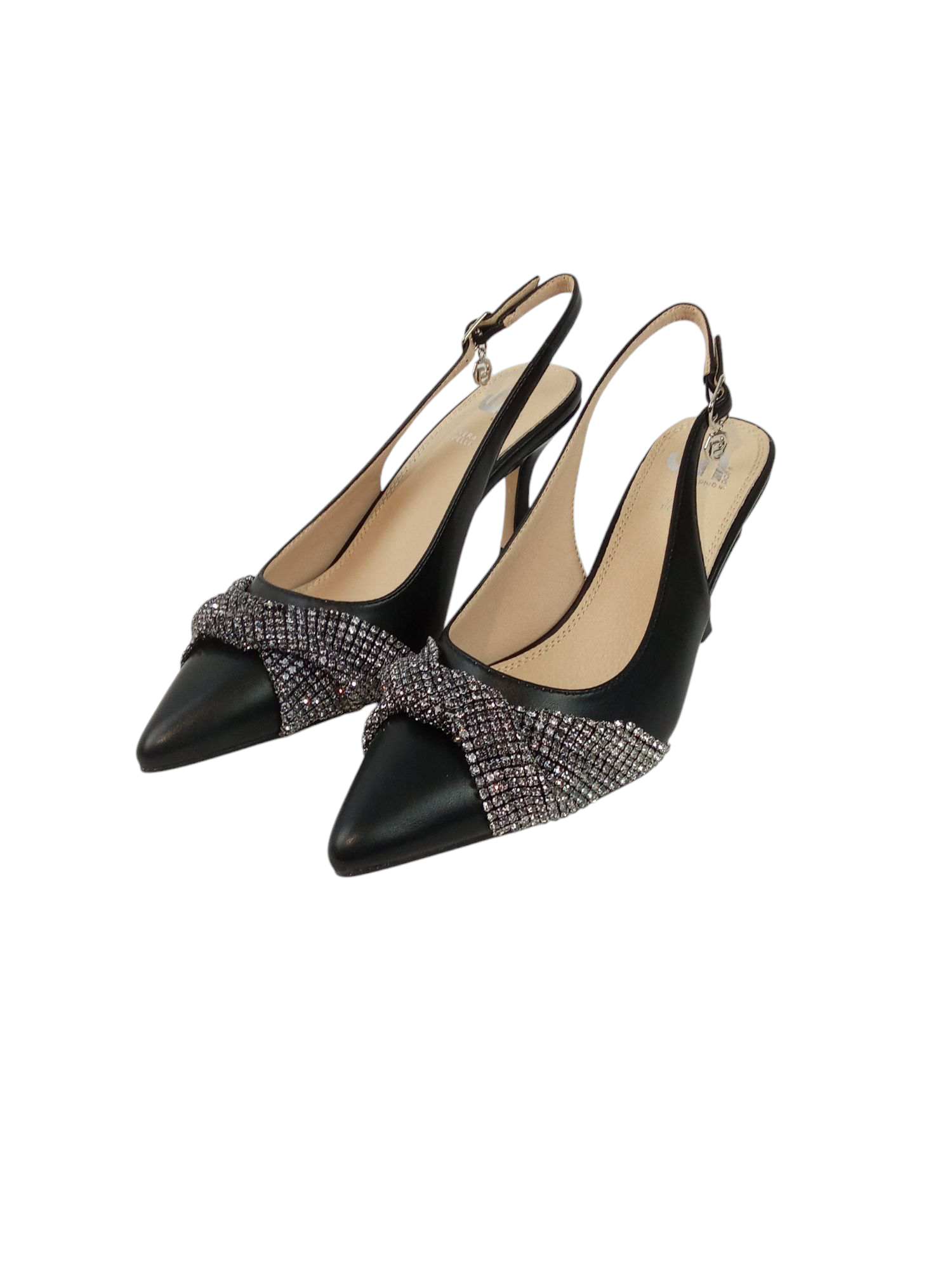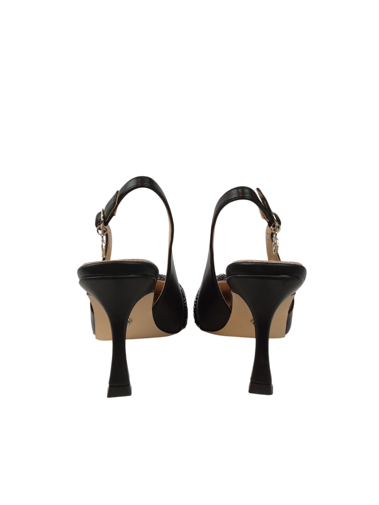 DECOLLETE' GOLD & GOLD, CON TALLONE SCOPERTO IN UNA STRUTTURA A PUNTA IN ECOPELLE, SOLETTA CON IMBOTTITURA IN VERA PELLE, ACCESSORIO INTRECCIATO.