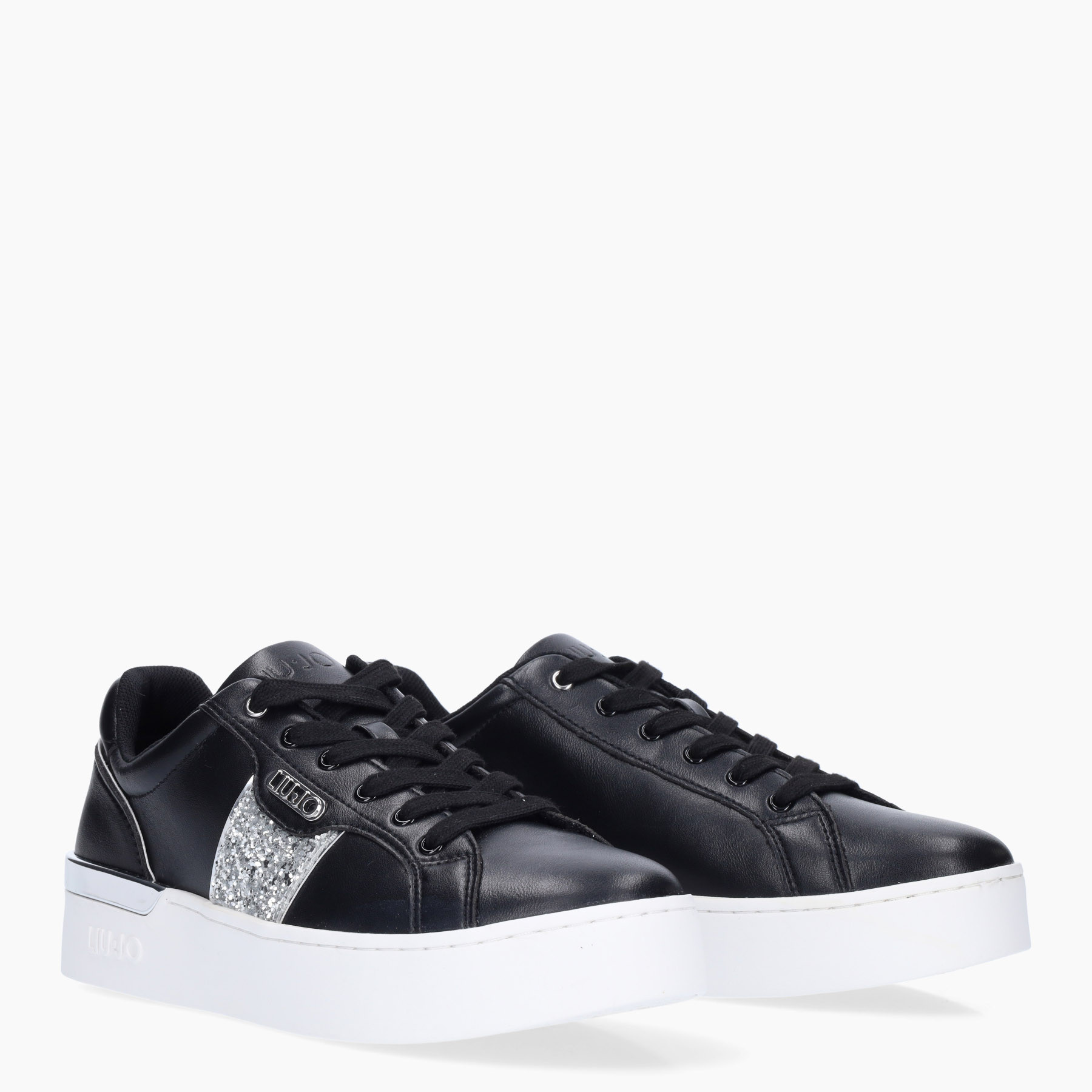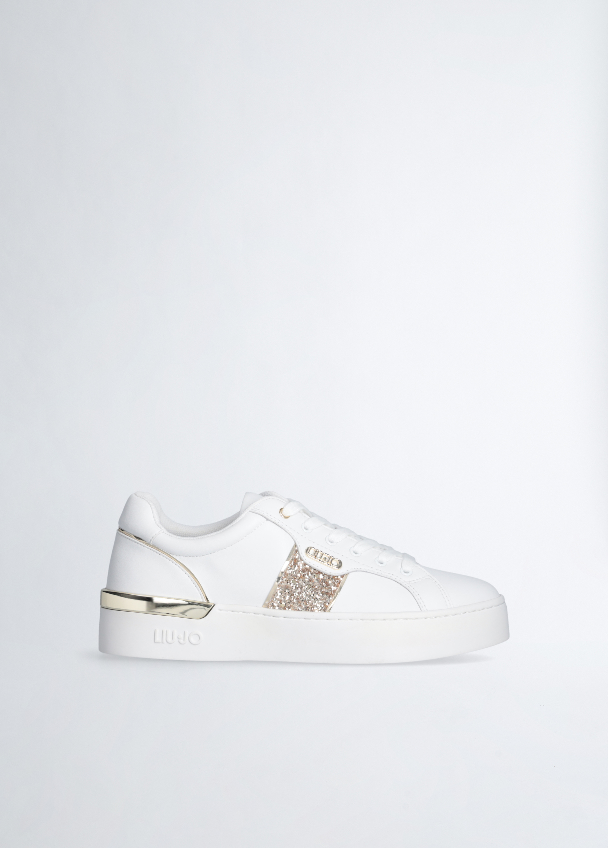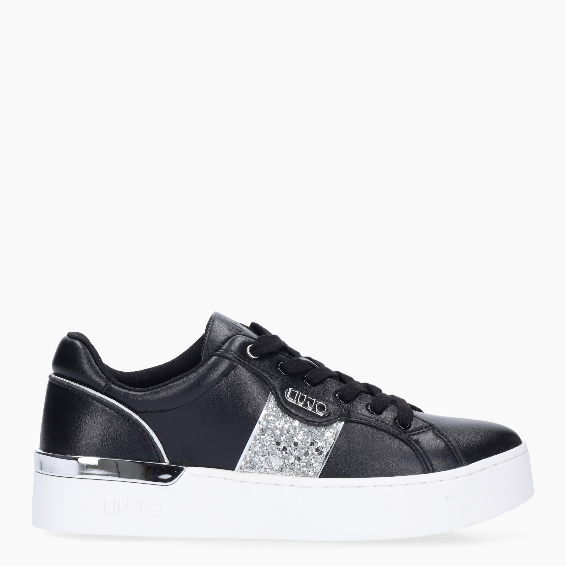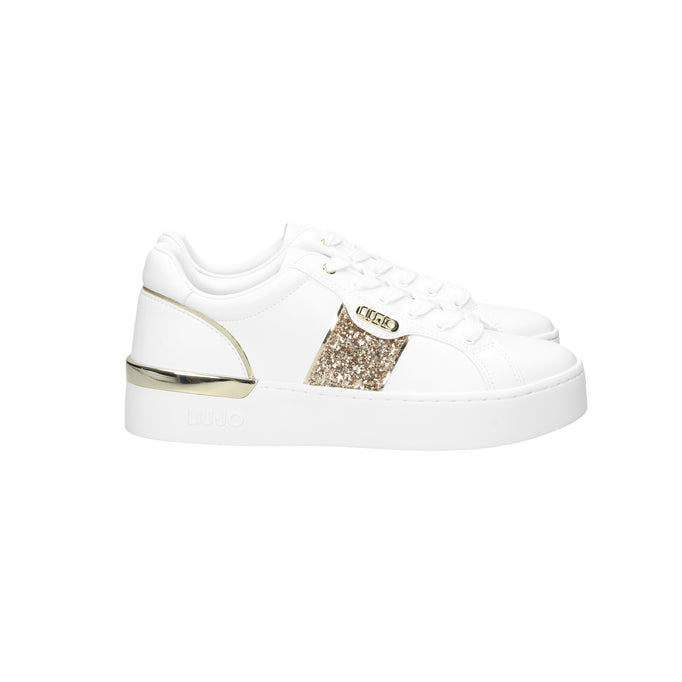 SNEAKERS LIU JO, IN ECOPELLE CON INSERTO GLITTER, FONDO IN GOMMA ALTO 3,5 Cm.