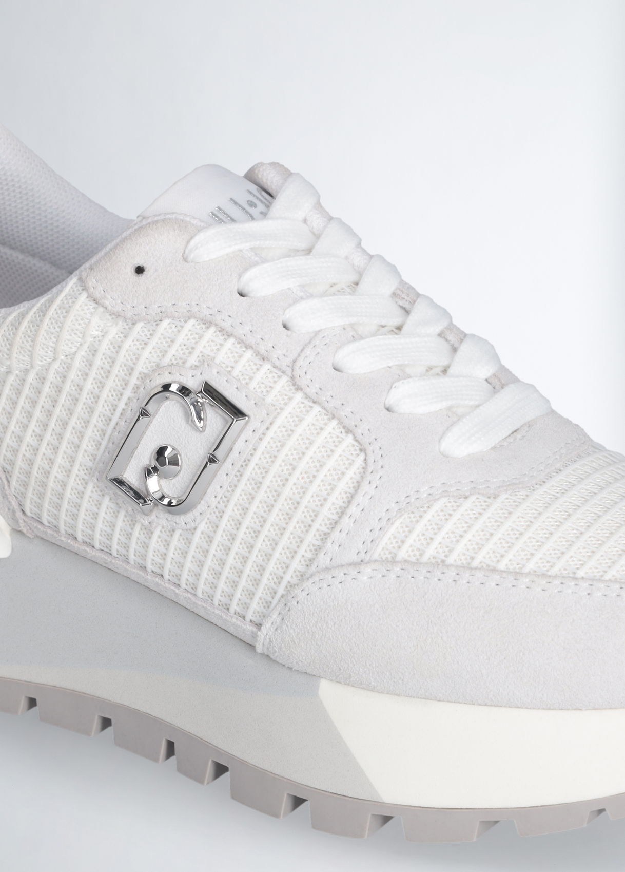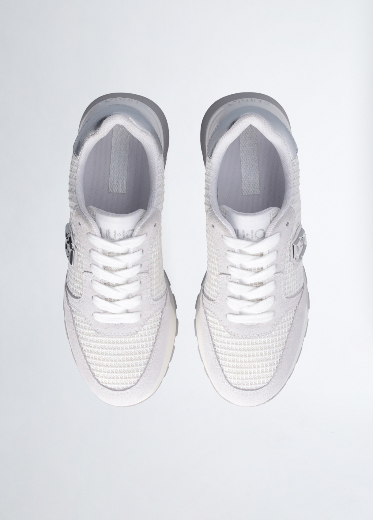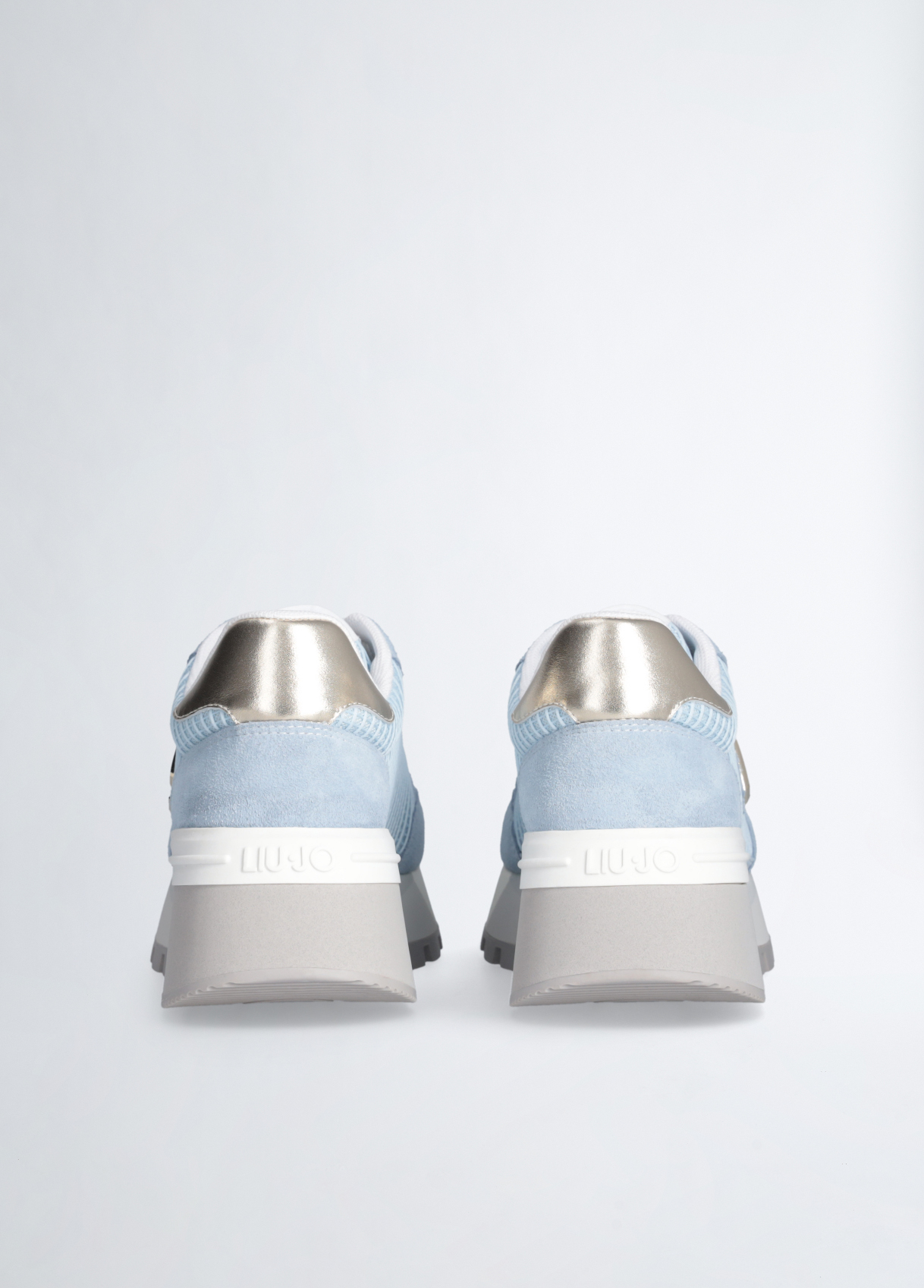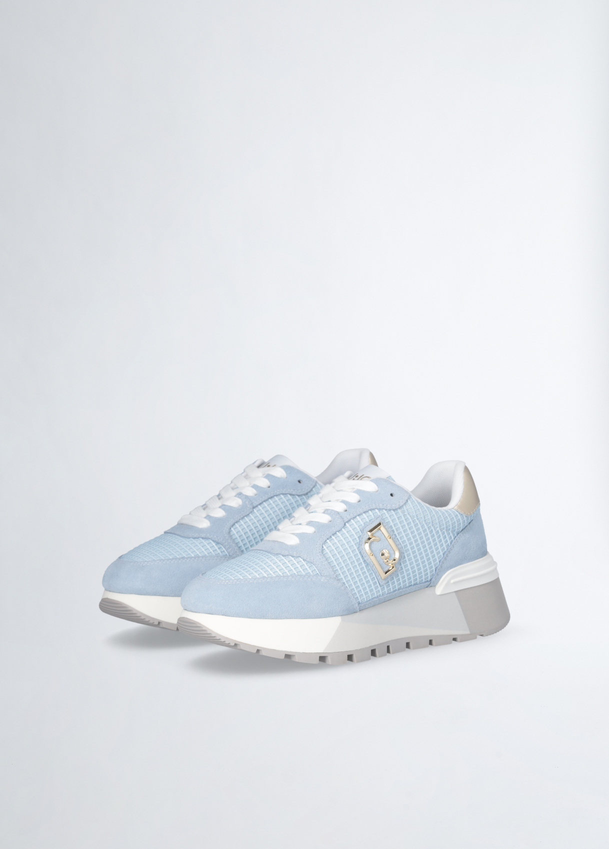 SNEAKERS LIU JO, CON TOMAIA IN SUEDE, DETTAGLIO IN RETE E PATCH LOGO APPLICATA SUL LATO, INSERTO GLOSSY SUL TALLONE E SUOLA PLATFORM.