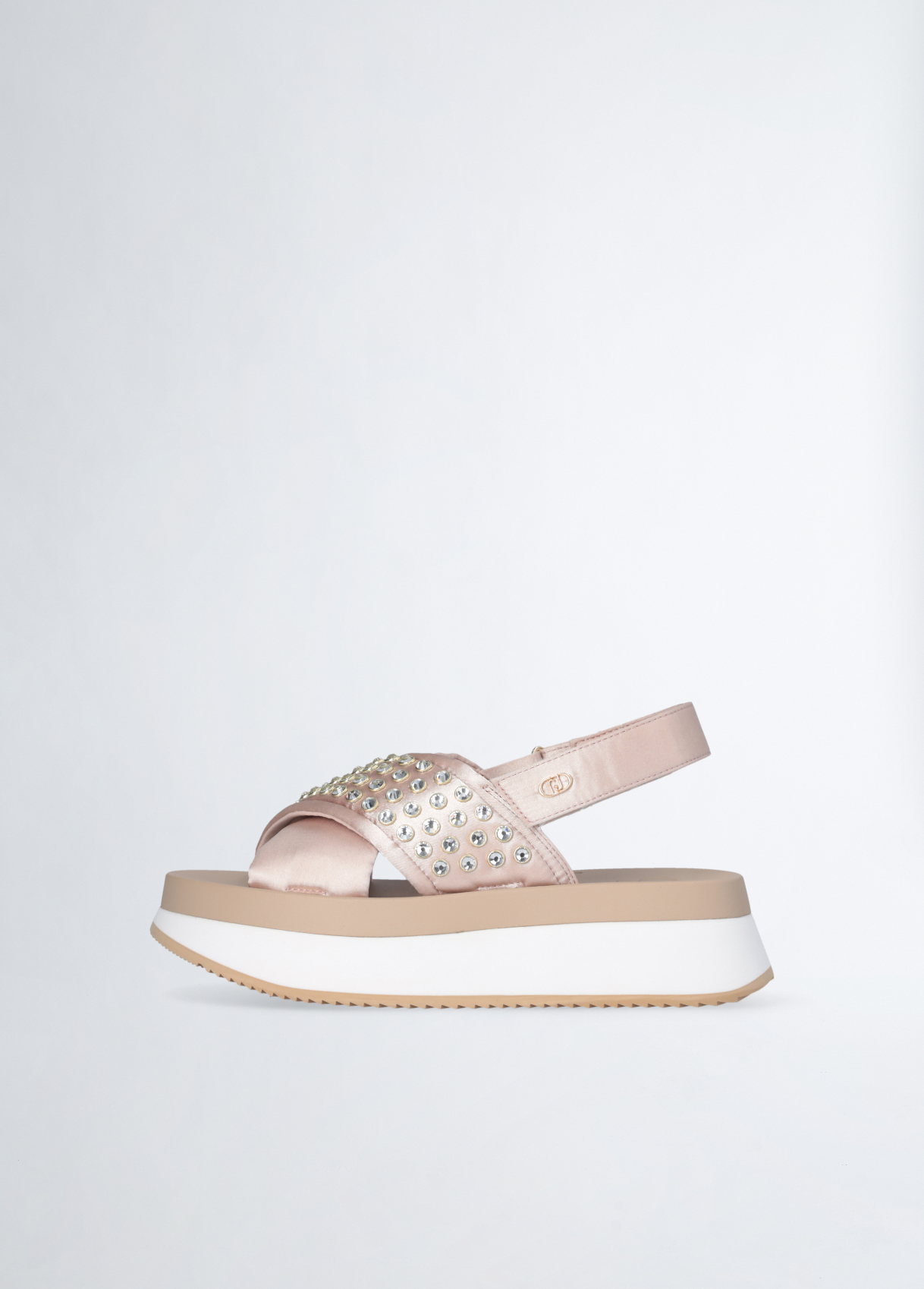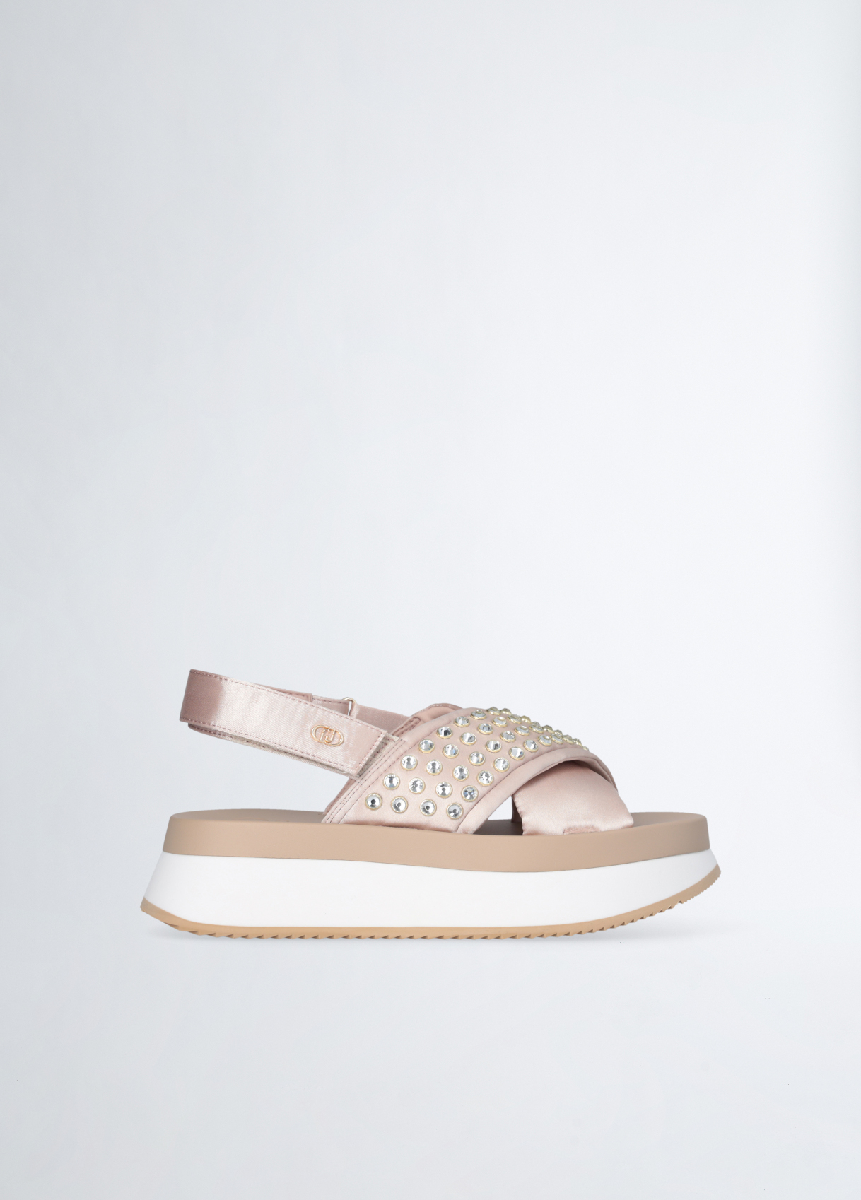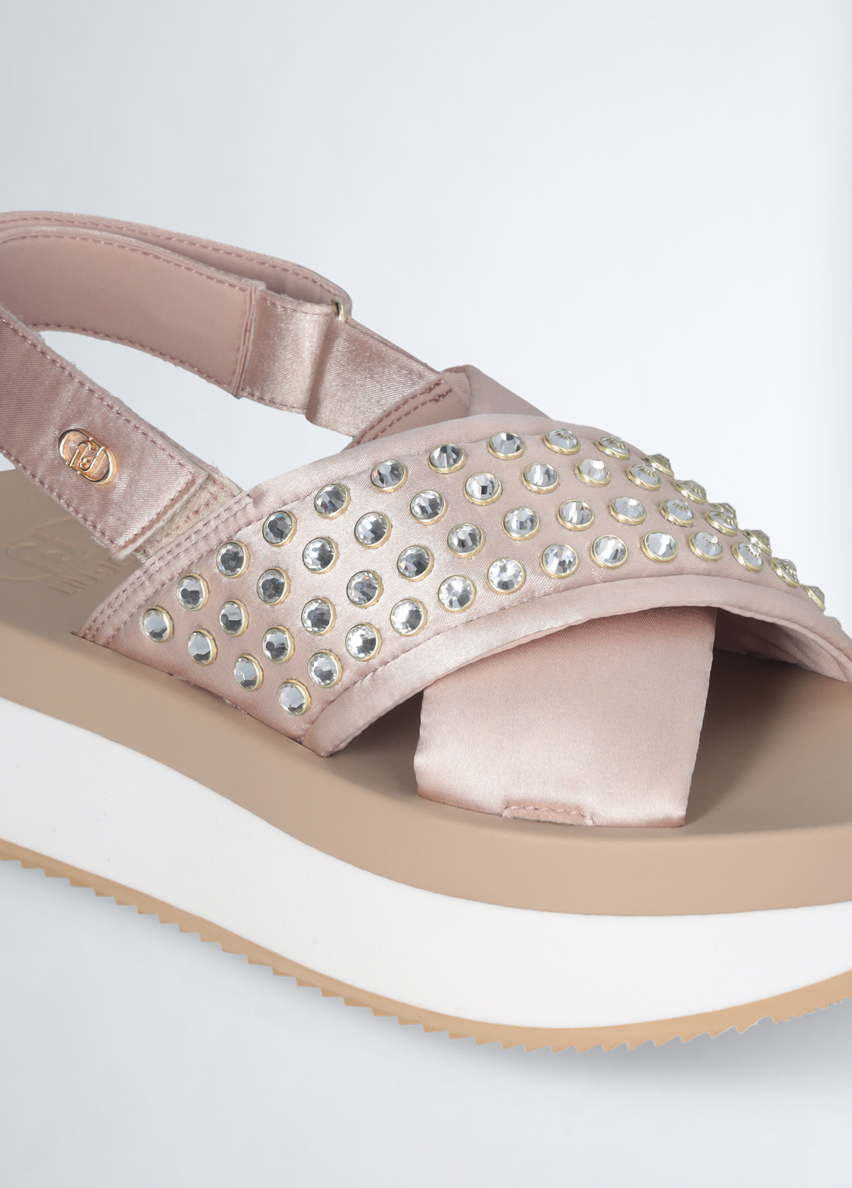 SANDALO LIU JO, PLATFORM CON BORCHIE GIOIELLO E CINTURINO CON VELCRO.
