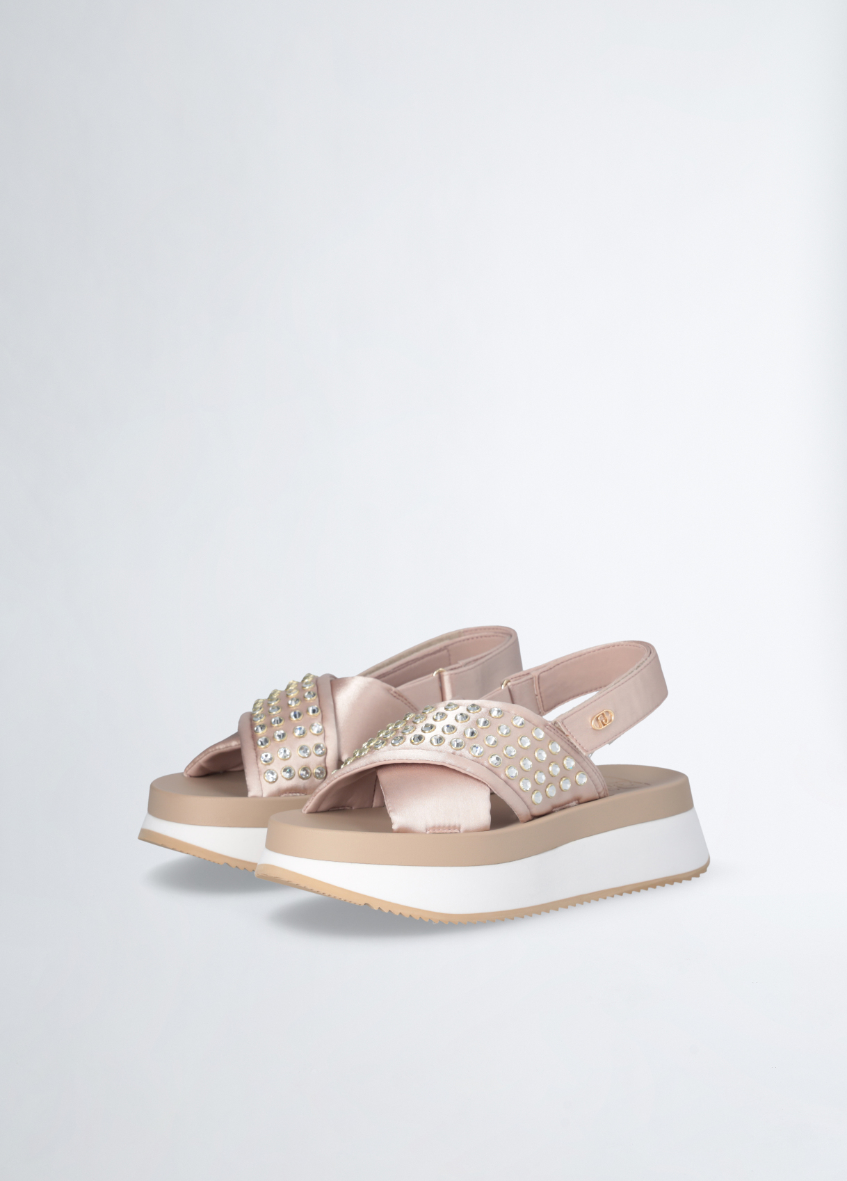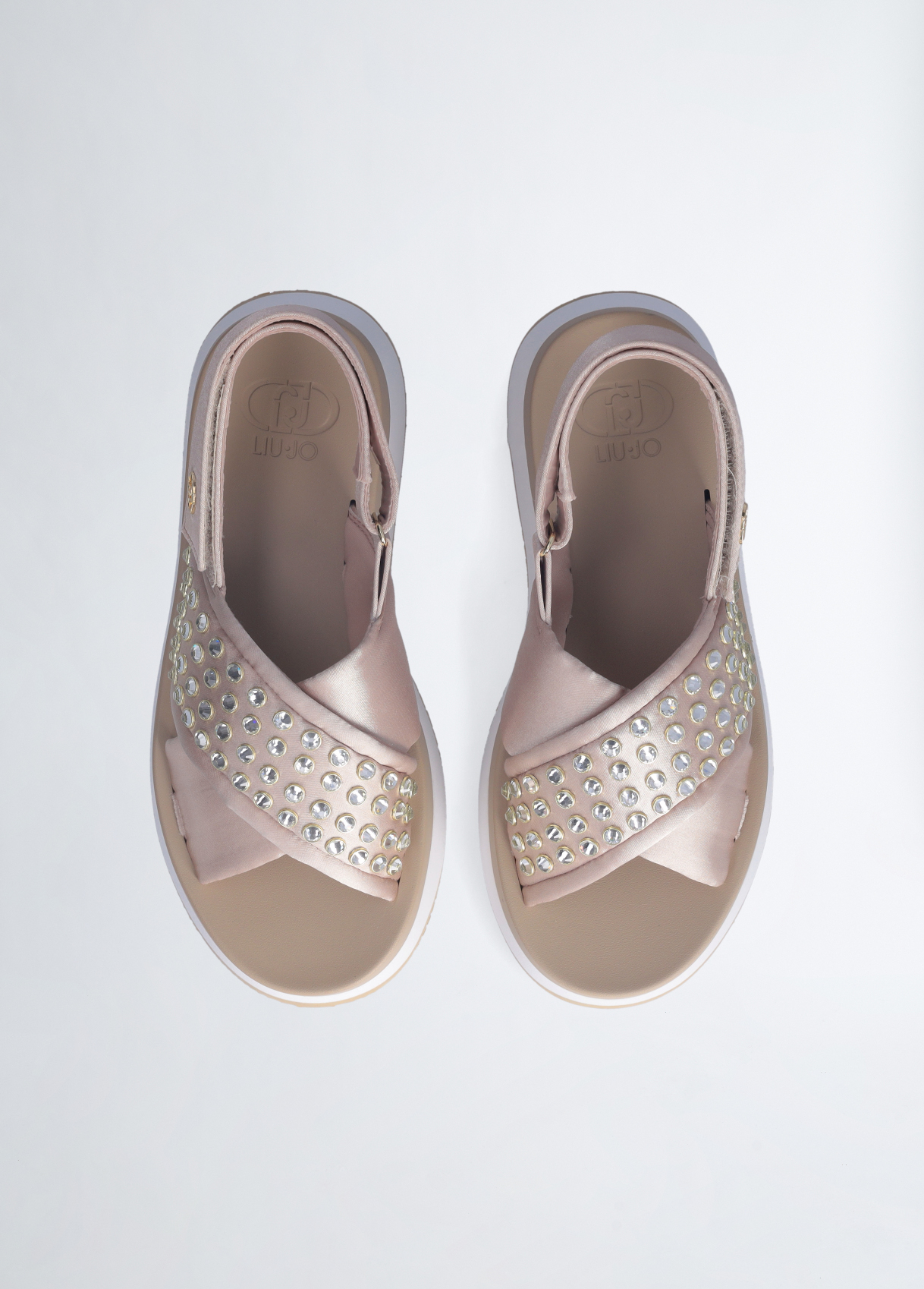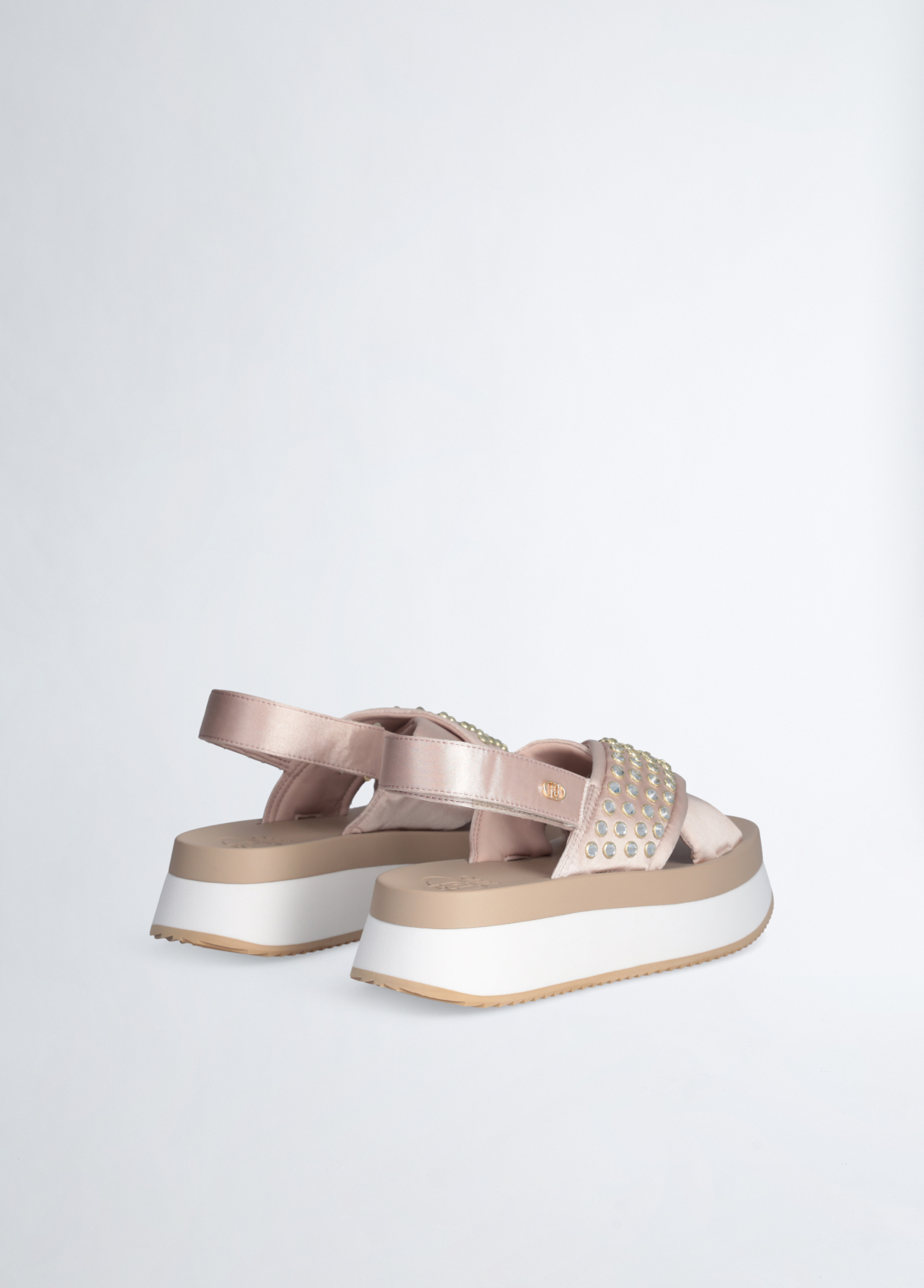 SANDALO LIU JO, PLATFORM CON BORCHIE GIOIELLO E CINTURINO CON VELCRO.