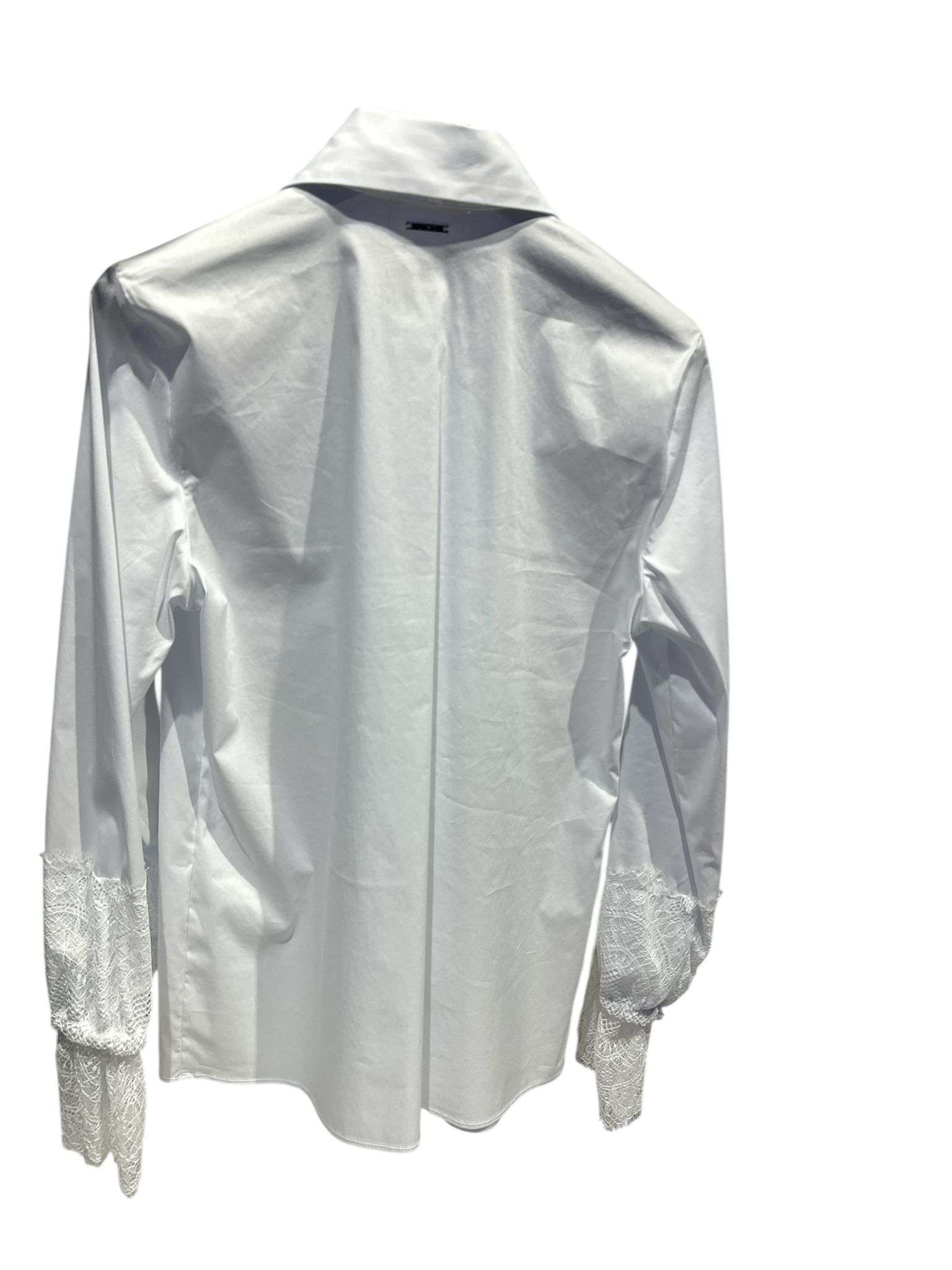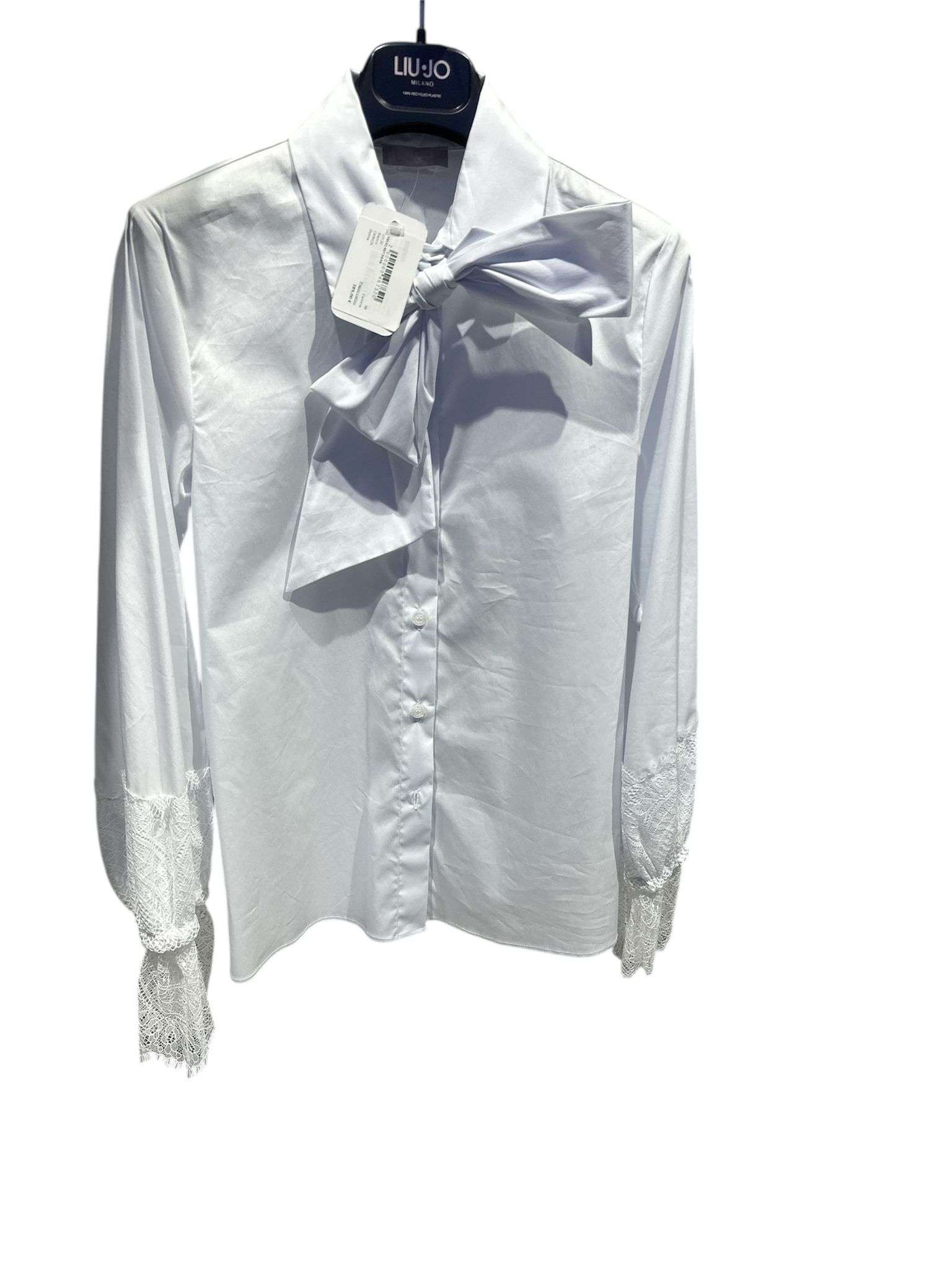 CAMICIA LIU JO CON COLLO ALL'ITALIANA, BOTTONI SUL DAVANTI, VESTIBILITA' REGULAR, ELASTICI AI POLSI, RICHIAMI IN PIZZO E LACCETTO A CRAVATTA INTORNO AL COLLO