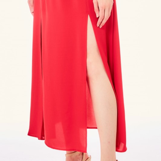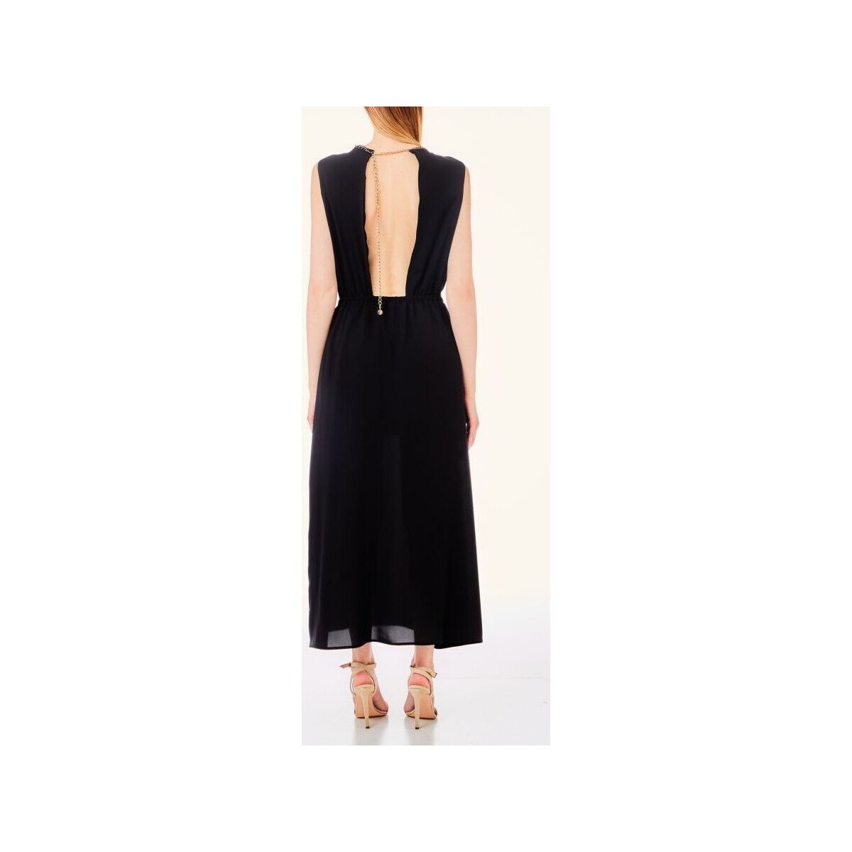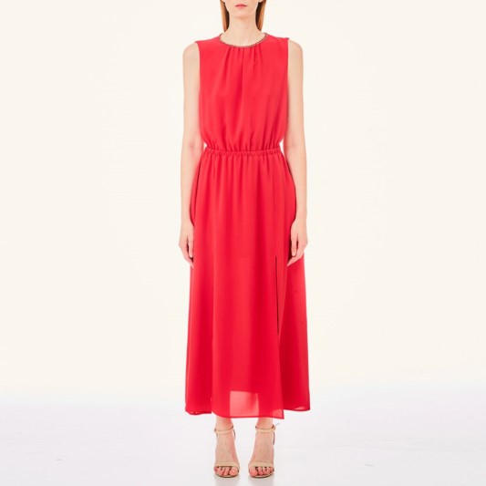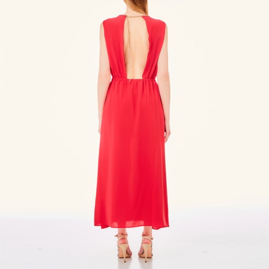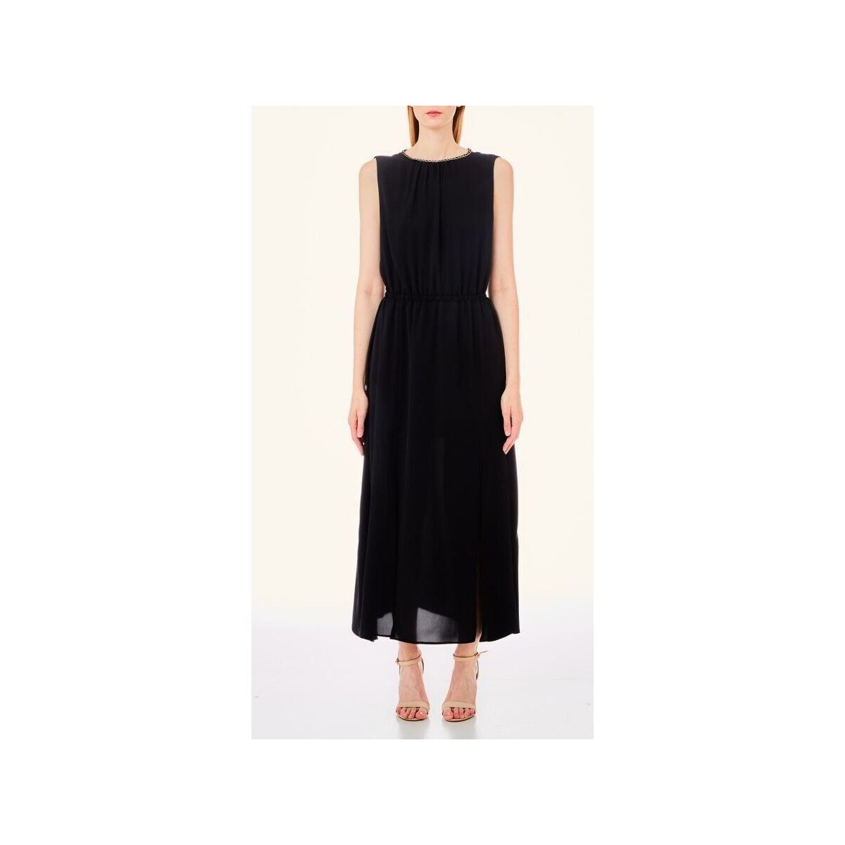 VESTITO LIU JO, LUNGO, GIROMANICA E SCOLLO ROTONDO CON CATENA DORATA, SPACCHI SUL DAVANTI, ELASTICO IN VITA E FODERA ALL'INTERNO