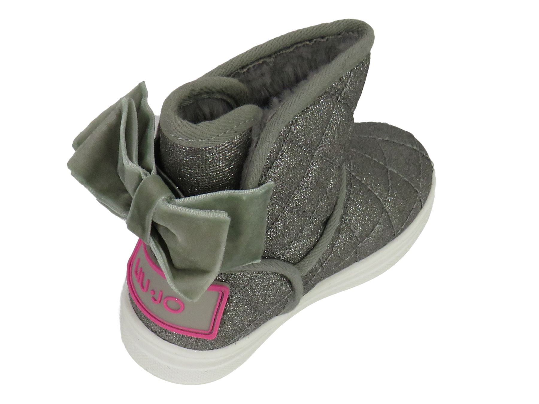 STIVALETTO GLITTERATO CON FIOCCO IN VELLUTO DIETRO -PELLICCIA DENTRO E LOGO DIETRO