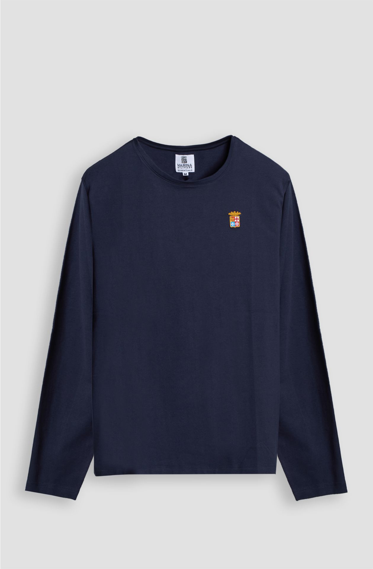T-SHIRT MARINA MILITARE, BASIC, GIROCOLLO IN COTONE STRETCH, MANICA LUNGA, BORDI ORLATI E COLLO RIFINITO IN COSTINA.