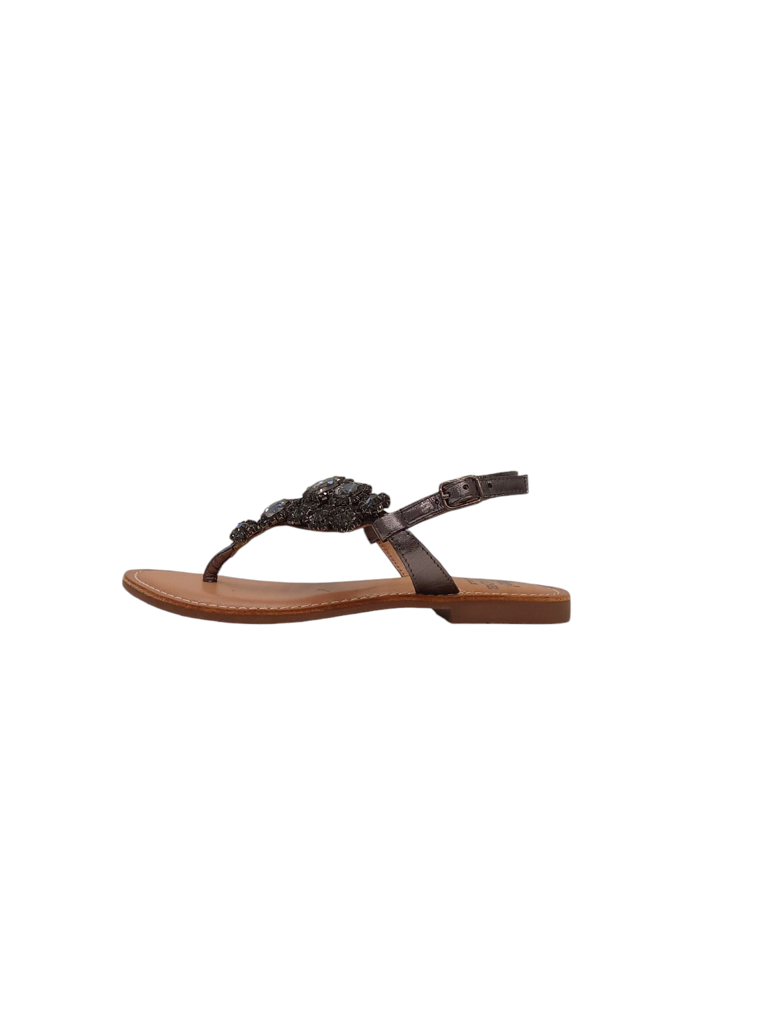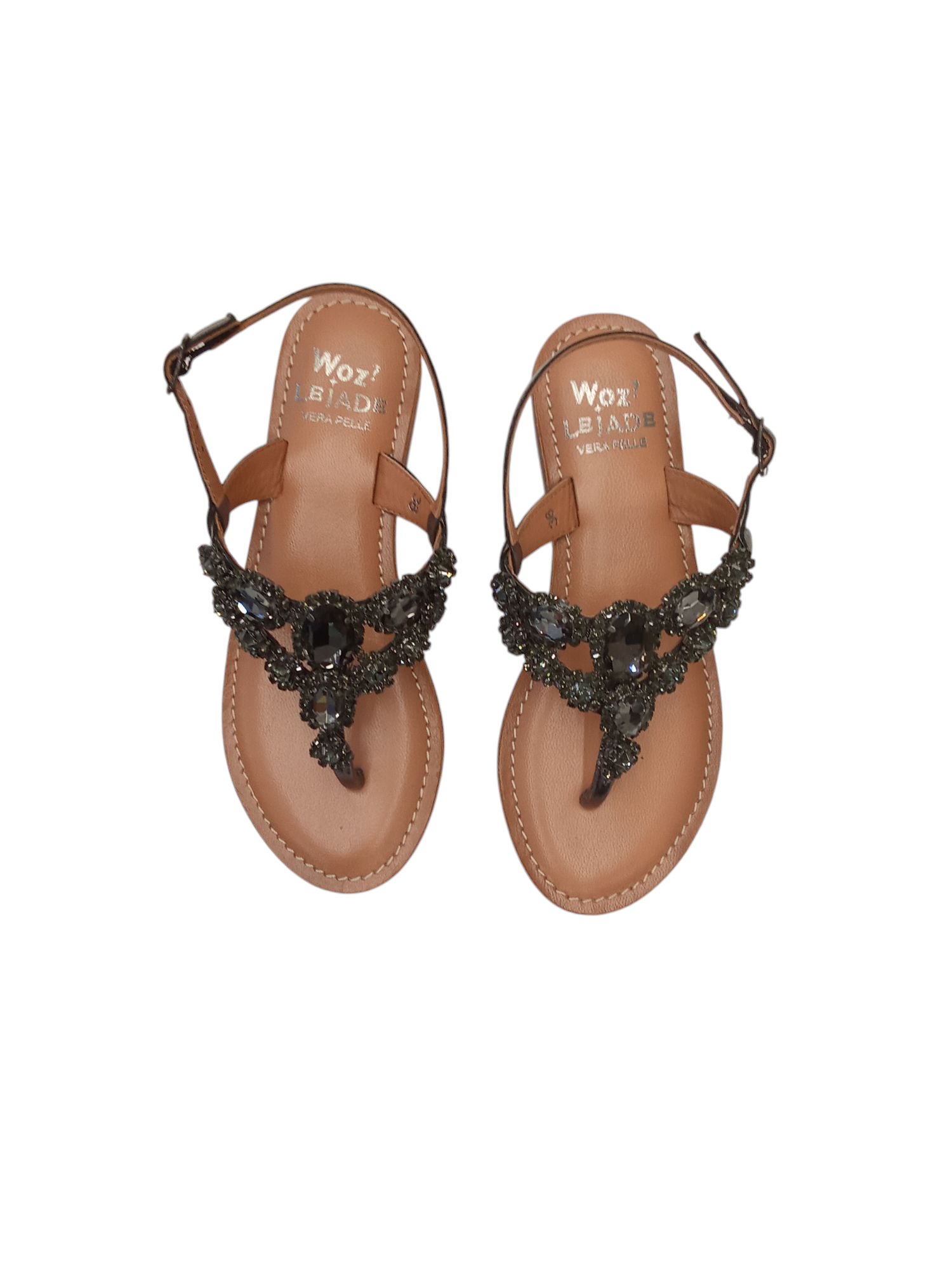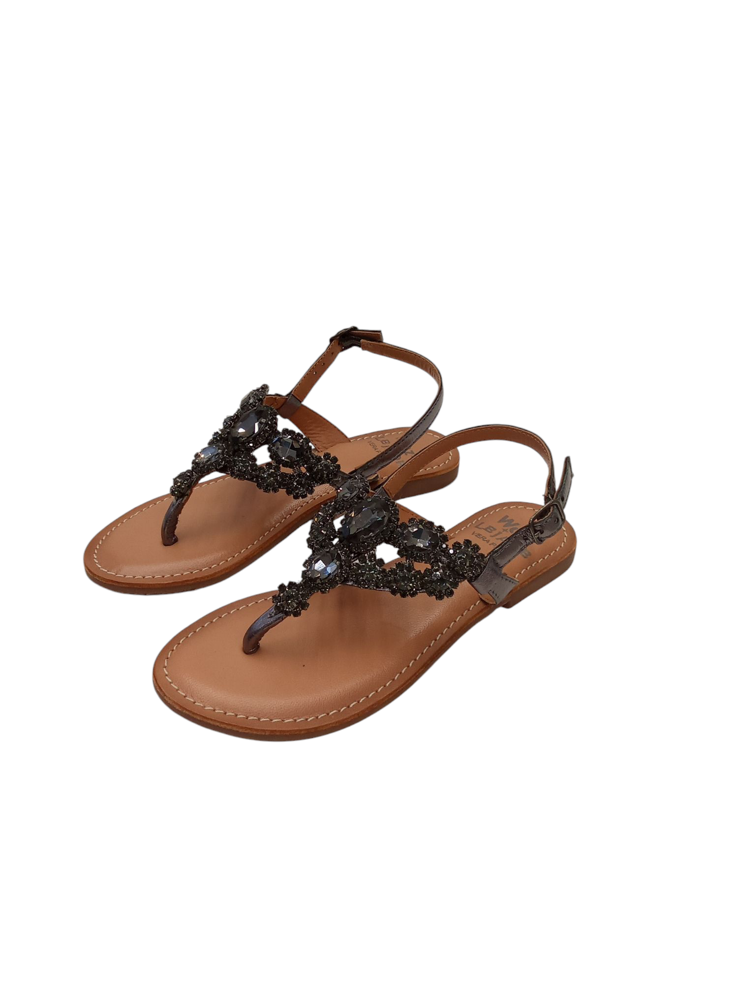 INFRADITO BASSO CON STRASS REALIZZATO IN PELLE, CINTURINO ALLA CAVIGLIA REGOLABILE CON ELASTICO E CIUSURA A FIBBIA SOTTO PIEDE IMBOTTITO IN PELLE, SUOLA IN GOMMA ANTISCIVOLO, ALTEZZA TACCO 15 MM